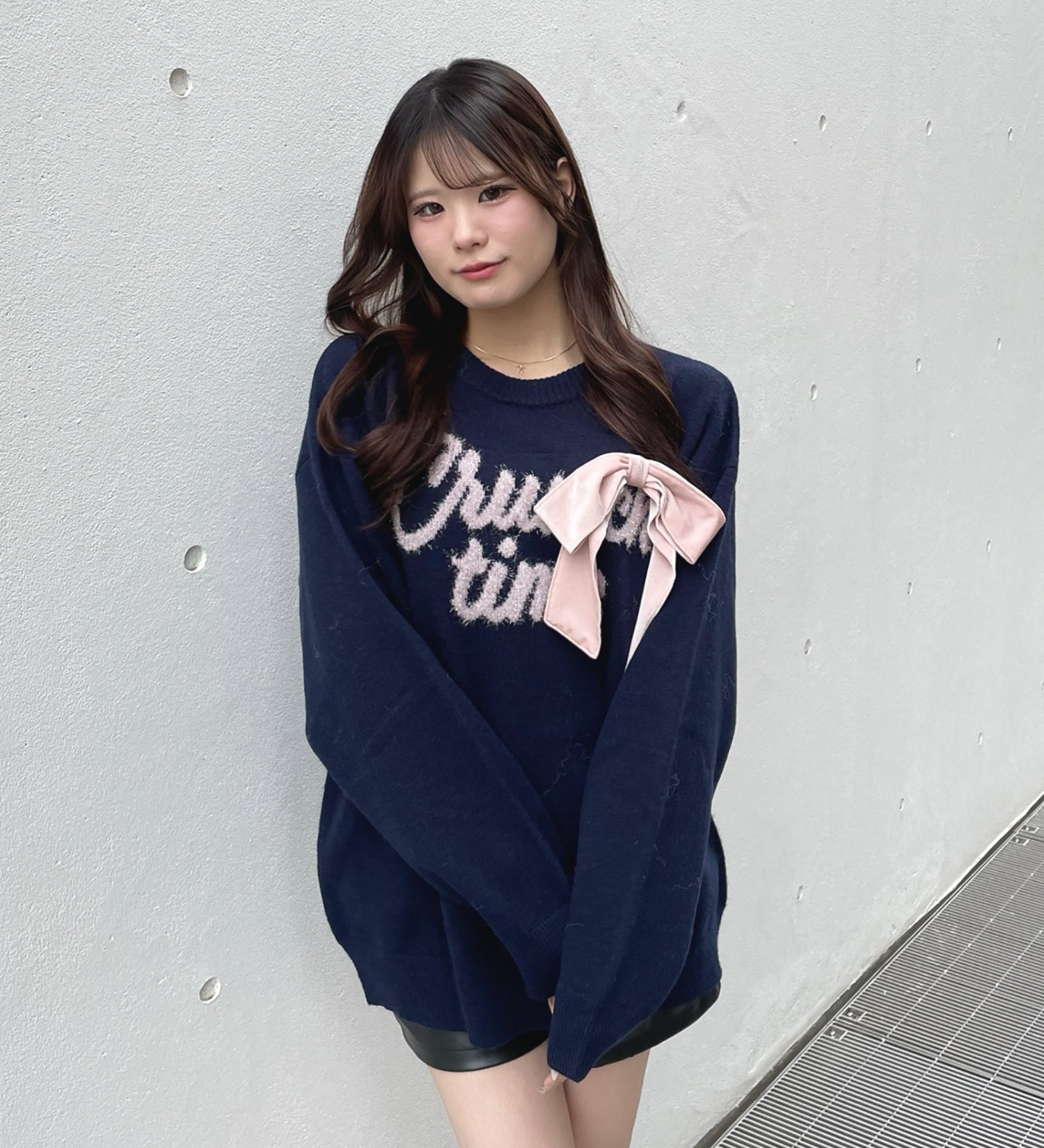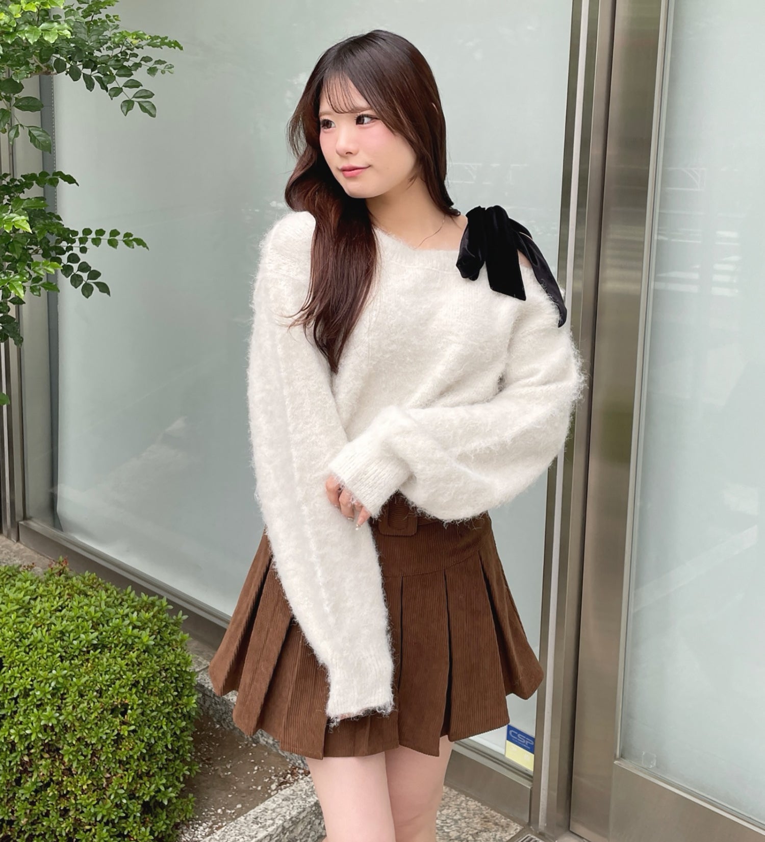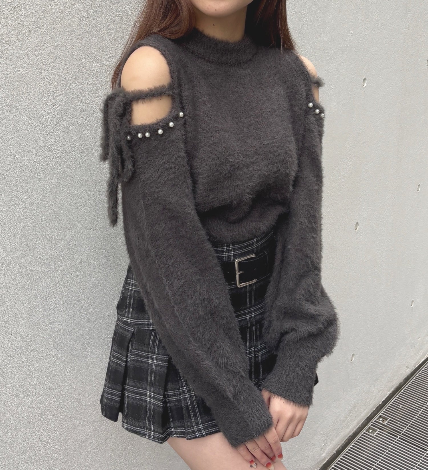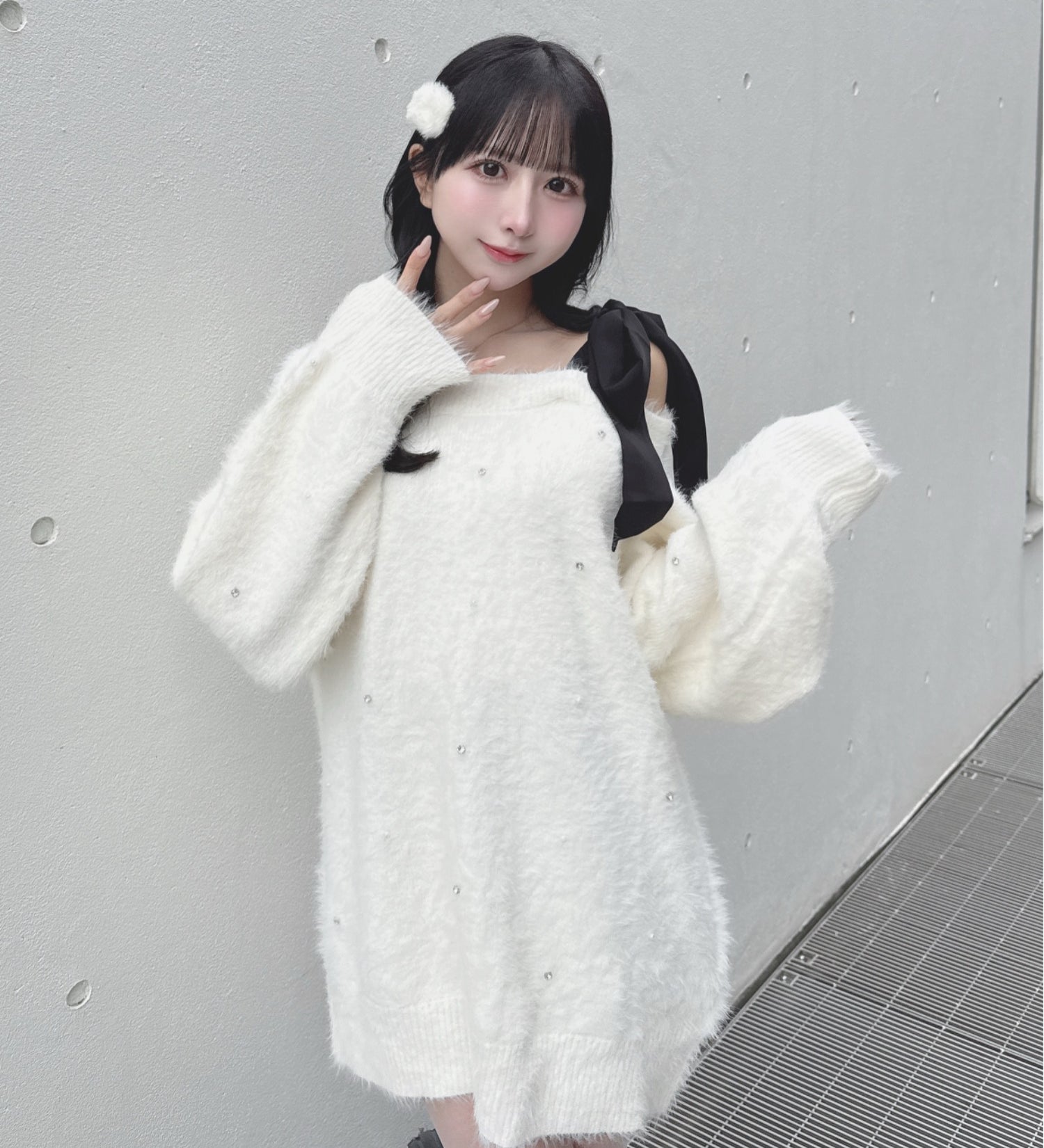 【予約商品 12月下旬発送】ビジュー肩リボンニット