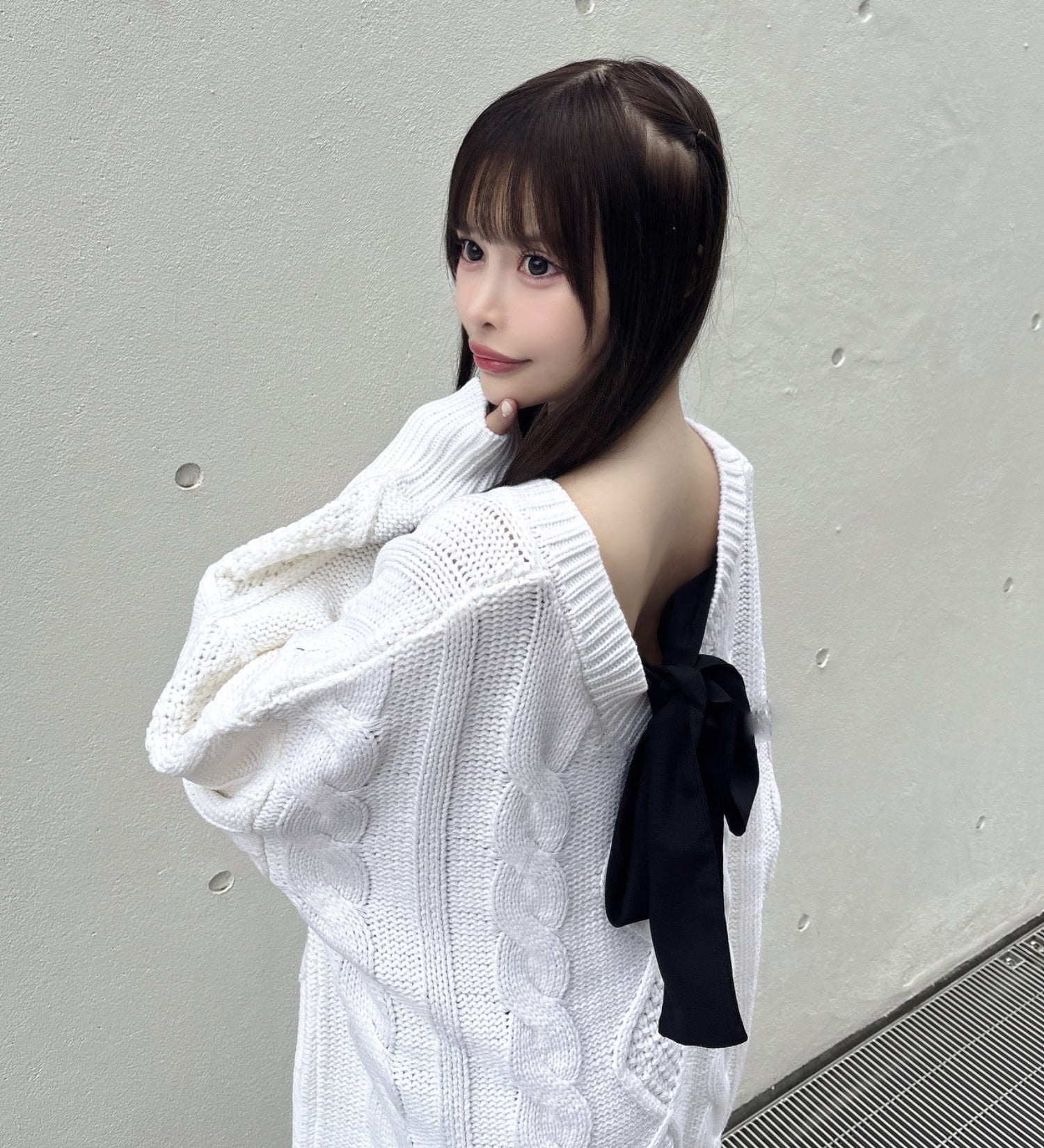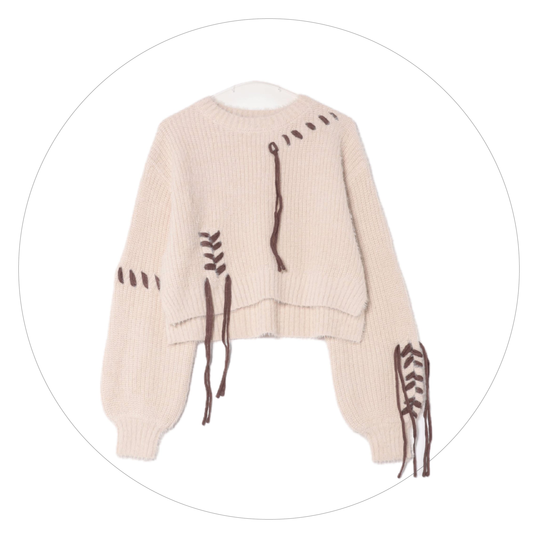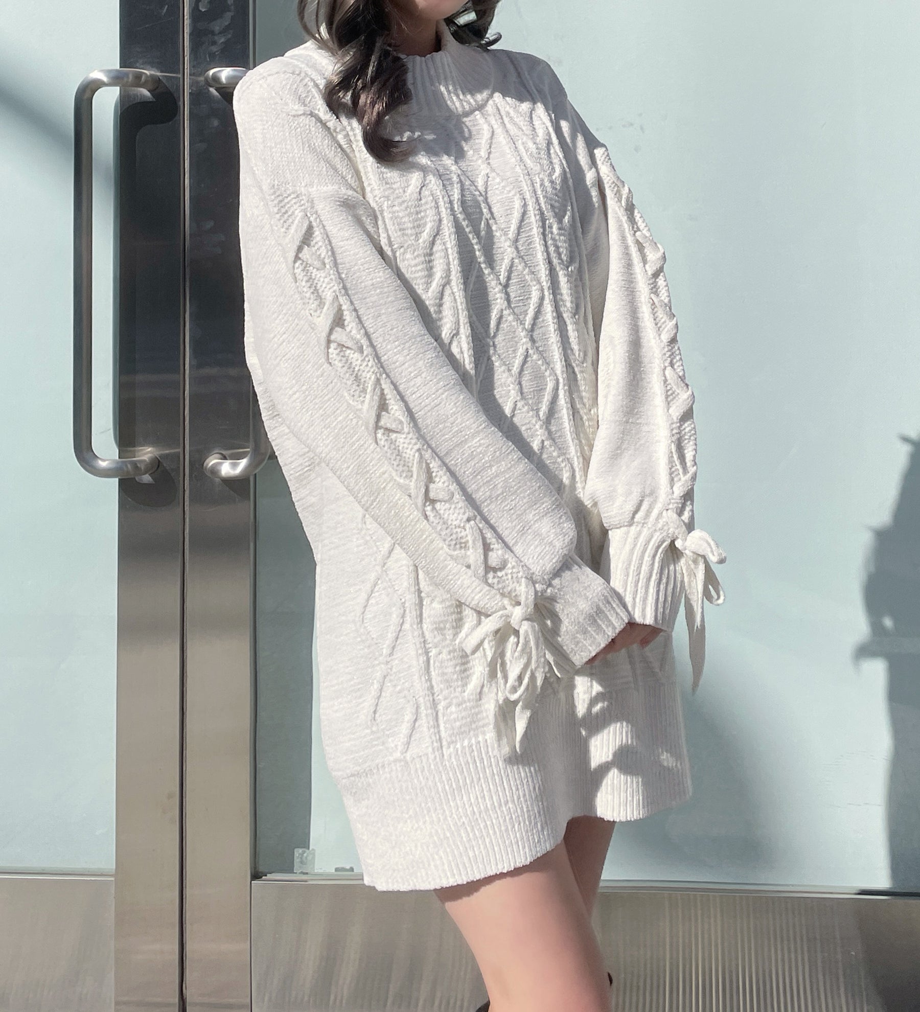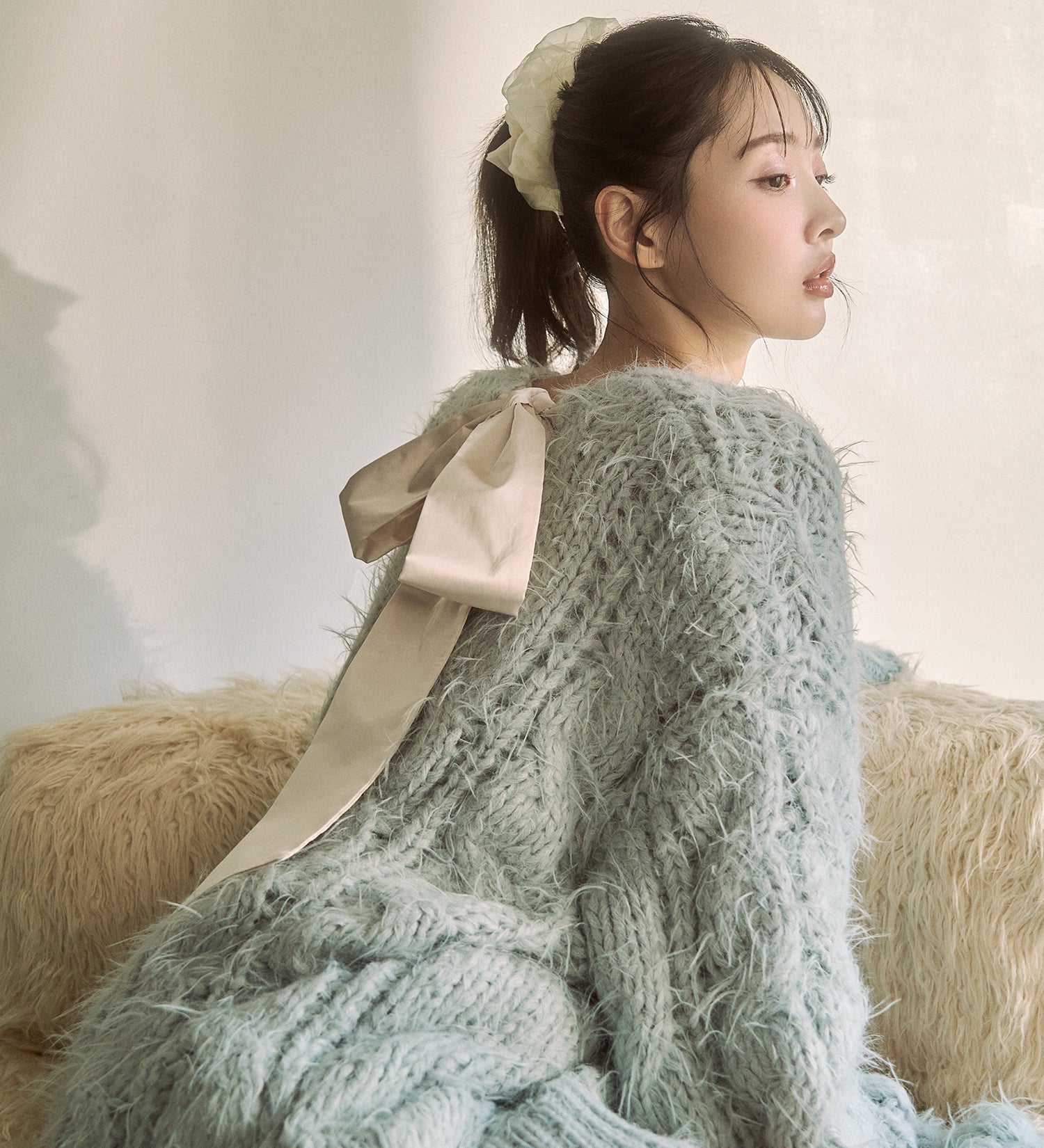 【予約商品 12月下旬発送】ビジュー肩リボンニット