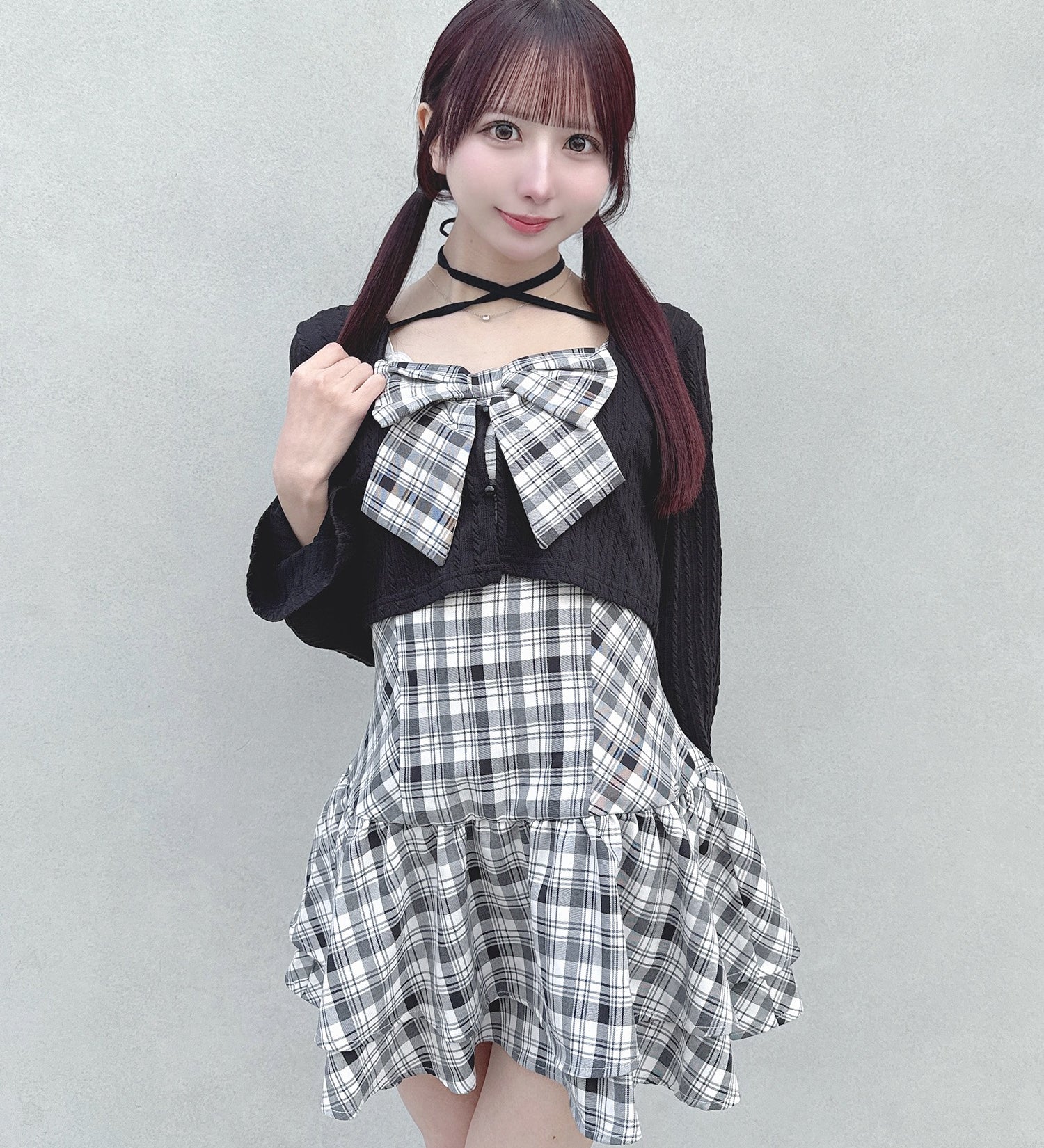 シャギーボレロロングチェックワンピース