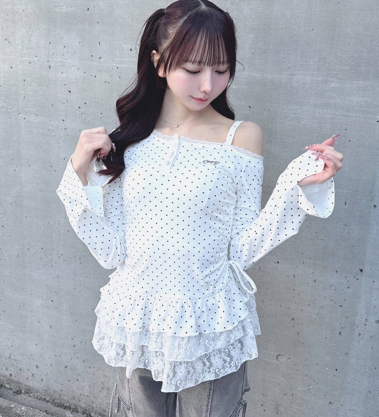 ストーンドットペプラムトップス