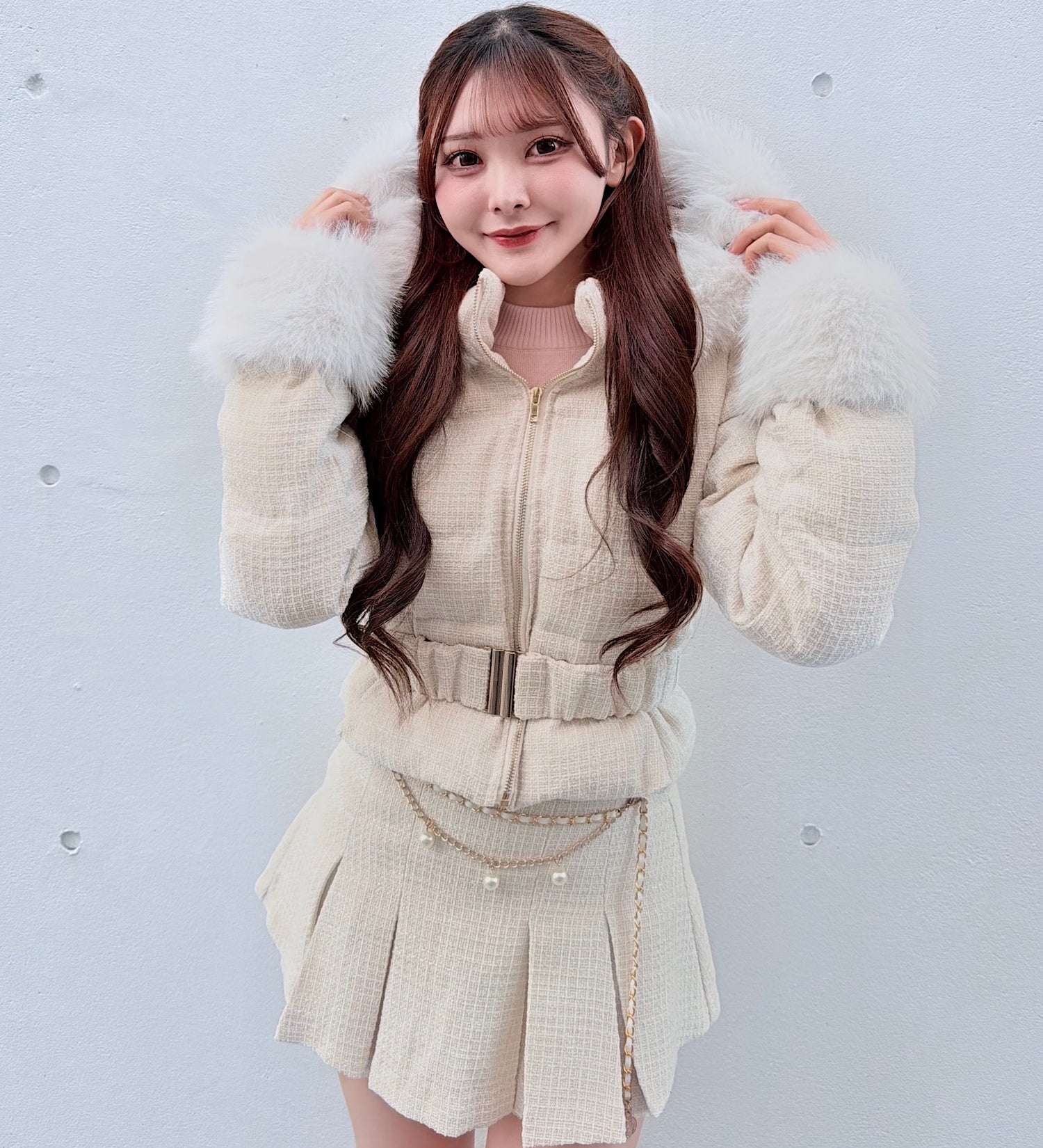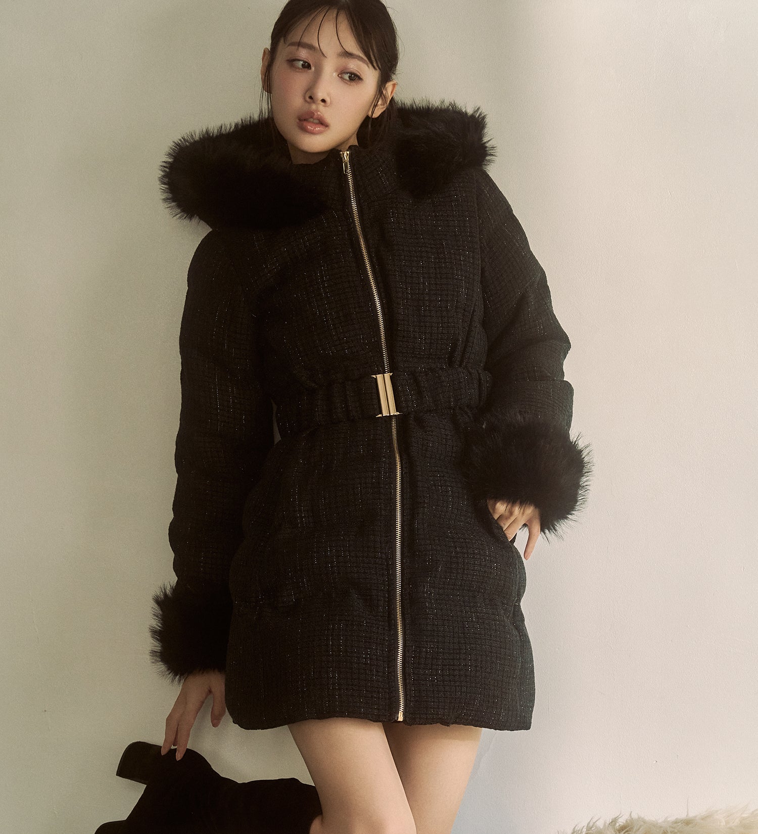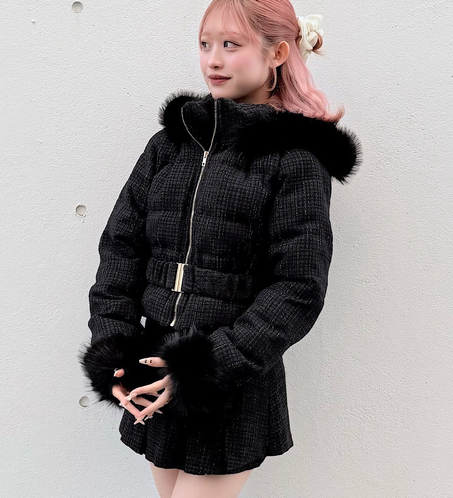 【予約商品12月中旬お届け】ラメツィードショートダウンコート