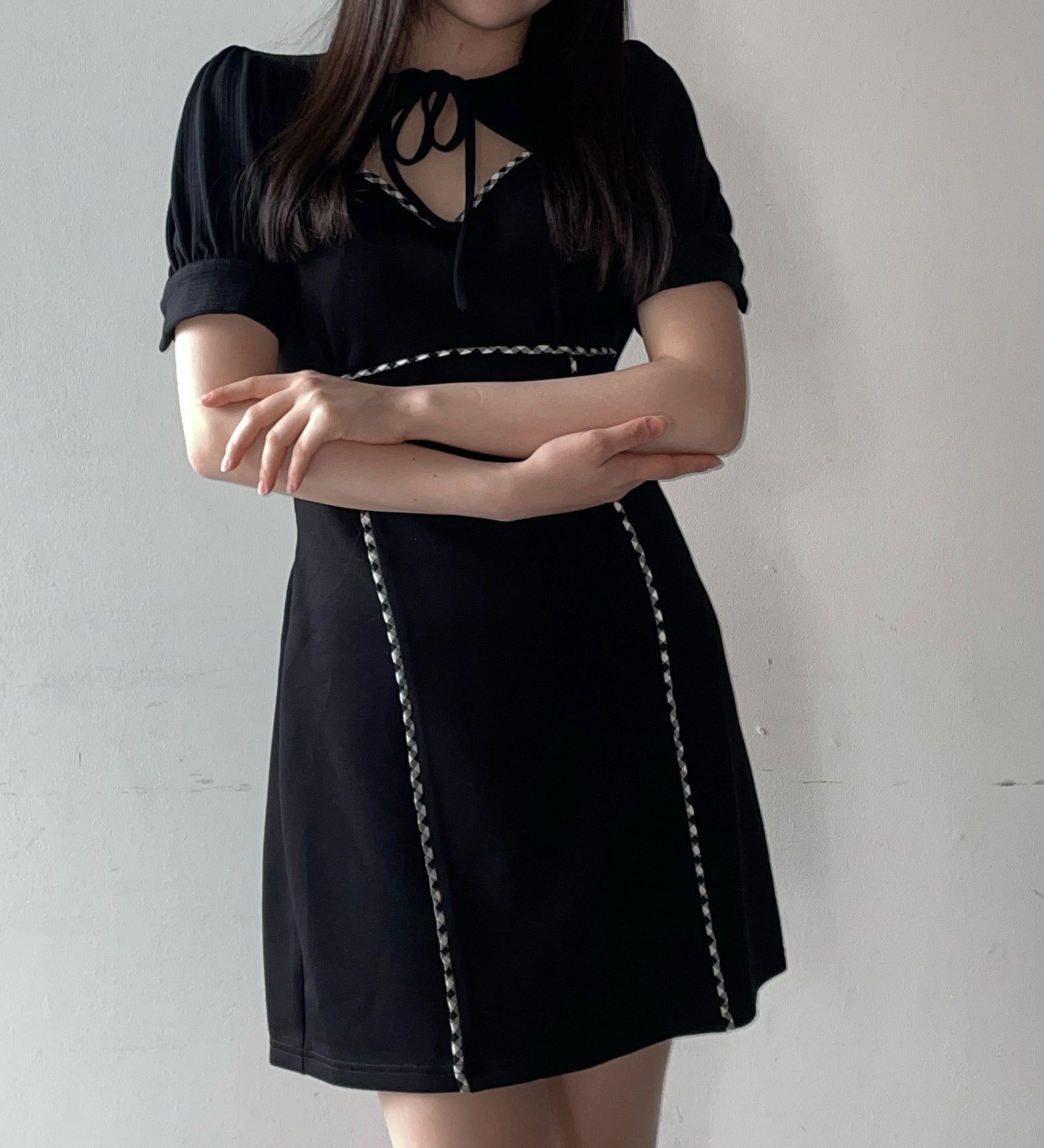 【予約商品 3月下旬発送予定】ボウタイレイヤードワンピース