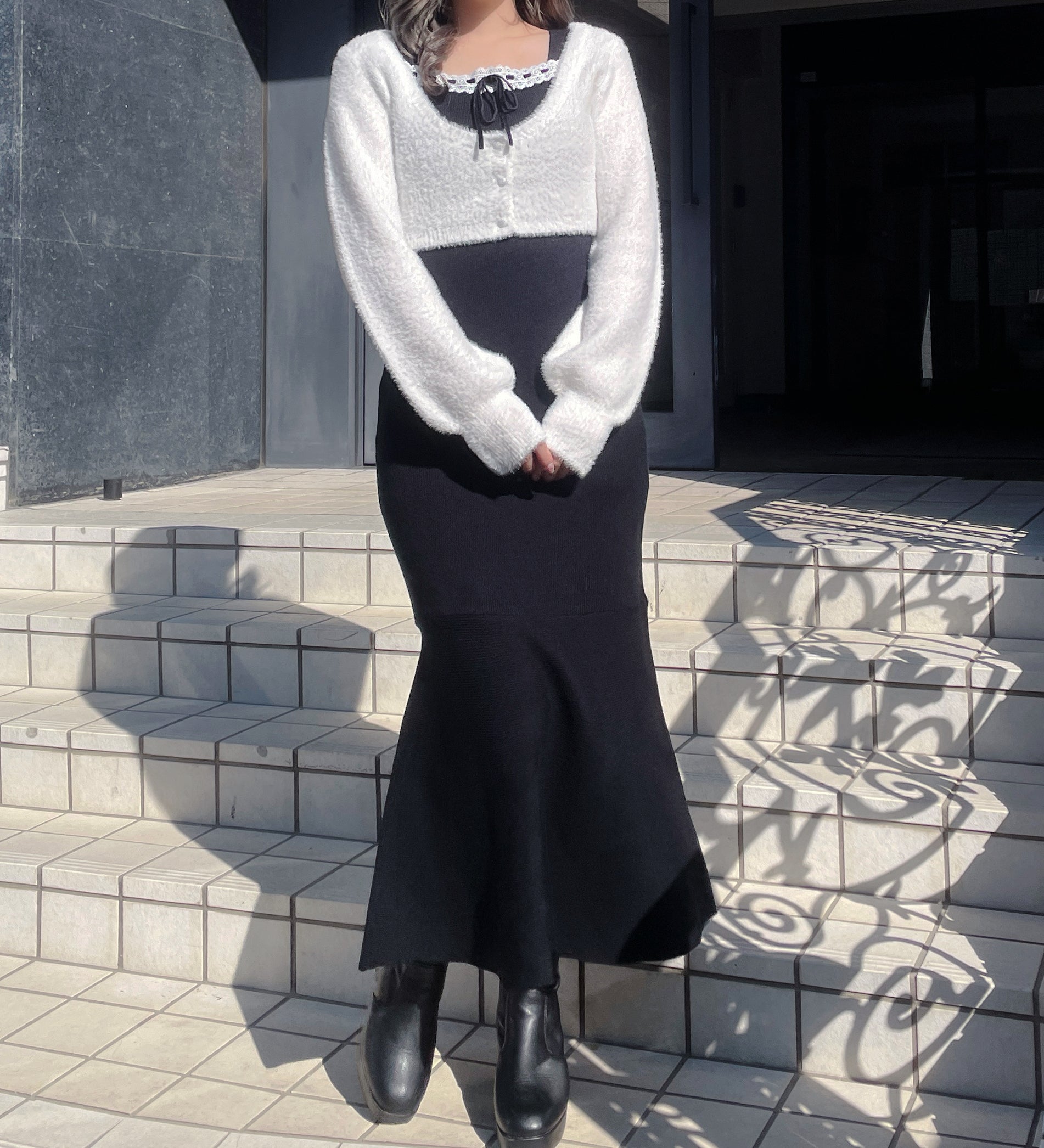 【予約商品 12月上旬お届け】ボレロアンサンブルニットワンピース