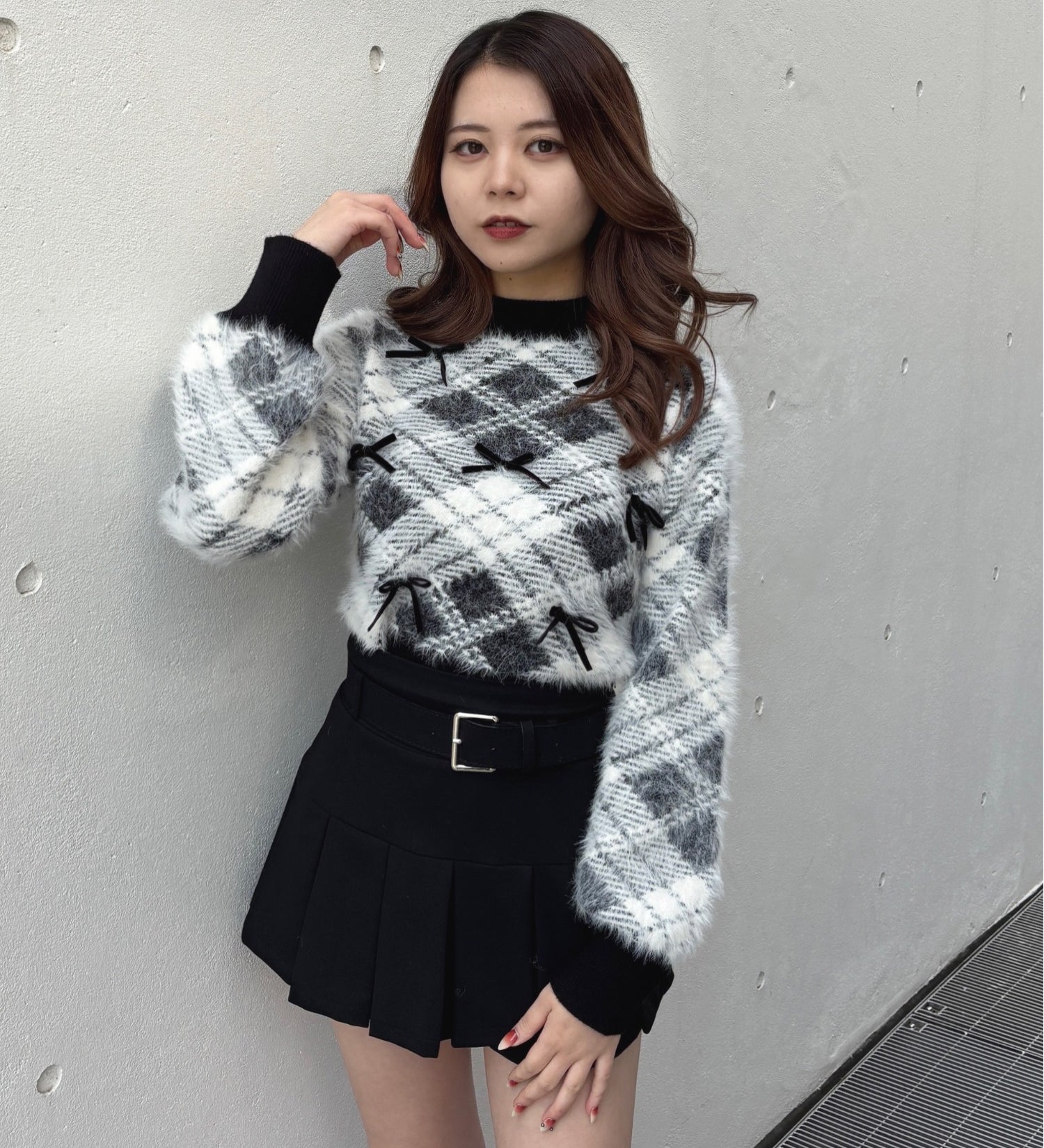 【予約商品 12月下旬発送】ラメリボンロゴジャガードニット