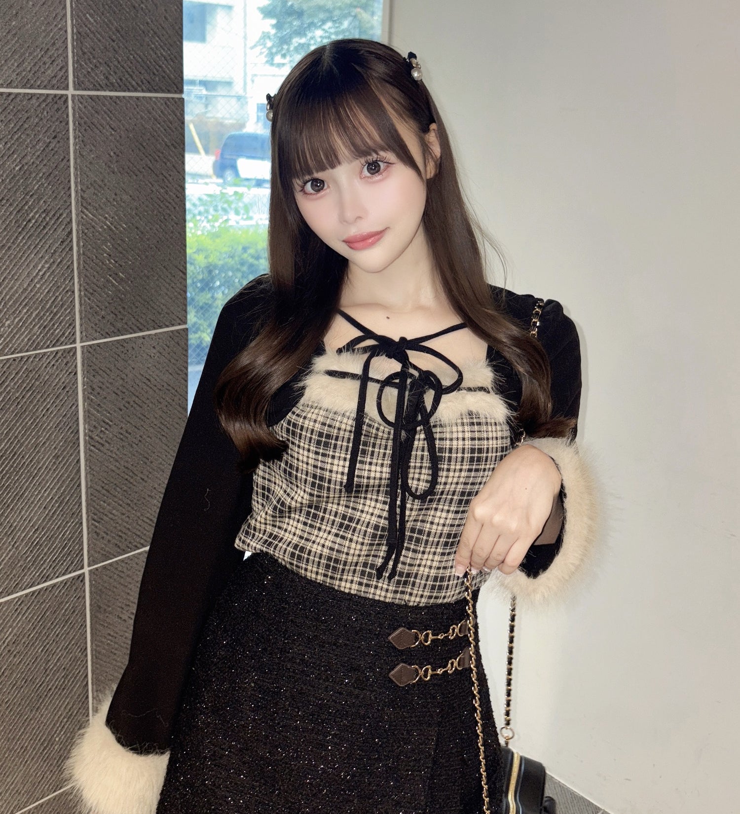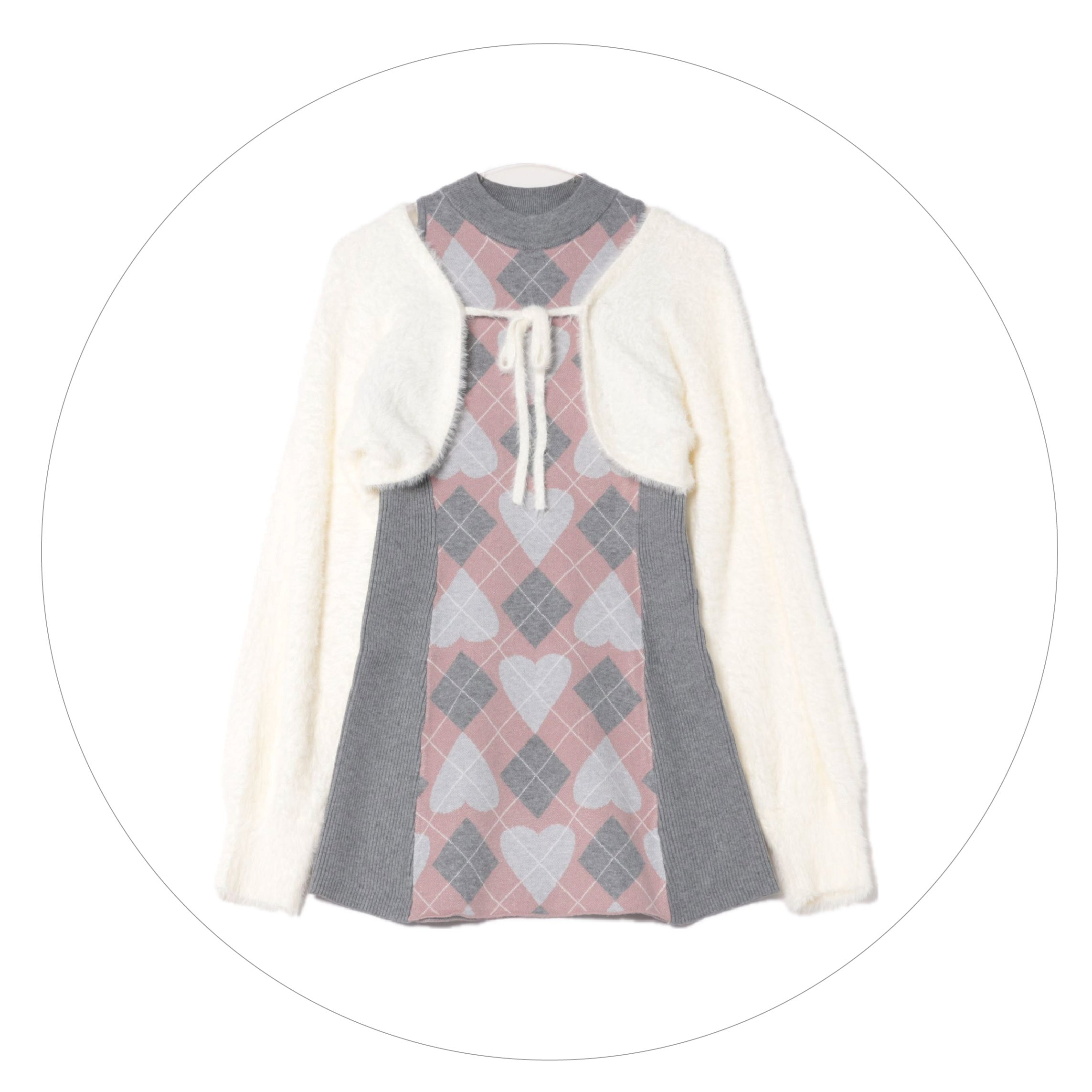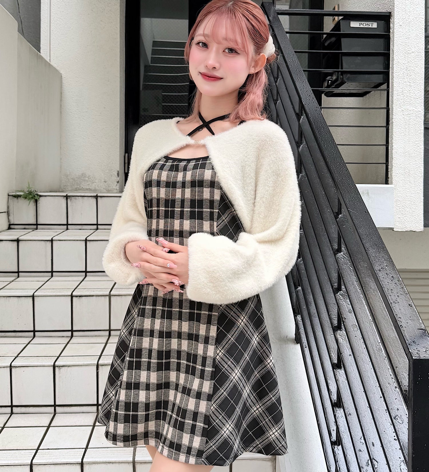 【予約商品 12月上旬発送】シャギーボレロミニチェックワンピース