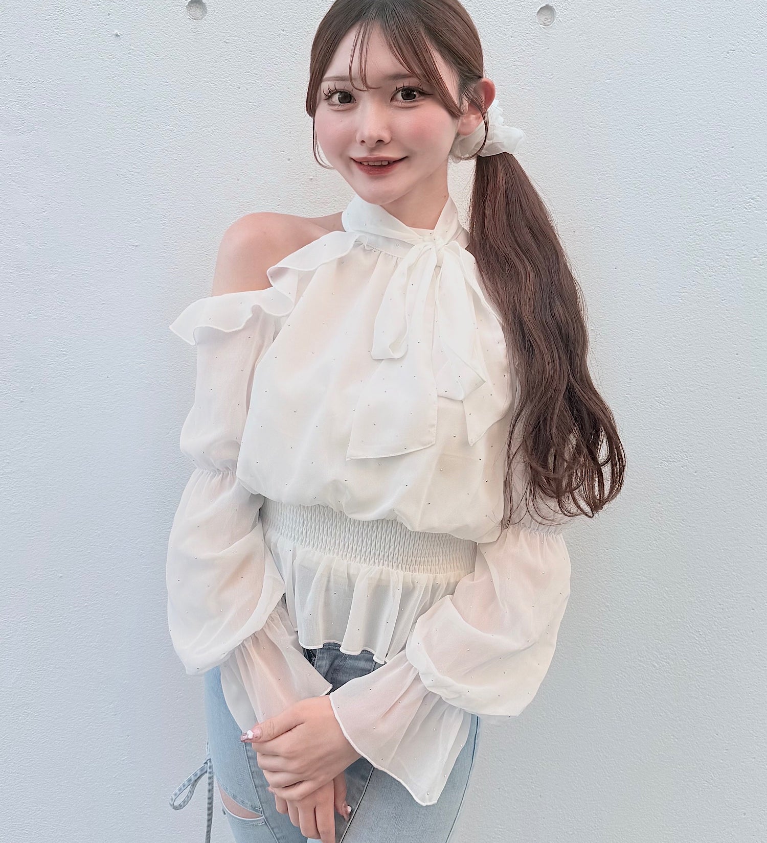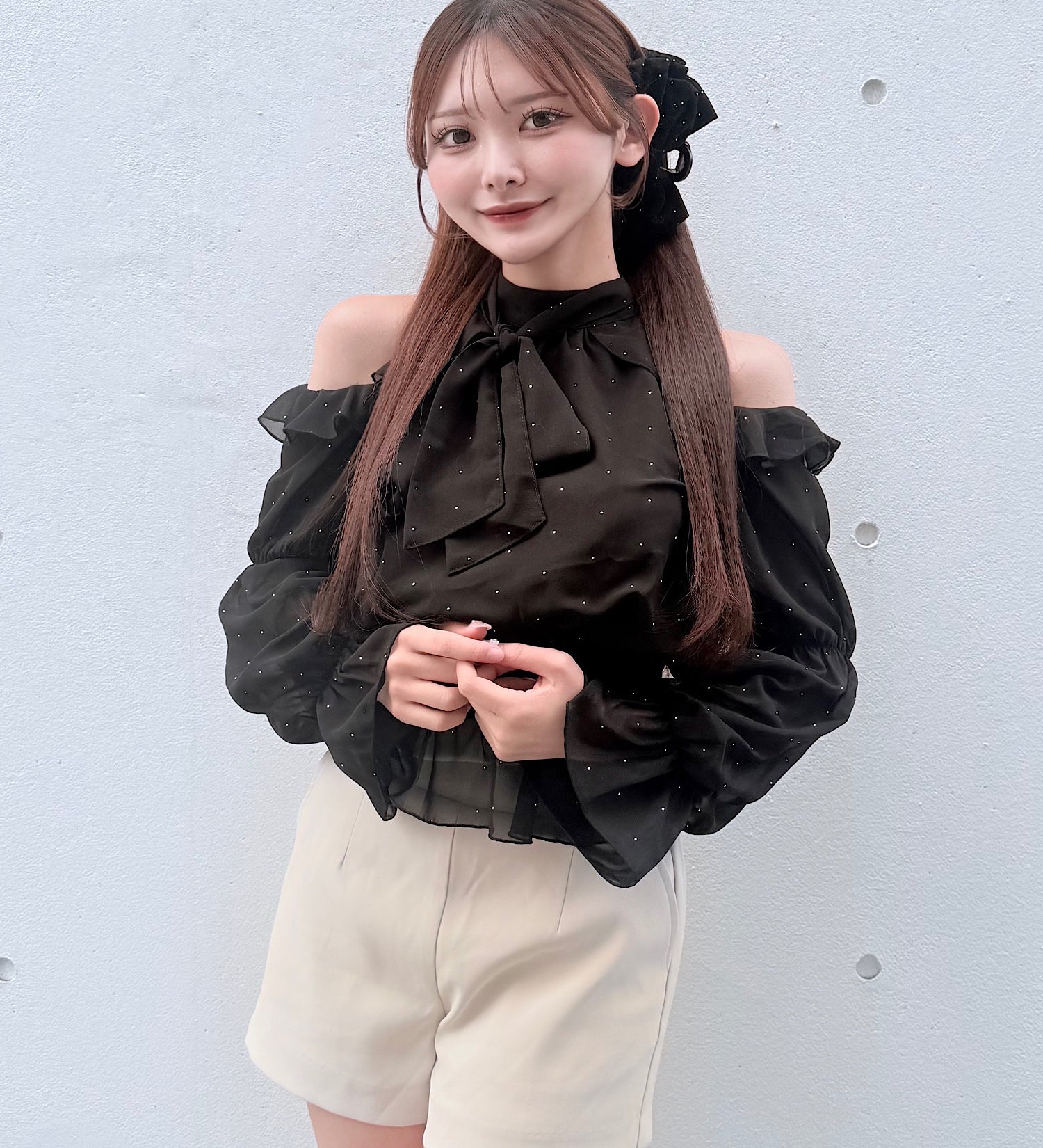 リボンオフショルセットアップ