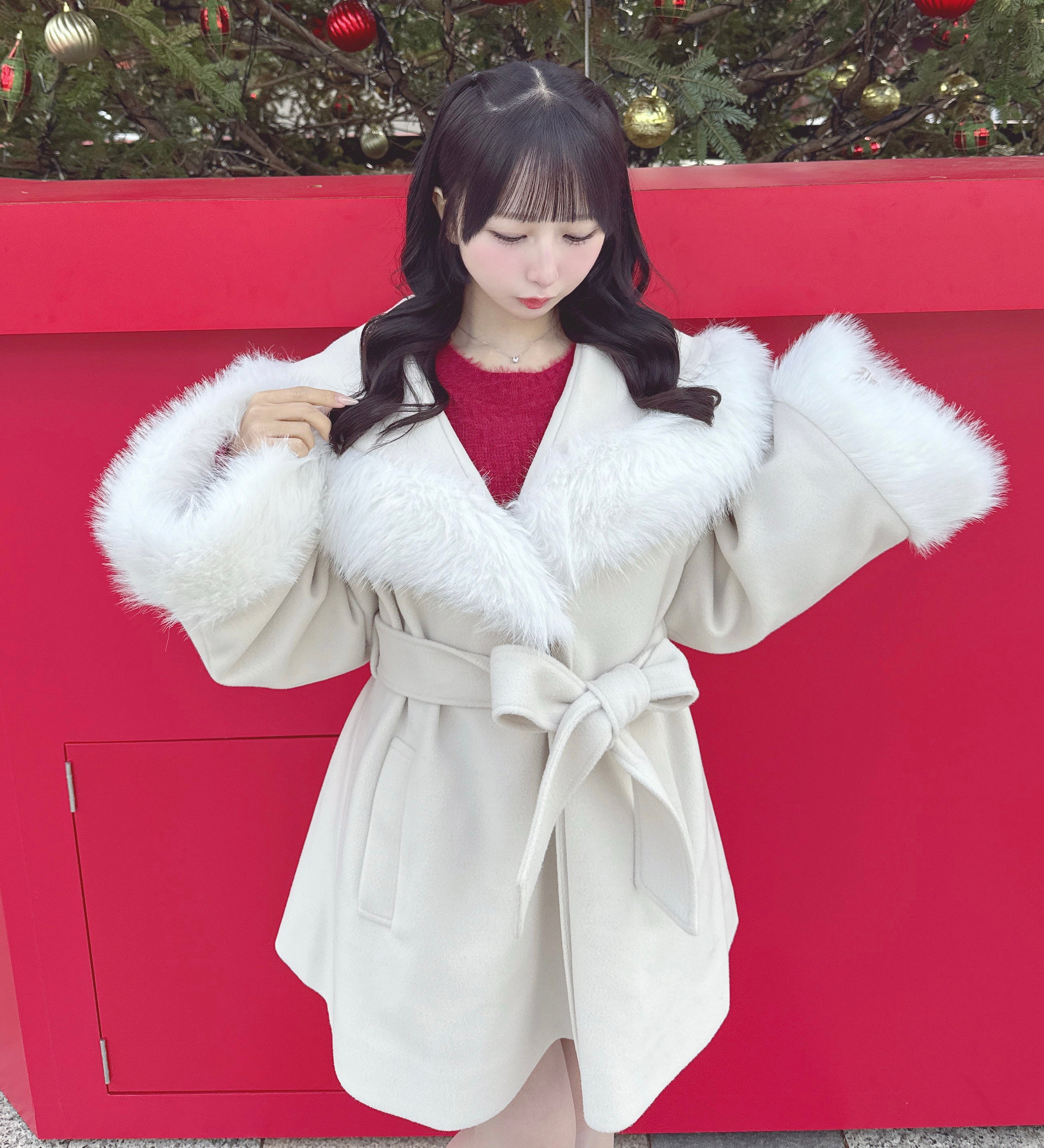 【予約商品 1月上旬発送】ファー付きケープガウンコート