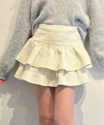ゆるっとしたニットやアウターにティアードのフリル部分をさりげなくチラ見せしても可愛い♡