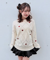 TOPS:ラメ刺繍ハートニット