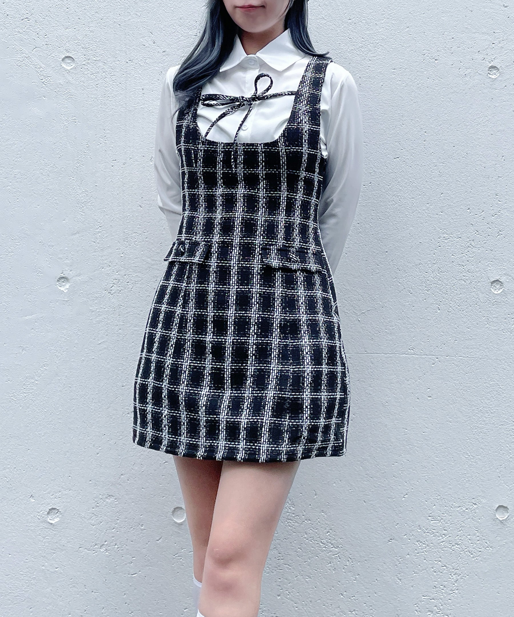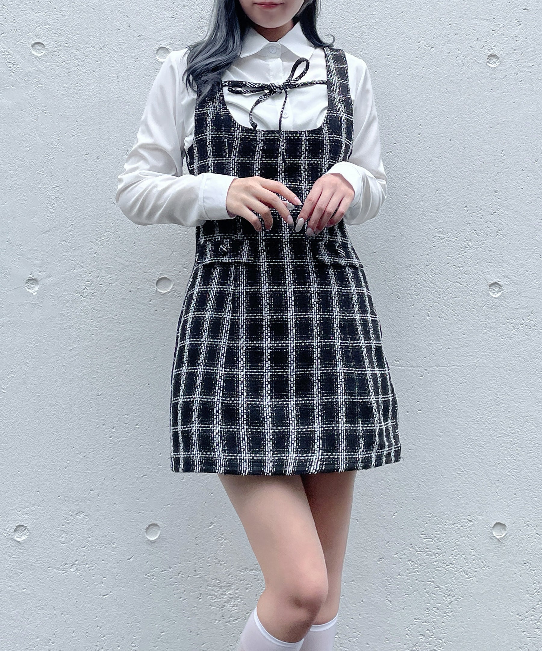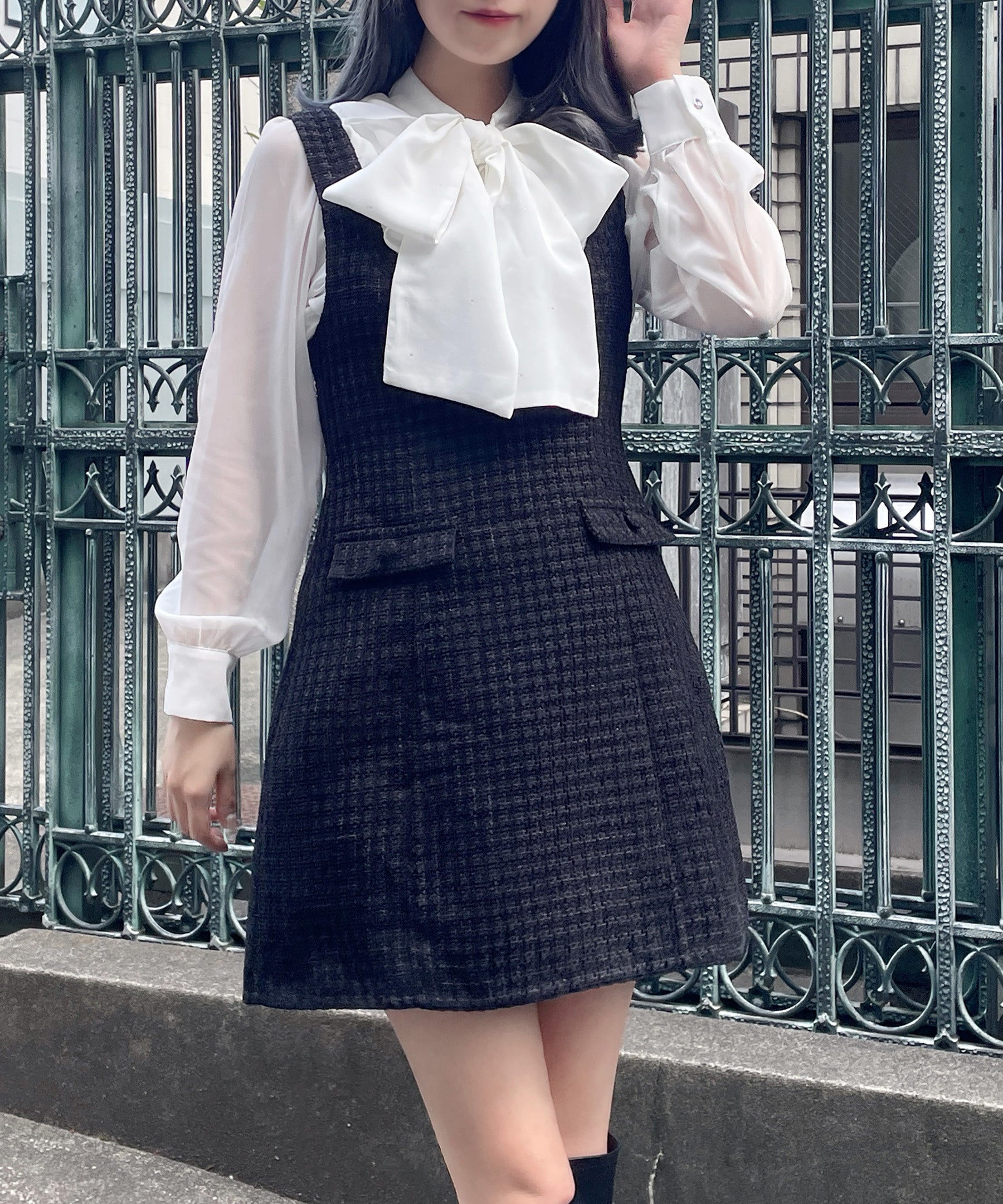 ・胸元のリボンがガーリーな印象のジャンパースカート♡