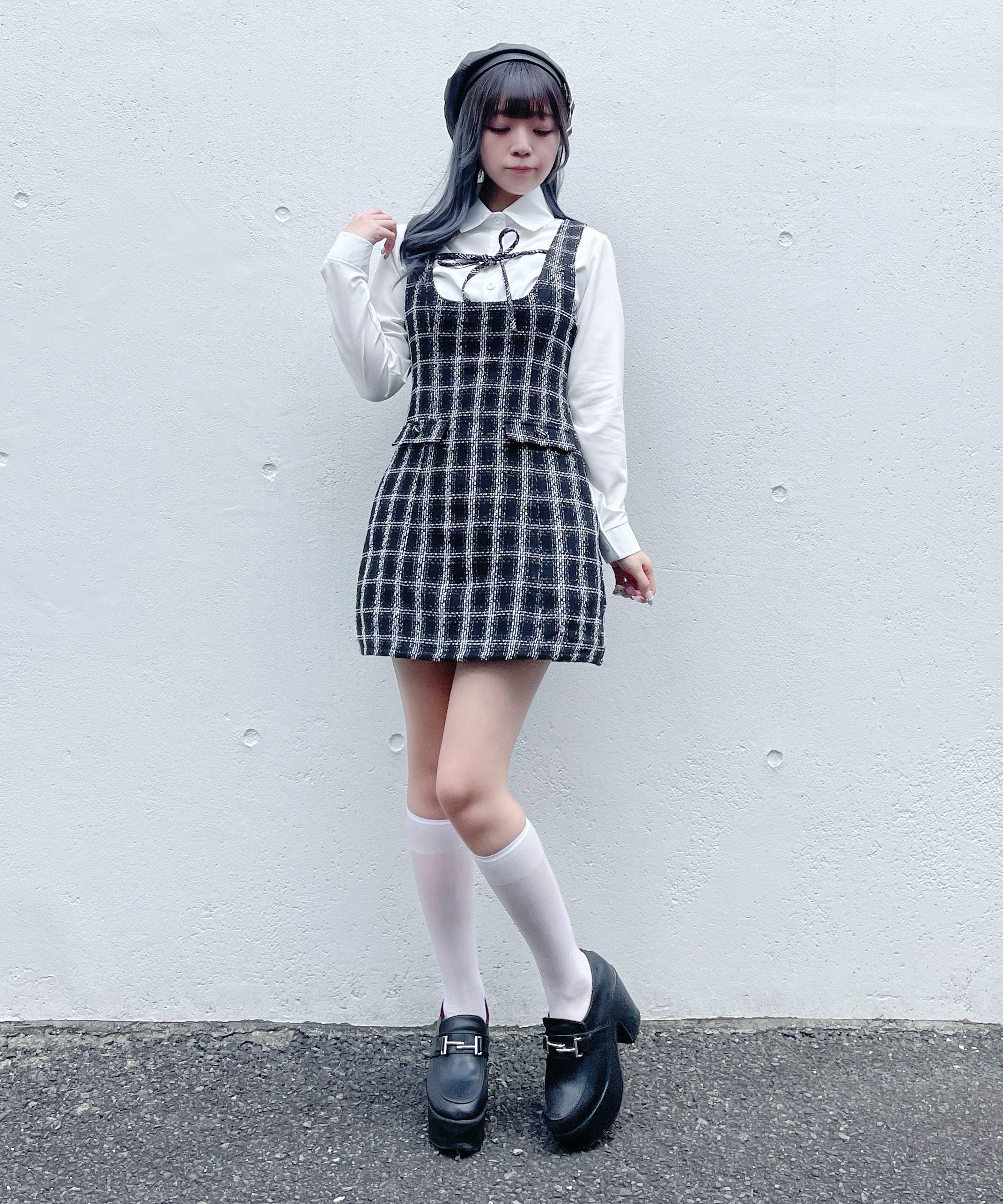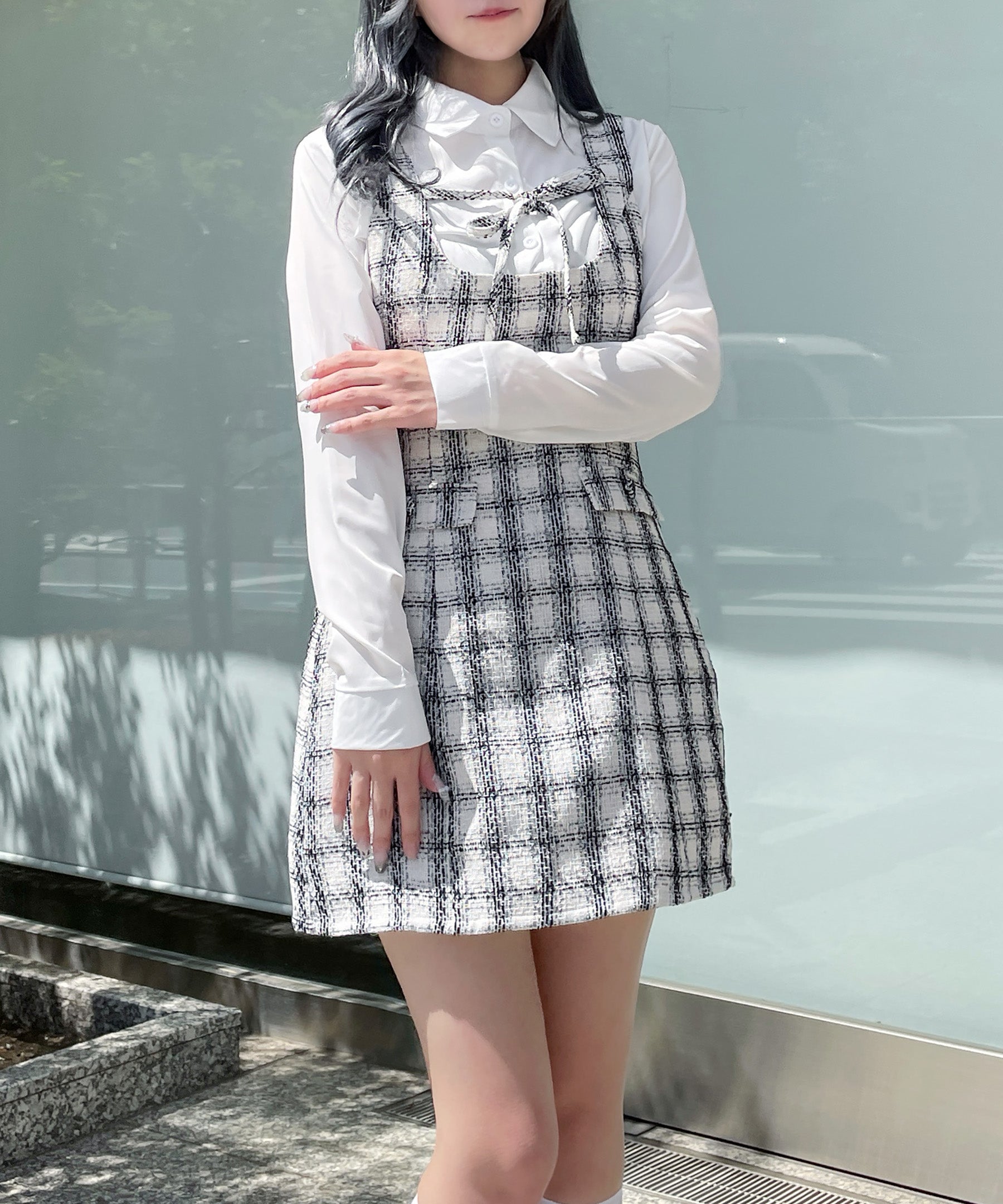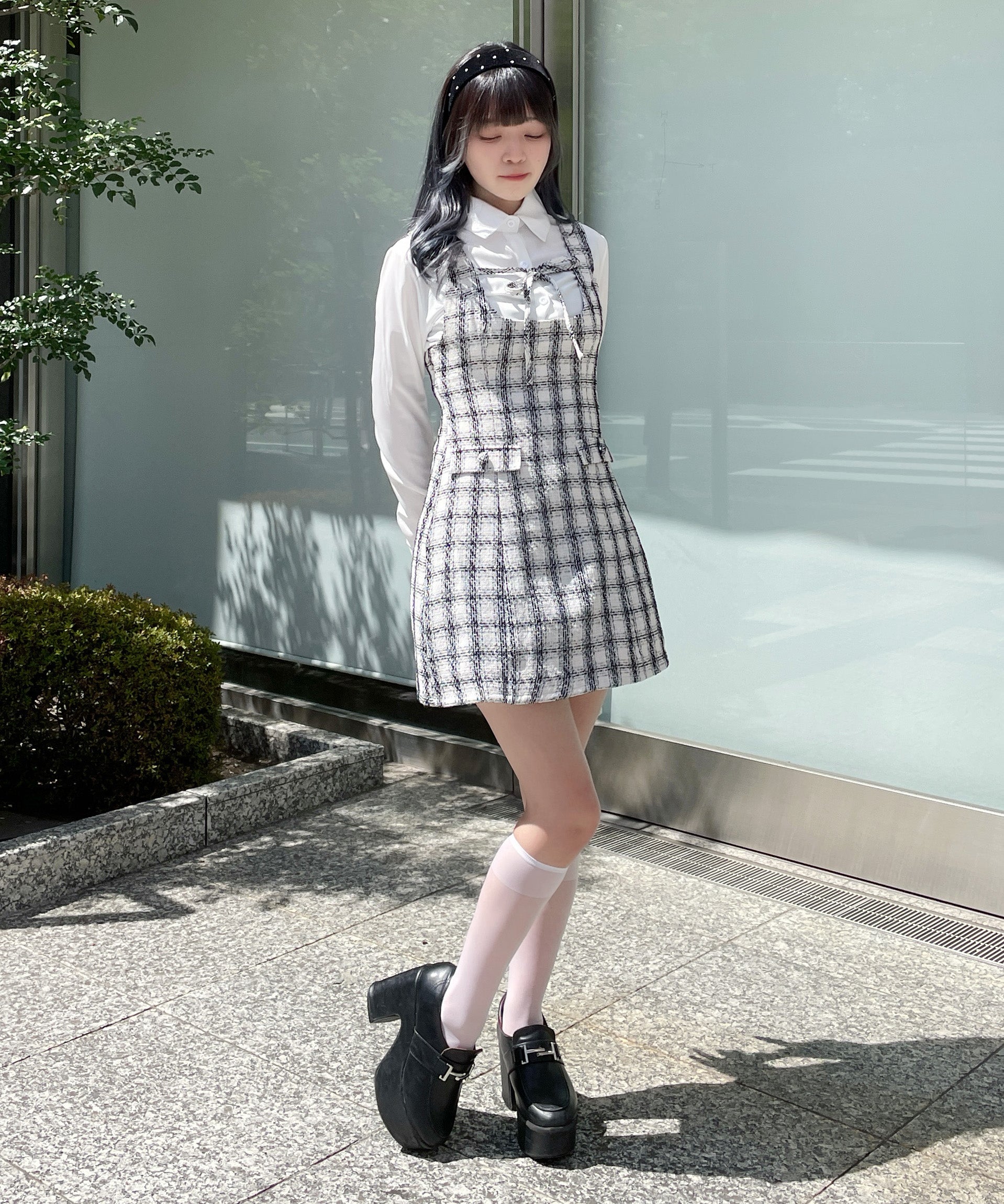 ・胸元のリボンがガーリーな印象のジャンパースカート♡