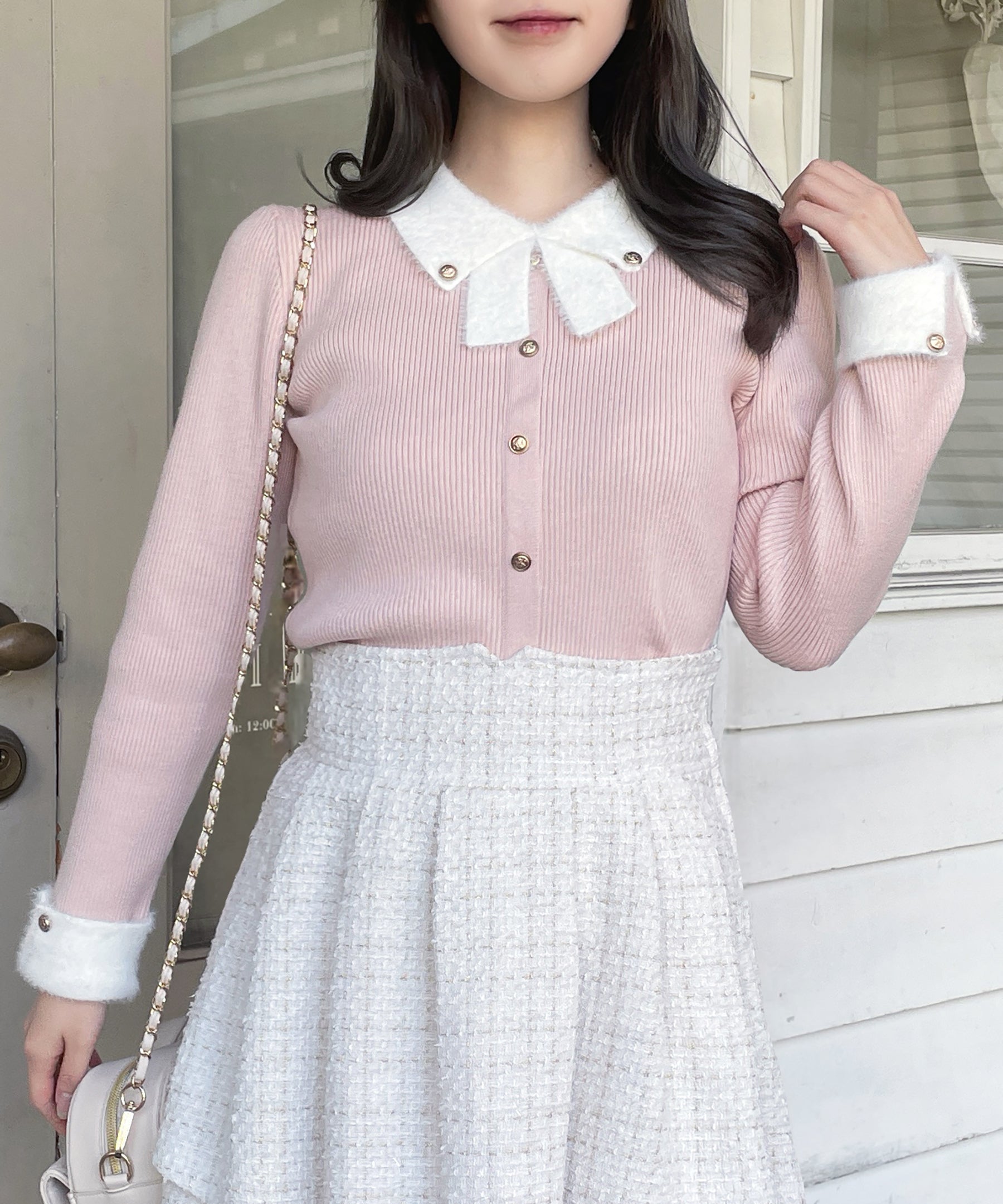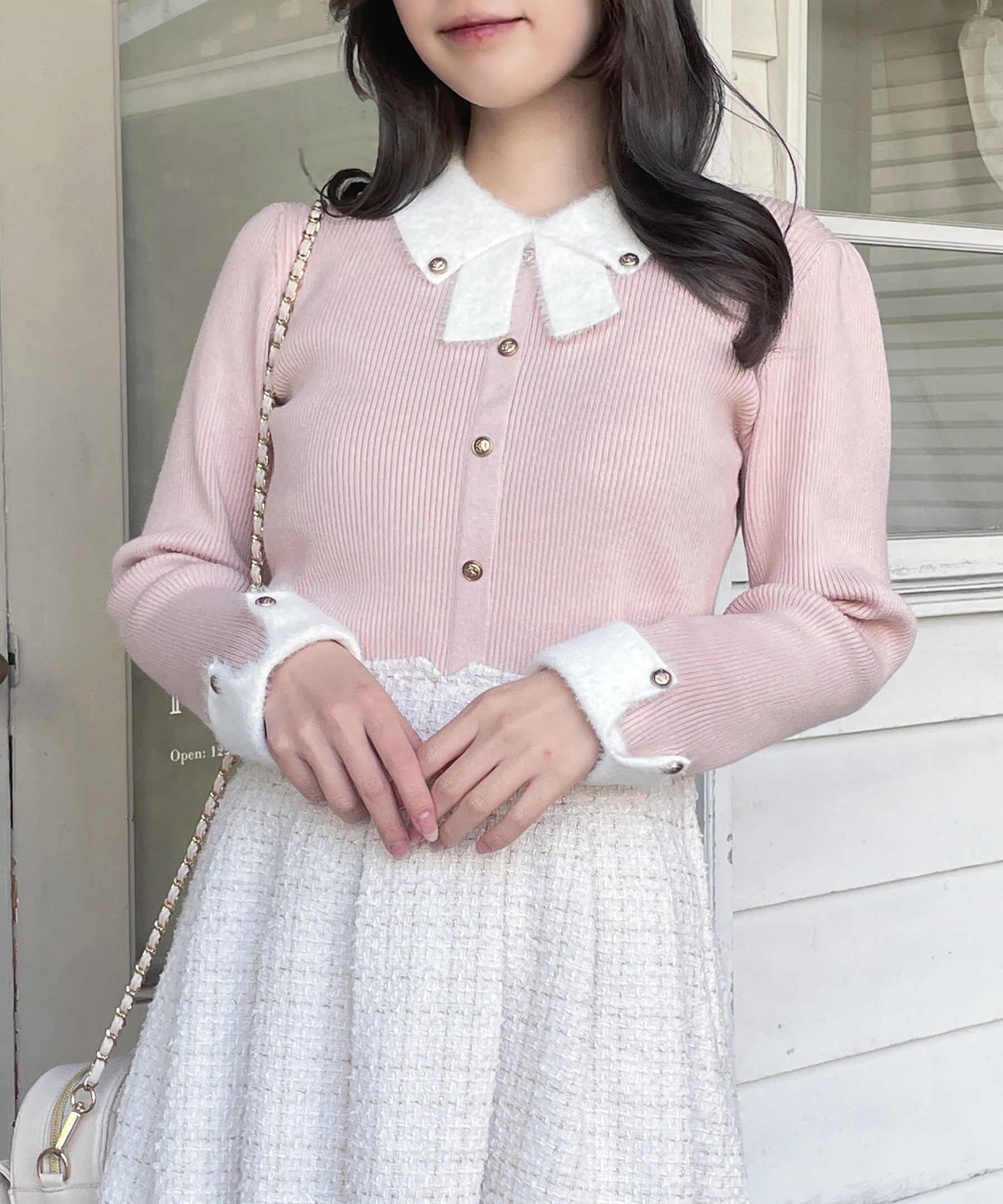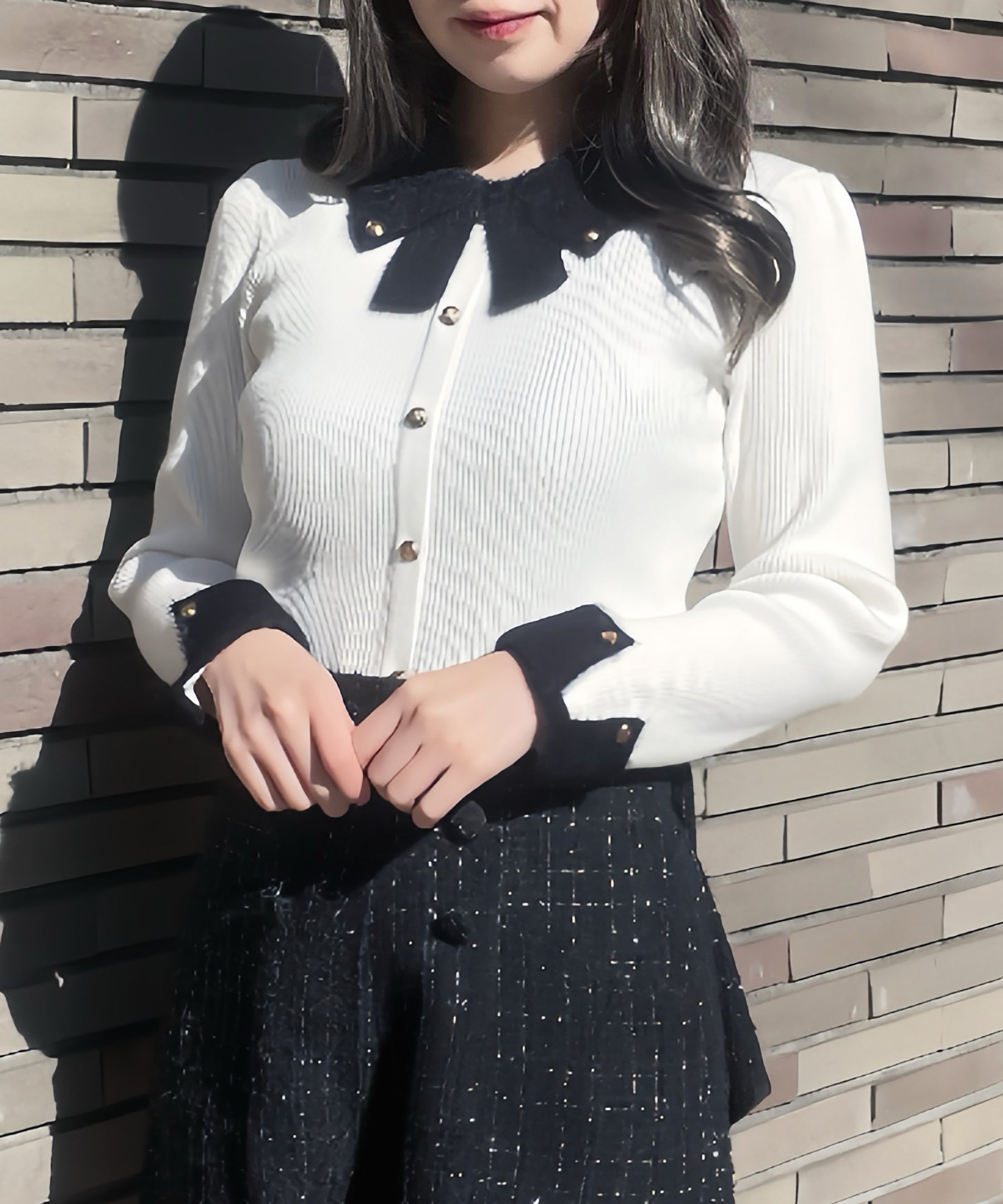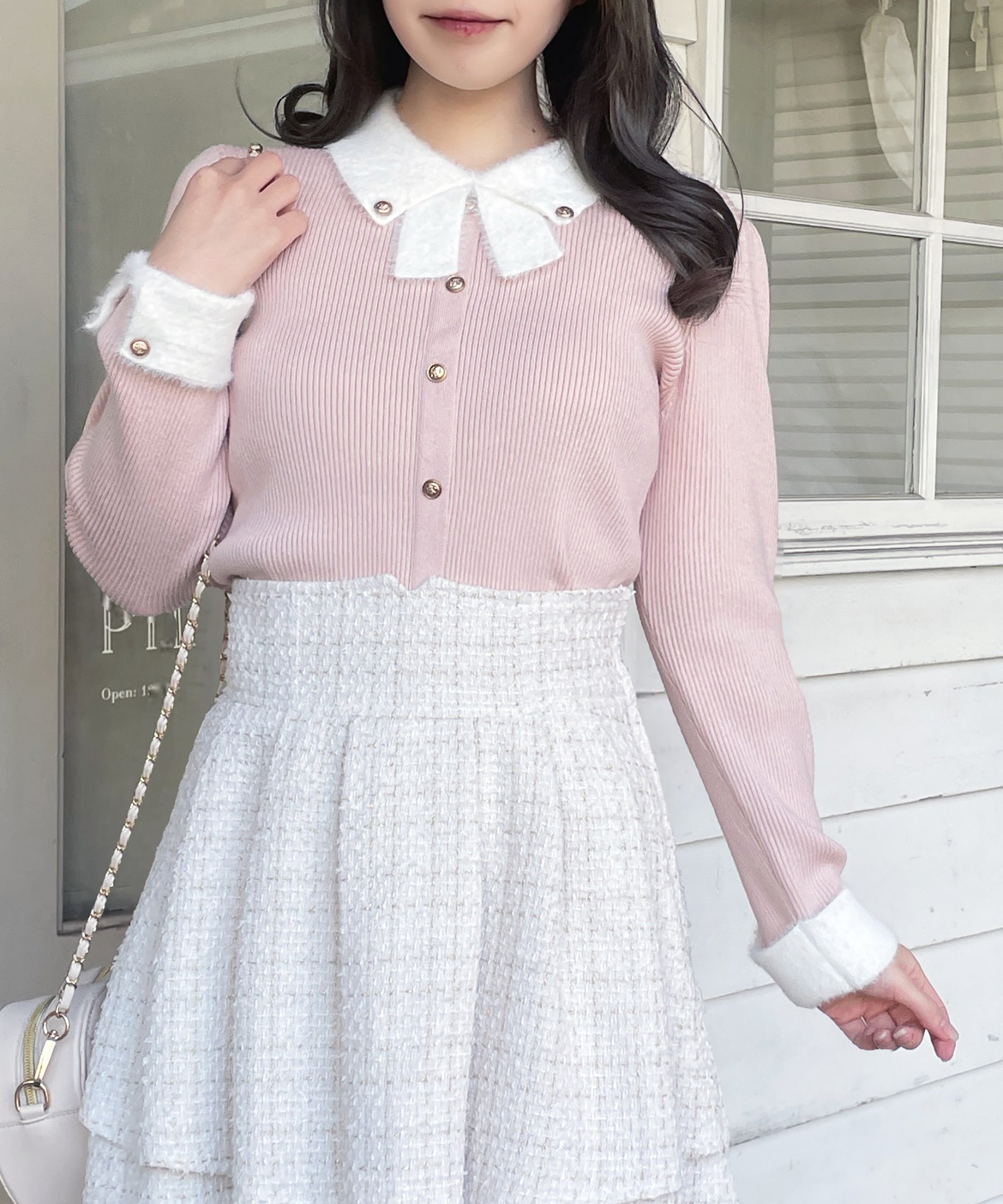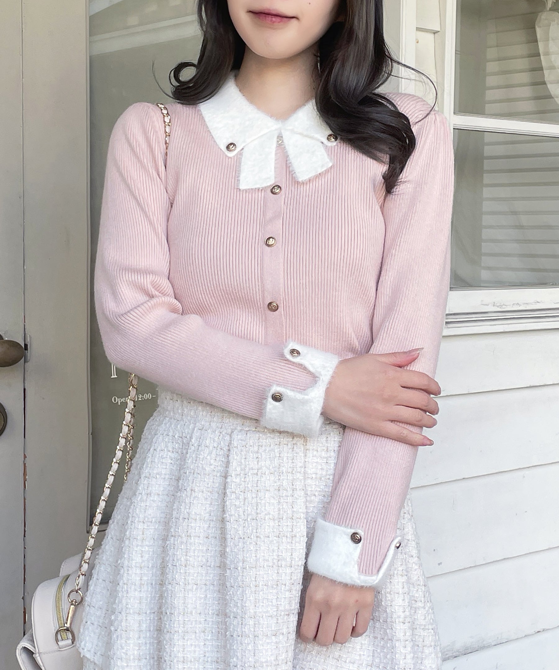 ・フェザー素材のリボン衿がガーリーライクなニット♡