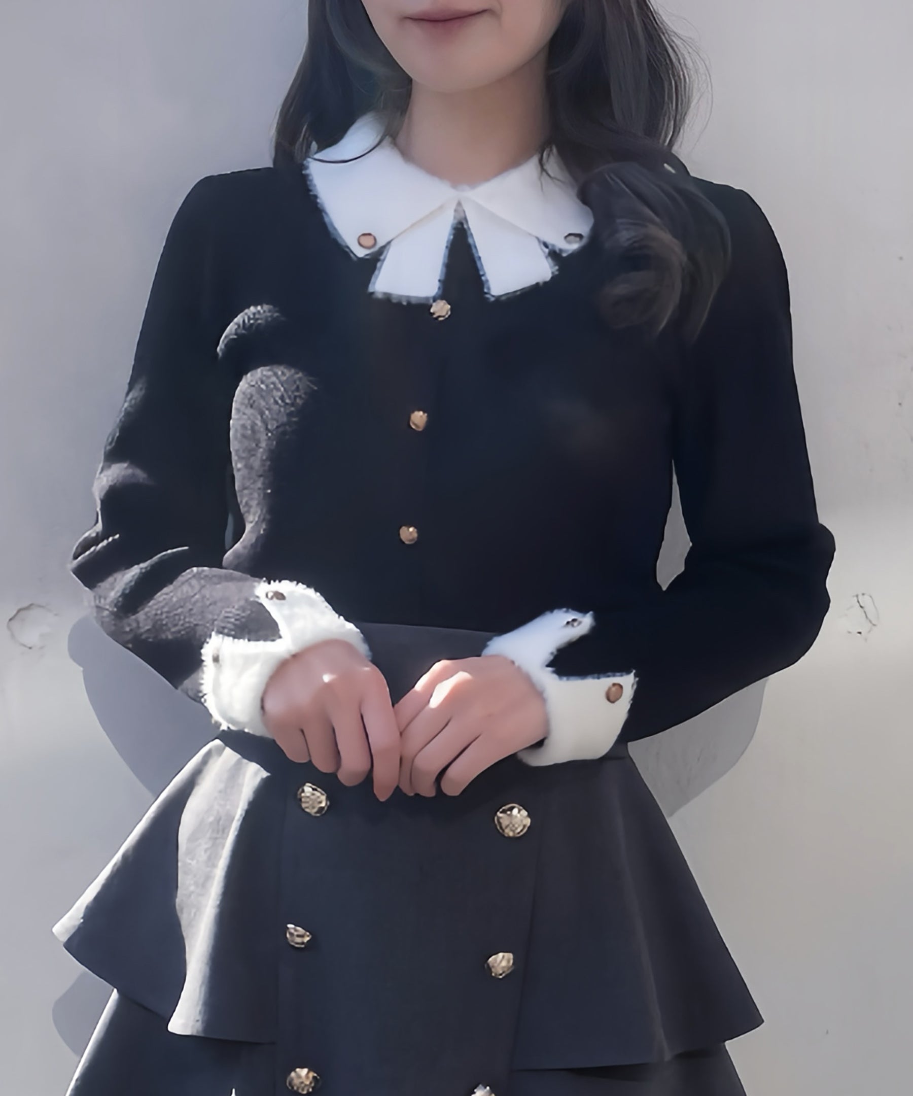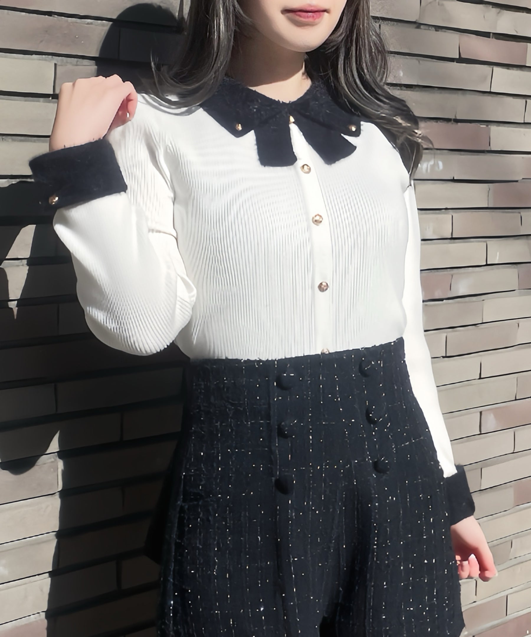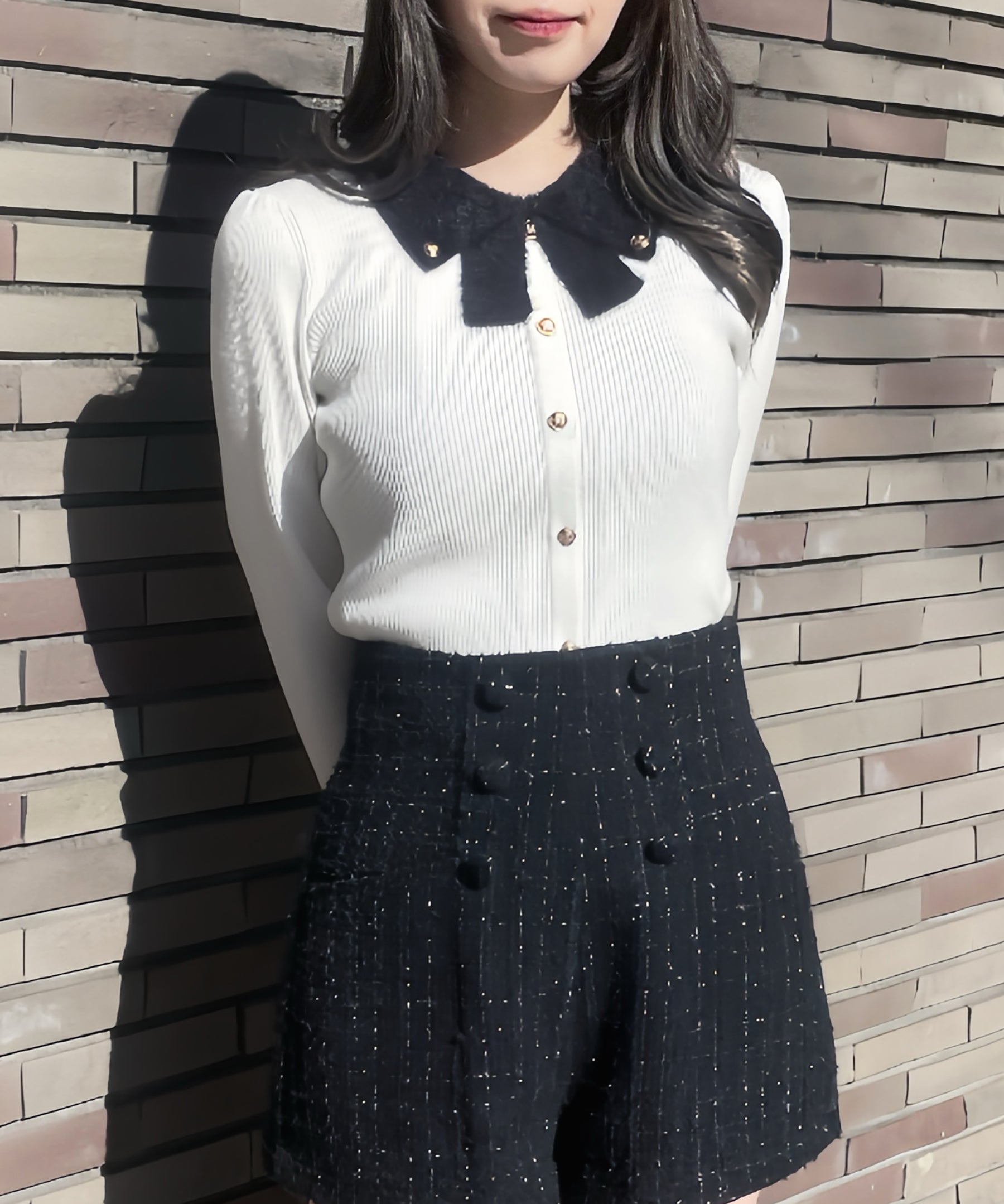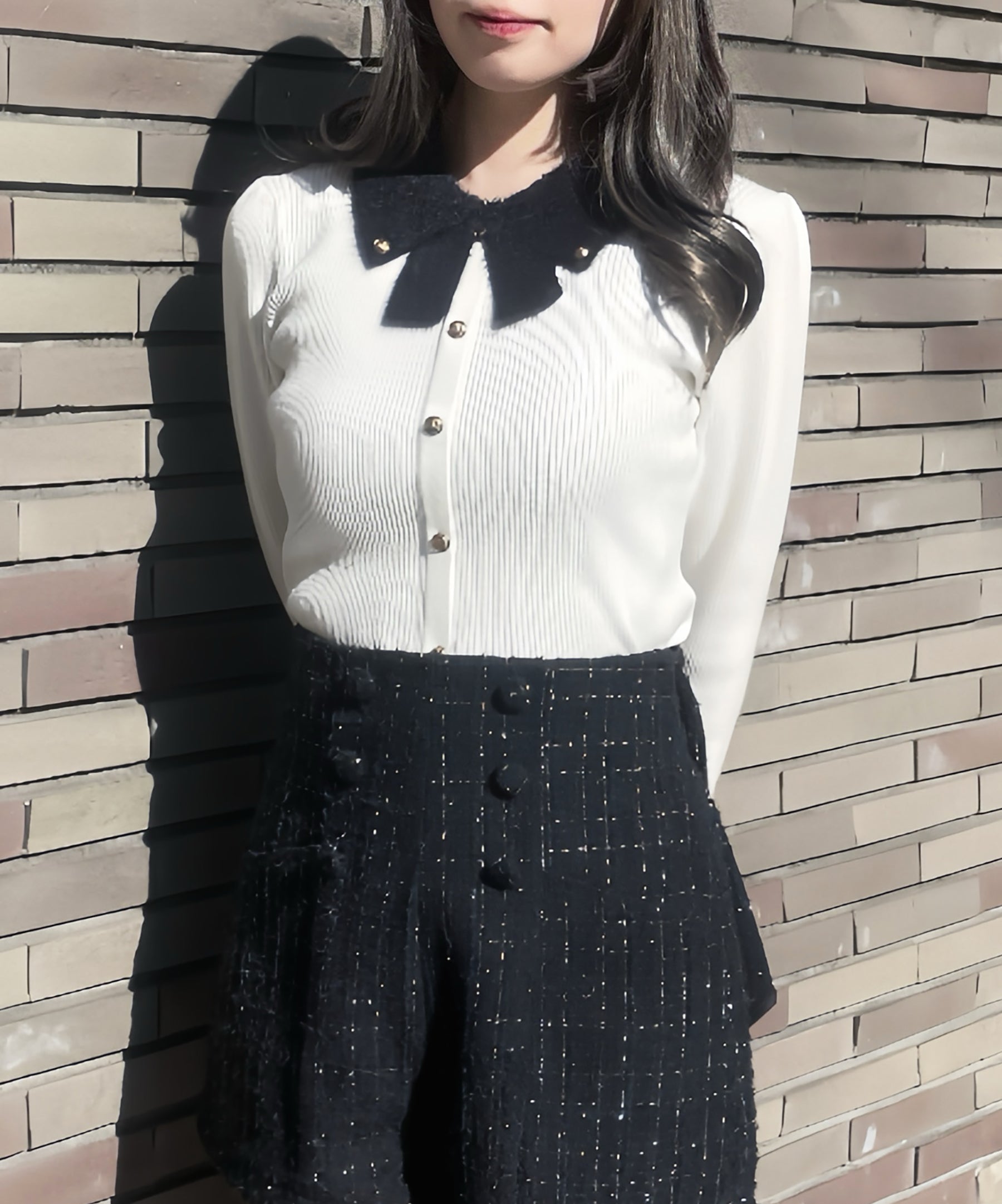 ・フェザー素材のリボン衿がガーリーライクなニット♡