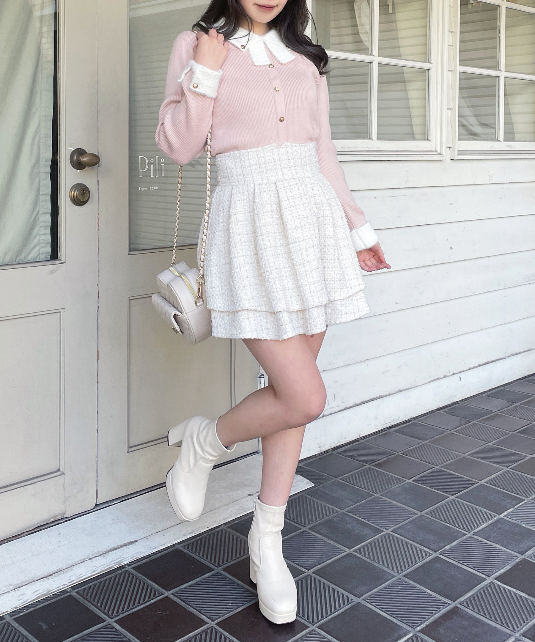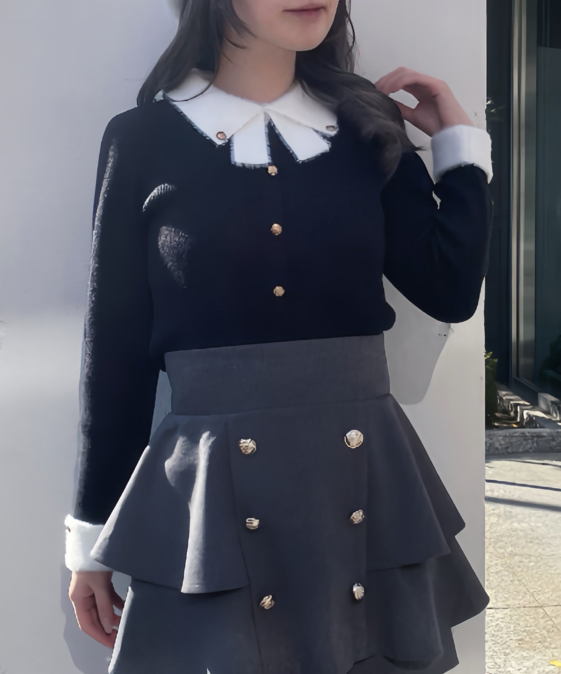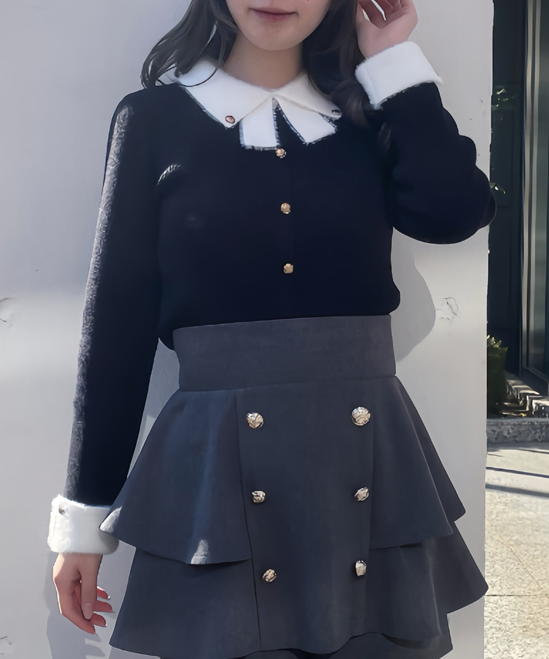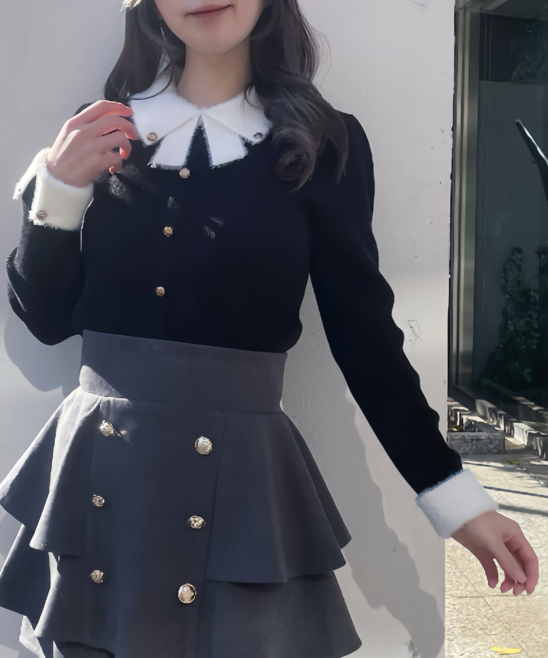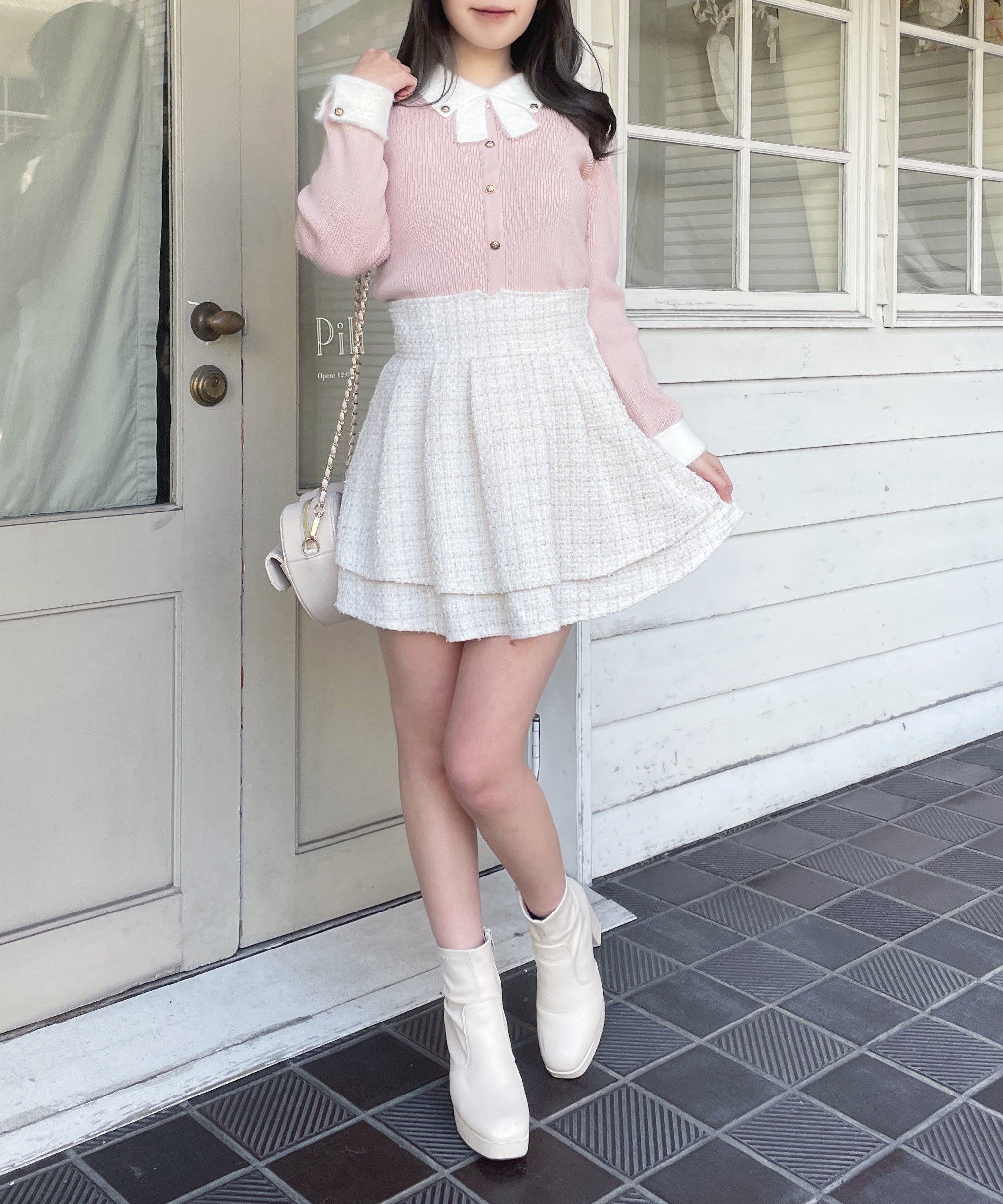 ・フェザー素材のリボン衿がガーリーライクなニット♡