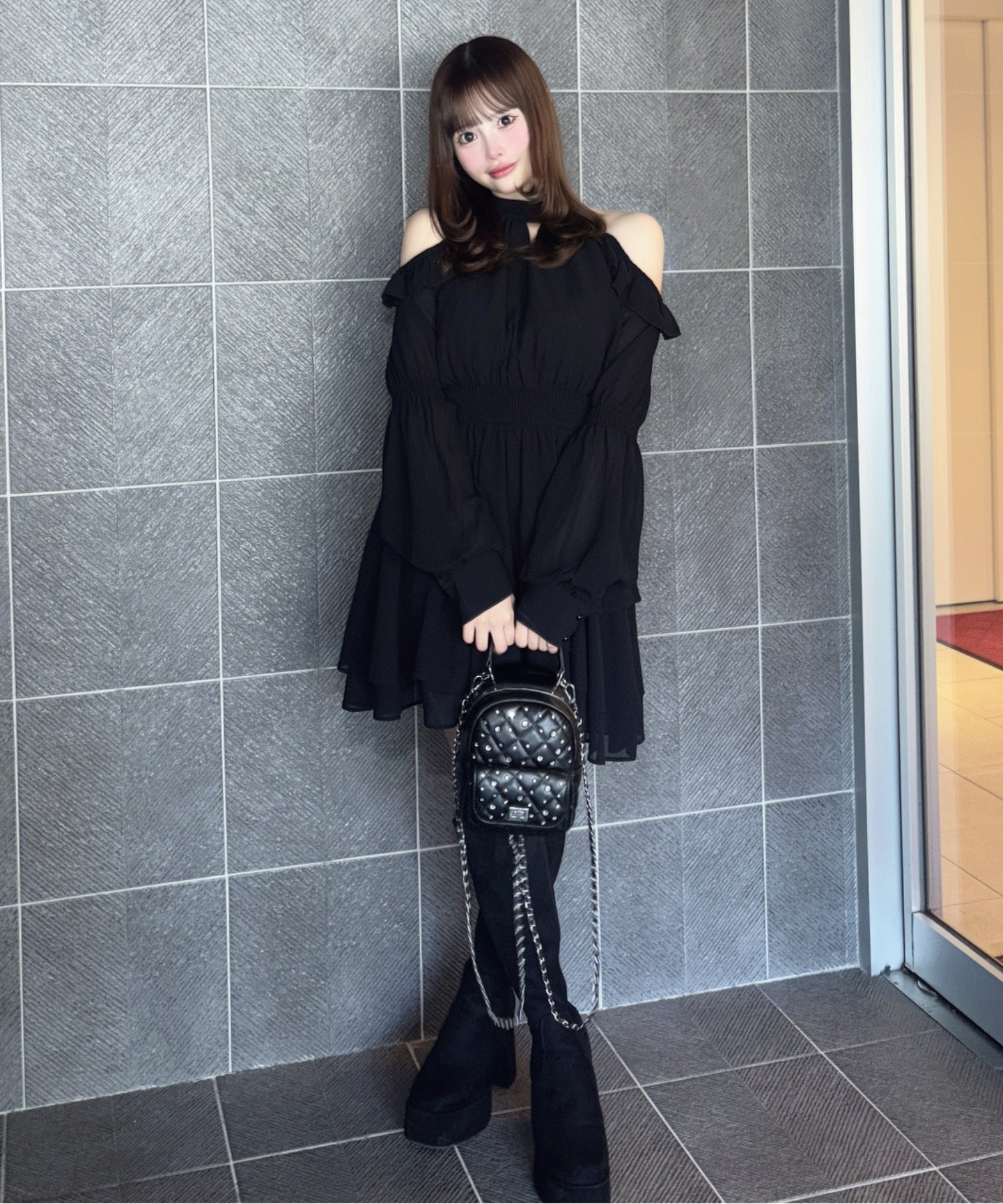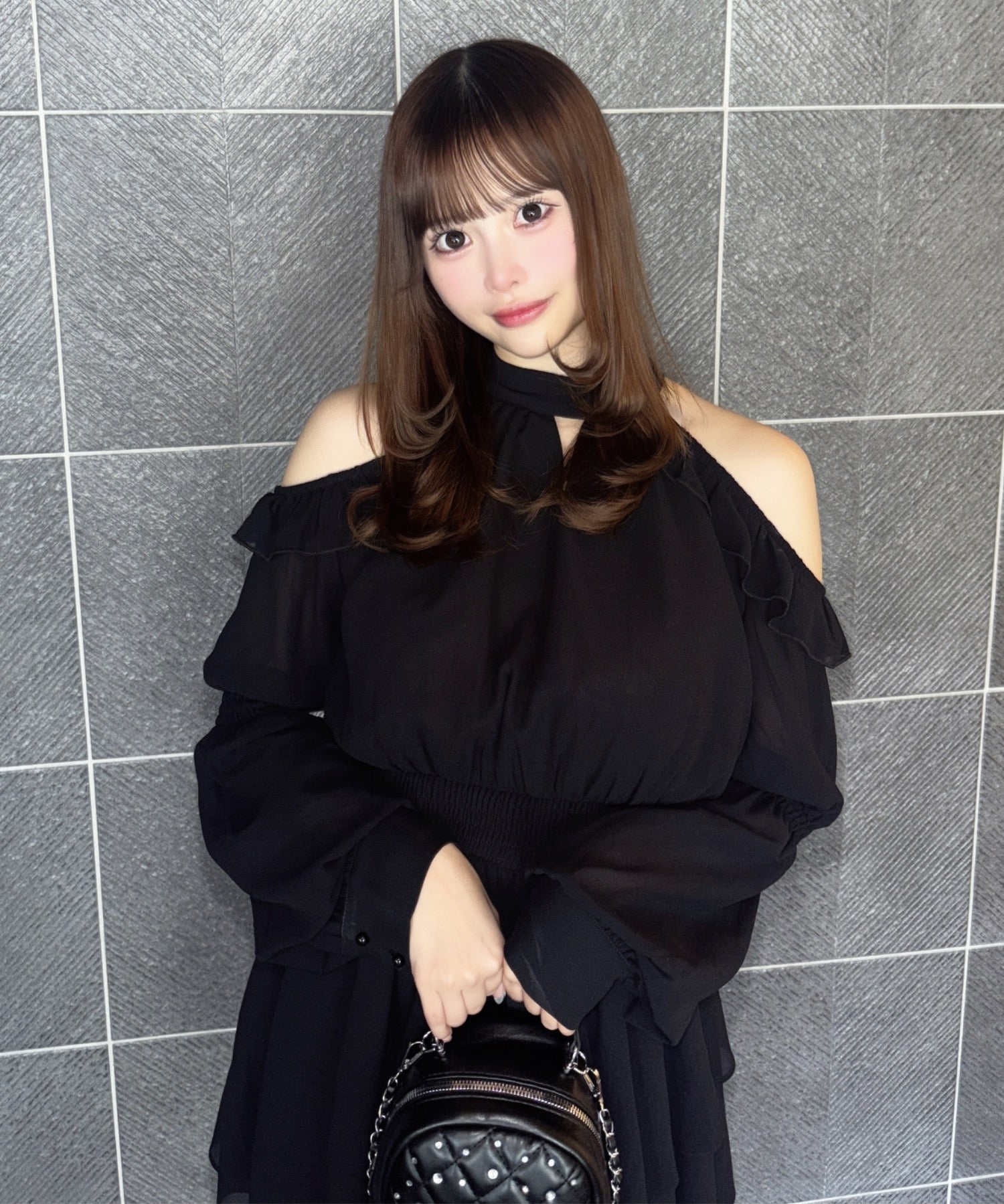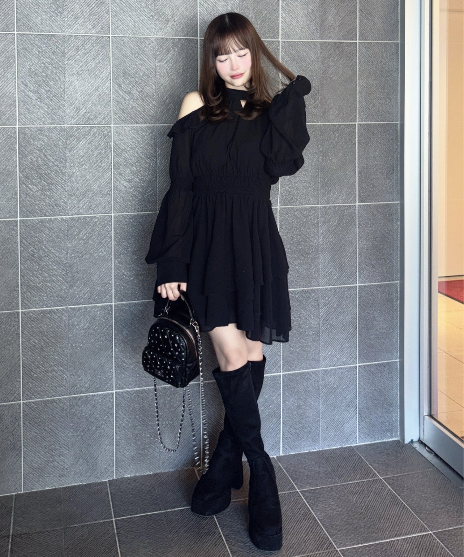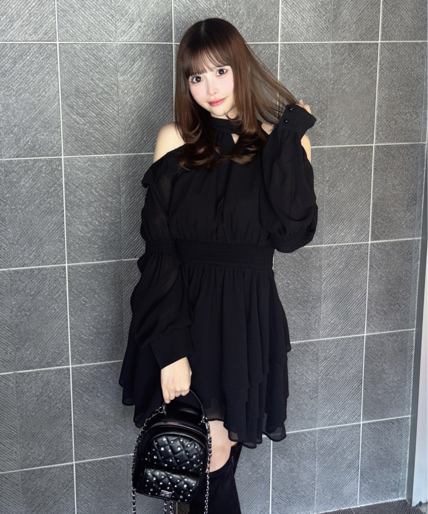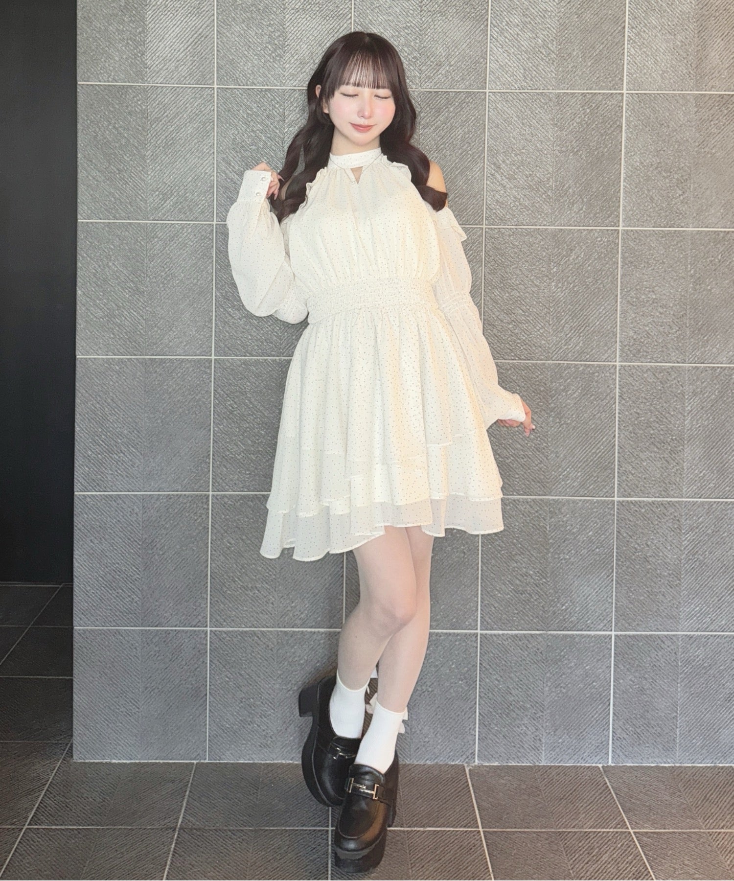 ・オープンショルダーの肌見せが華奢見えするシルエットに♪