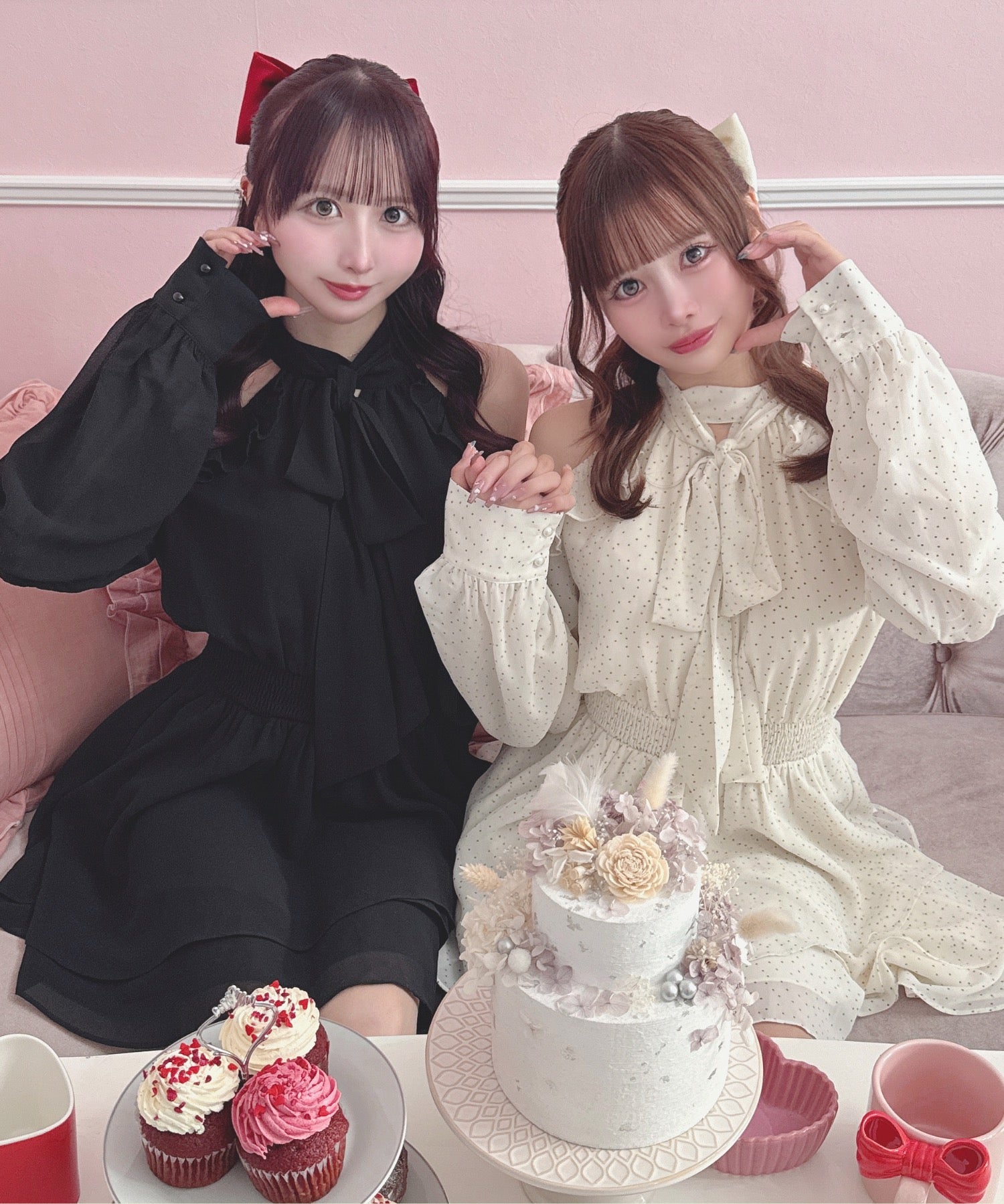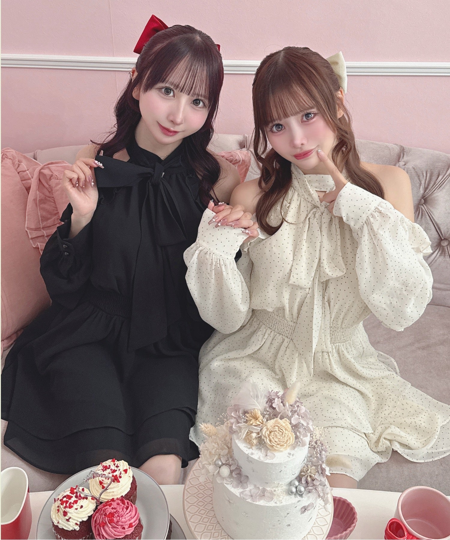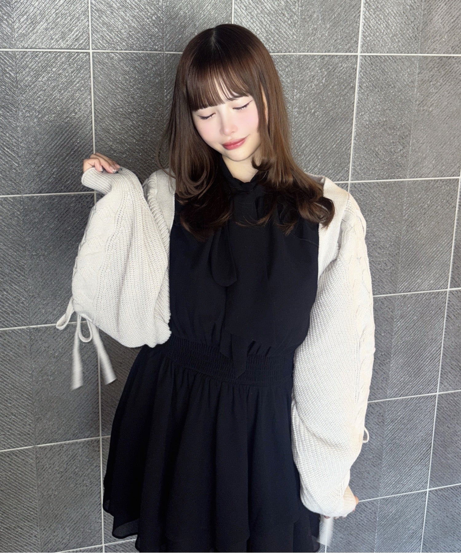 ・ボウタイリボンをフロントで結んでガーリーな印象にも、バックで結んで綺麗めな印象にも◎