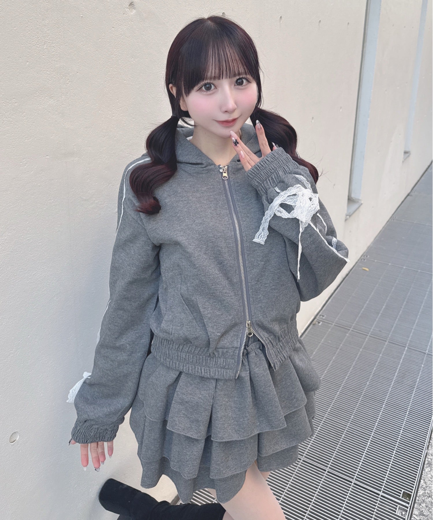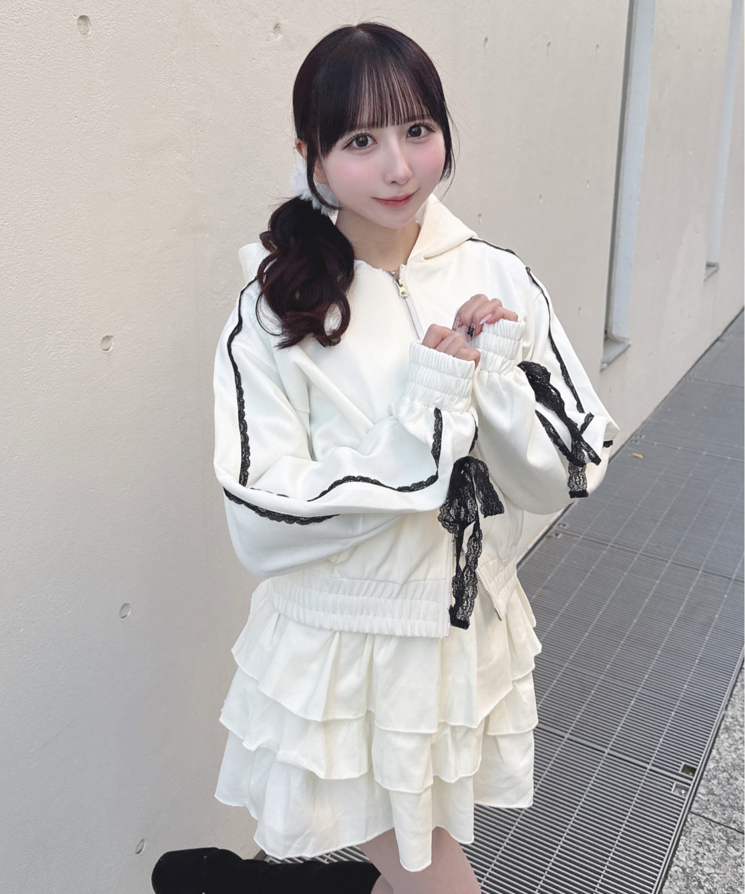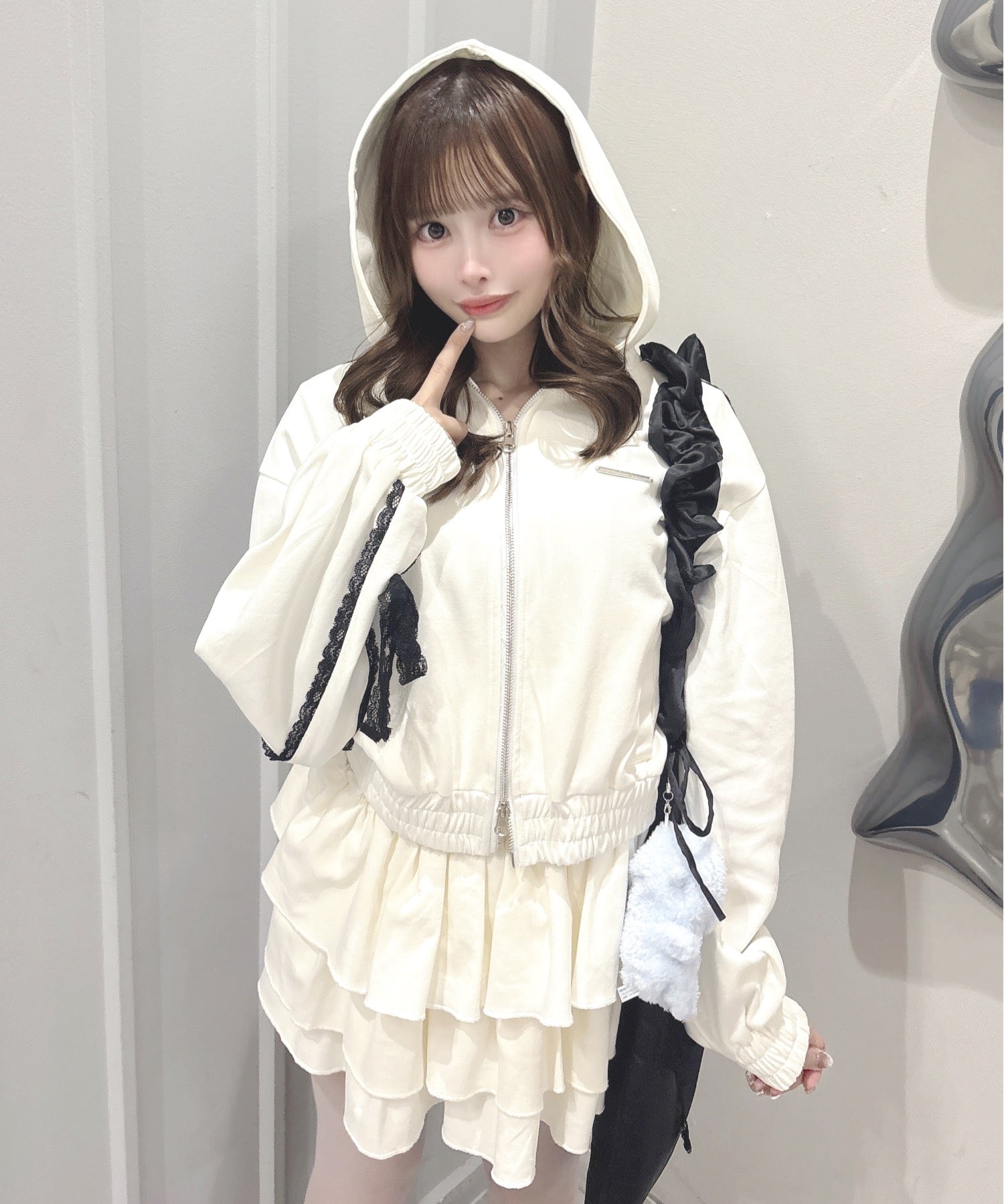 ・細部までこだわられた袖のリボンが可愛さをさらにプラスしてくれて、パーカーでもラフになりすぎないのが嬉しいポイント!