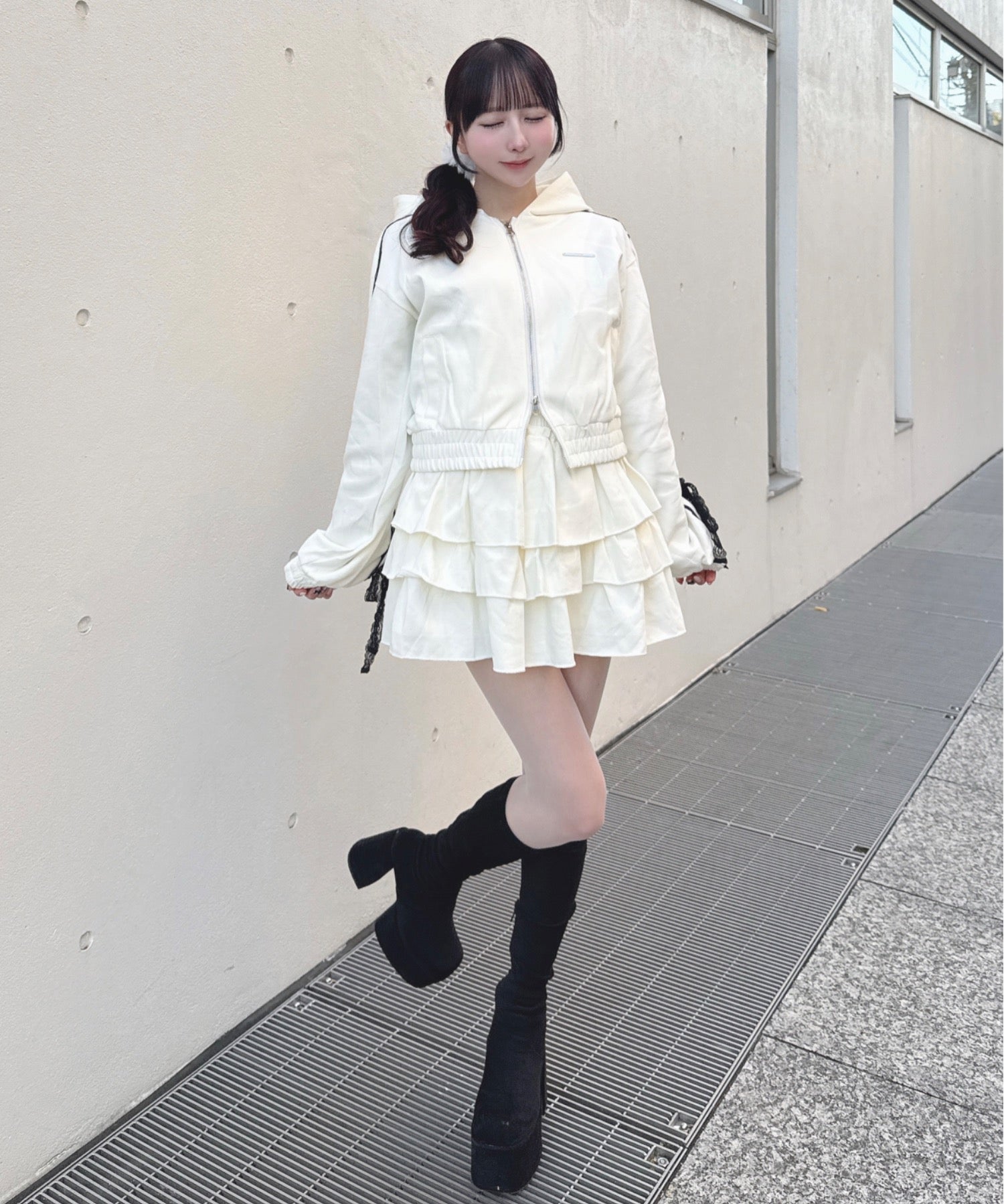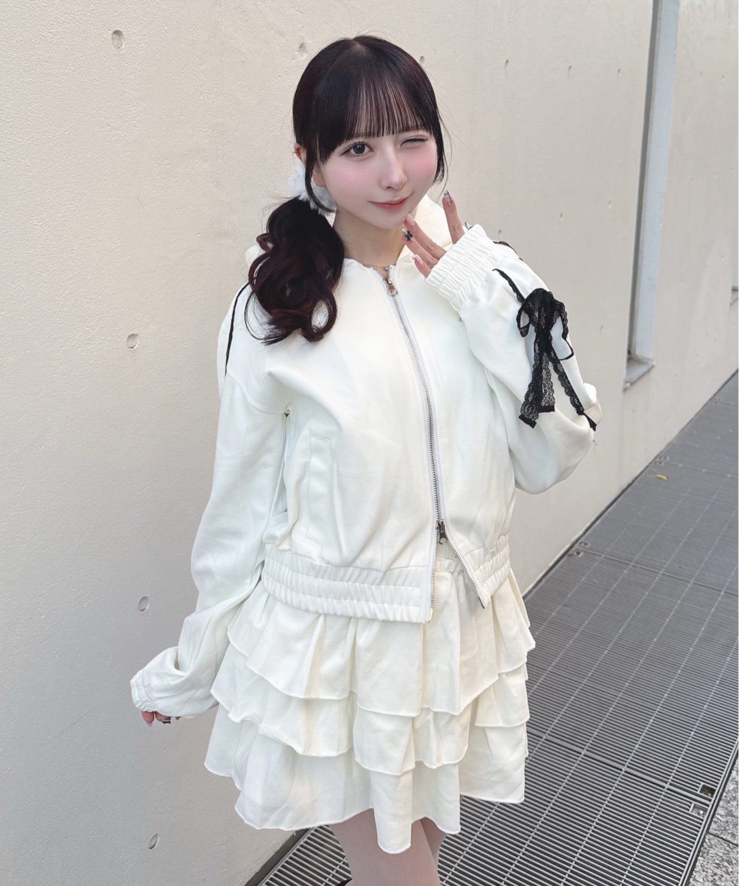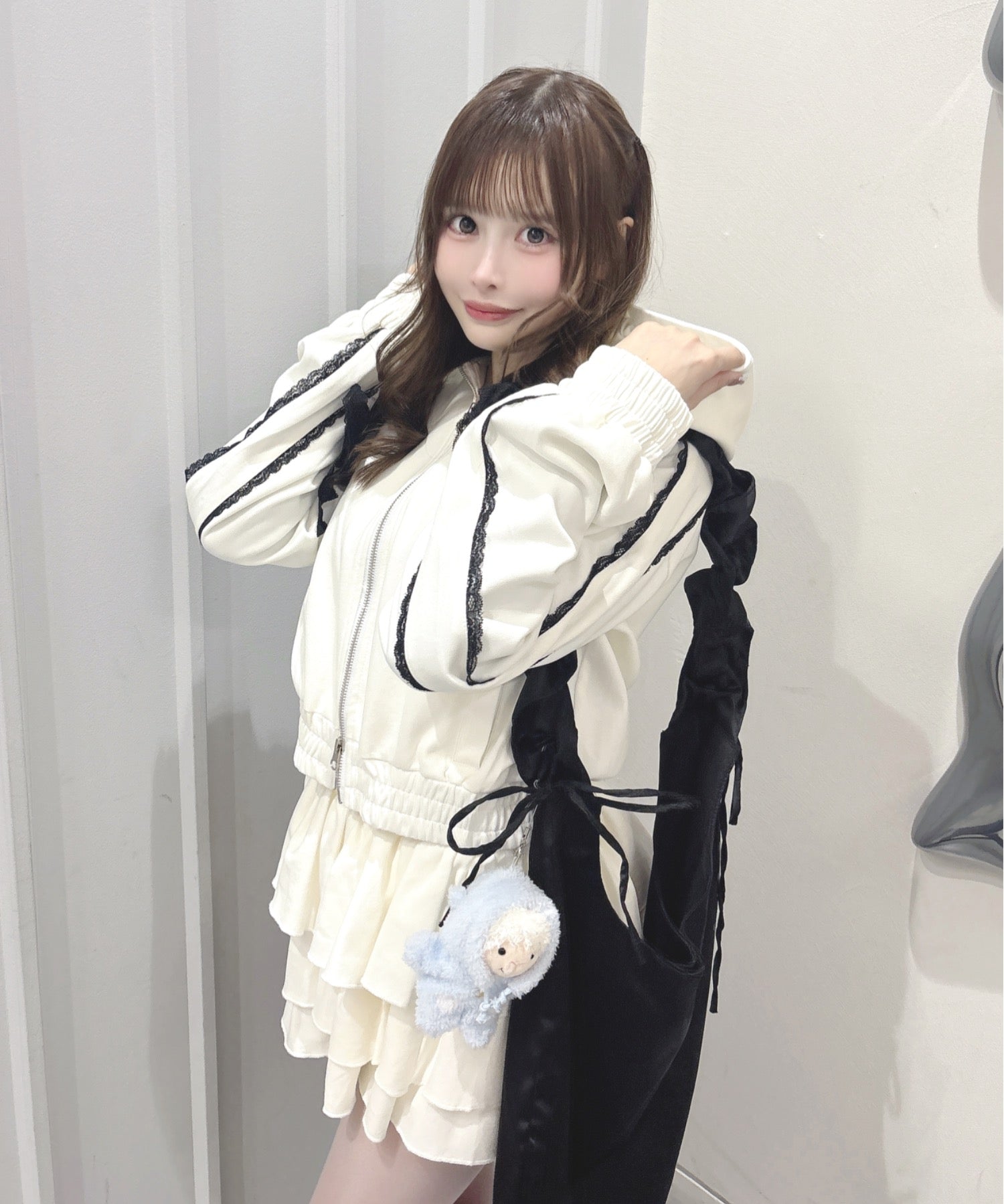 ・細部までこだわられた袖のリボンが可愛さをさらにプラスしてくれて、パーカーでもラフになりすぎないのが嬉しいポイント!