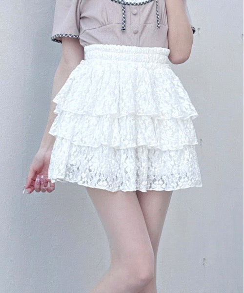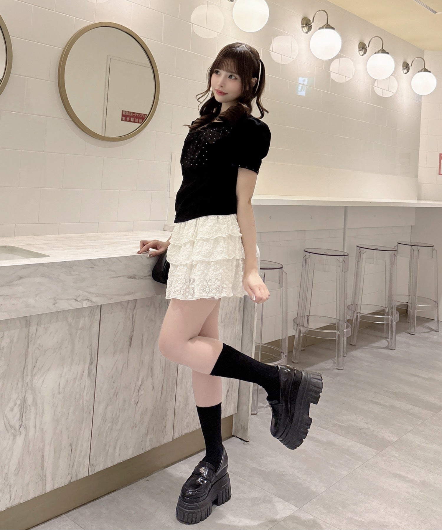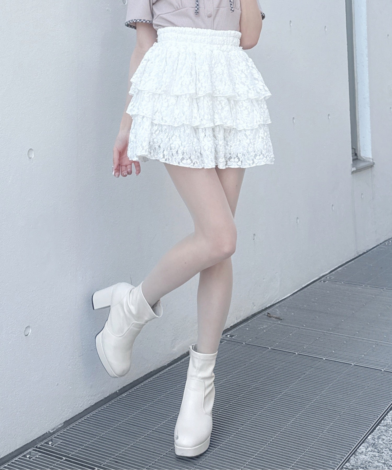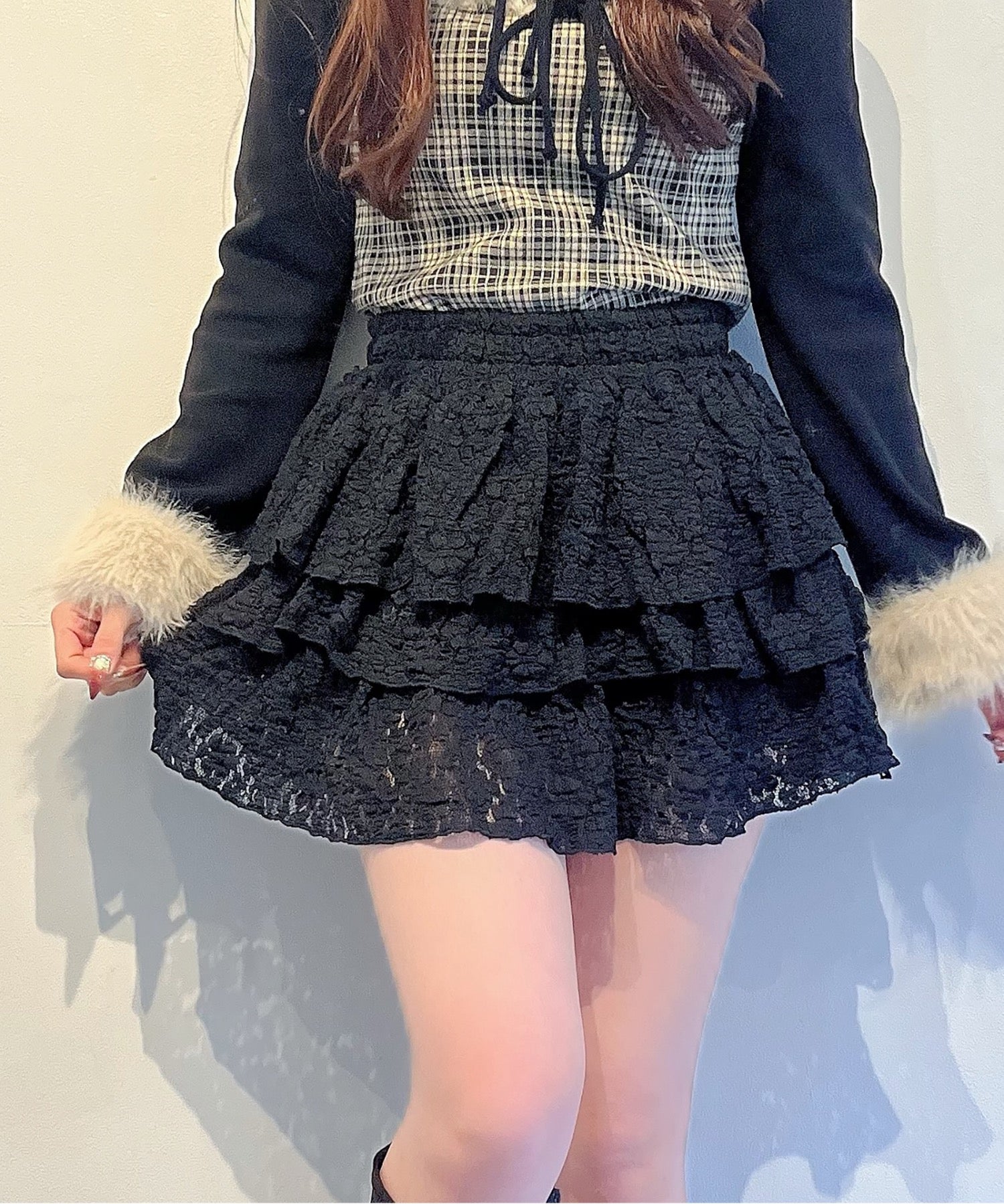 ・さらっと見えるレース生地でもティアードがふんわりと広がるボリューム感♡