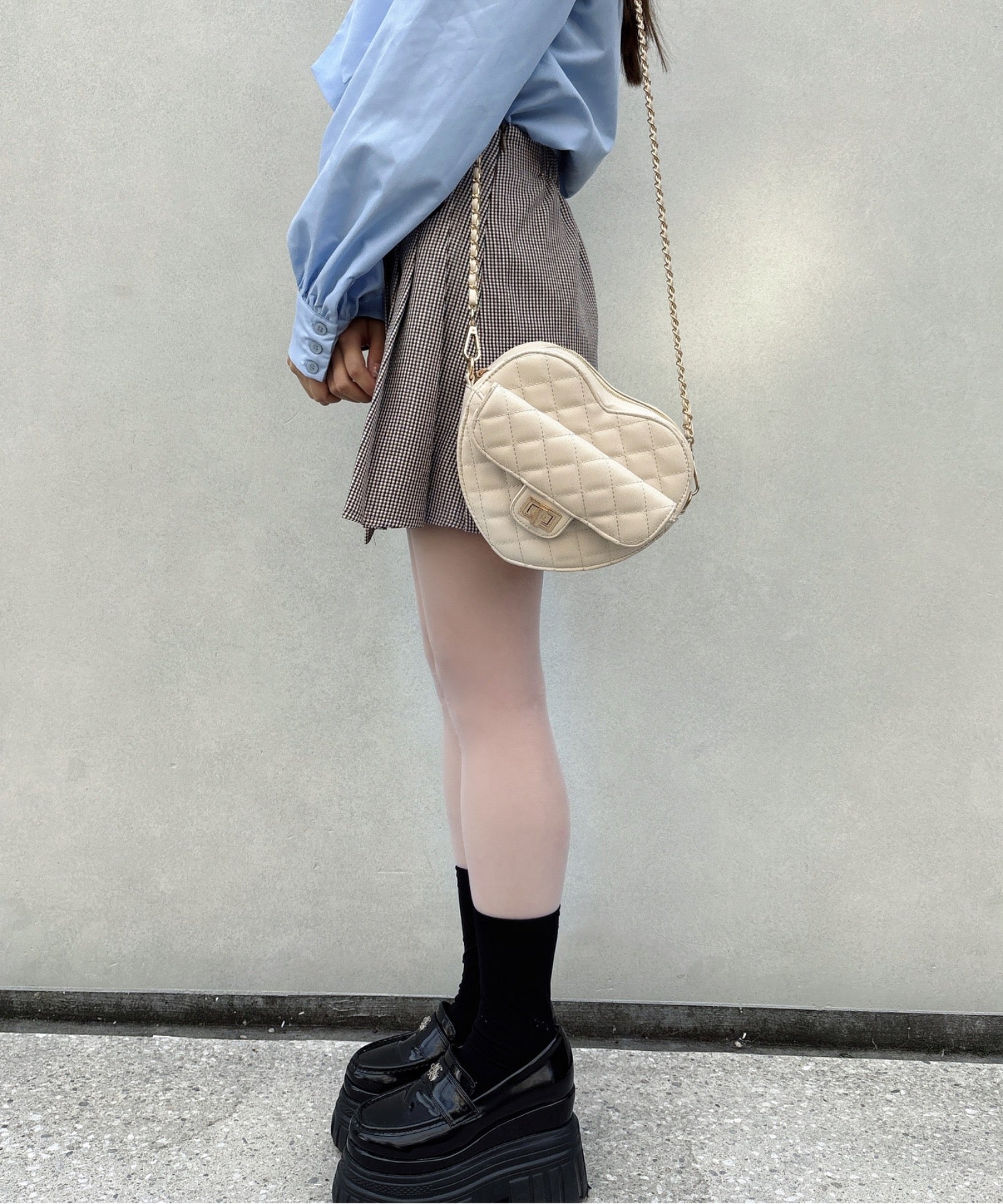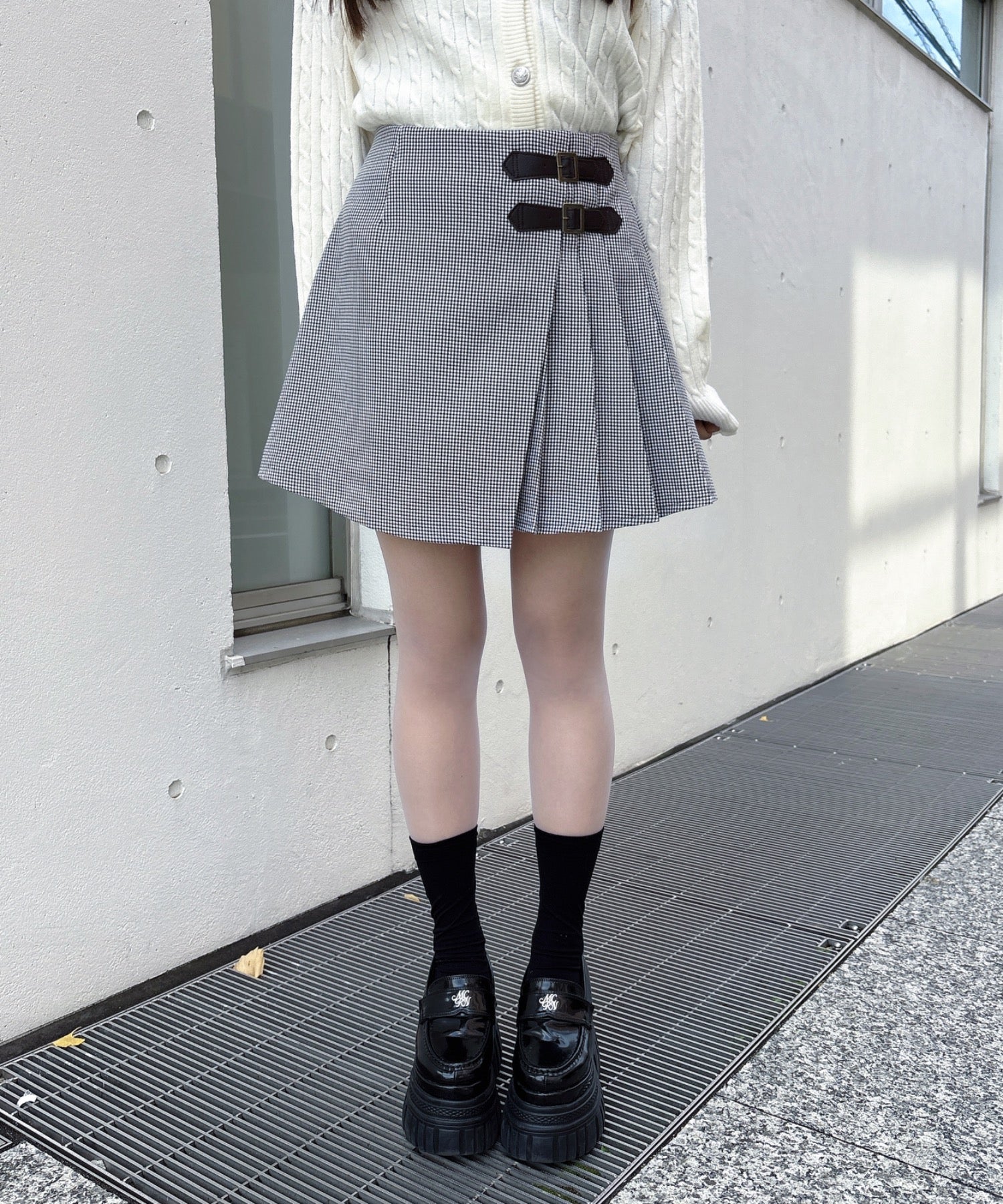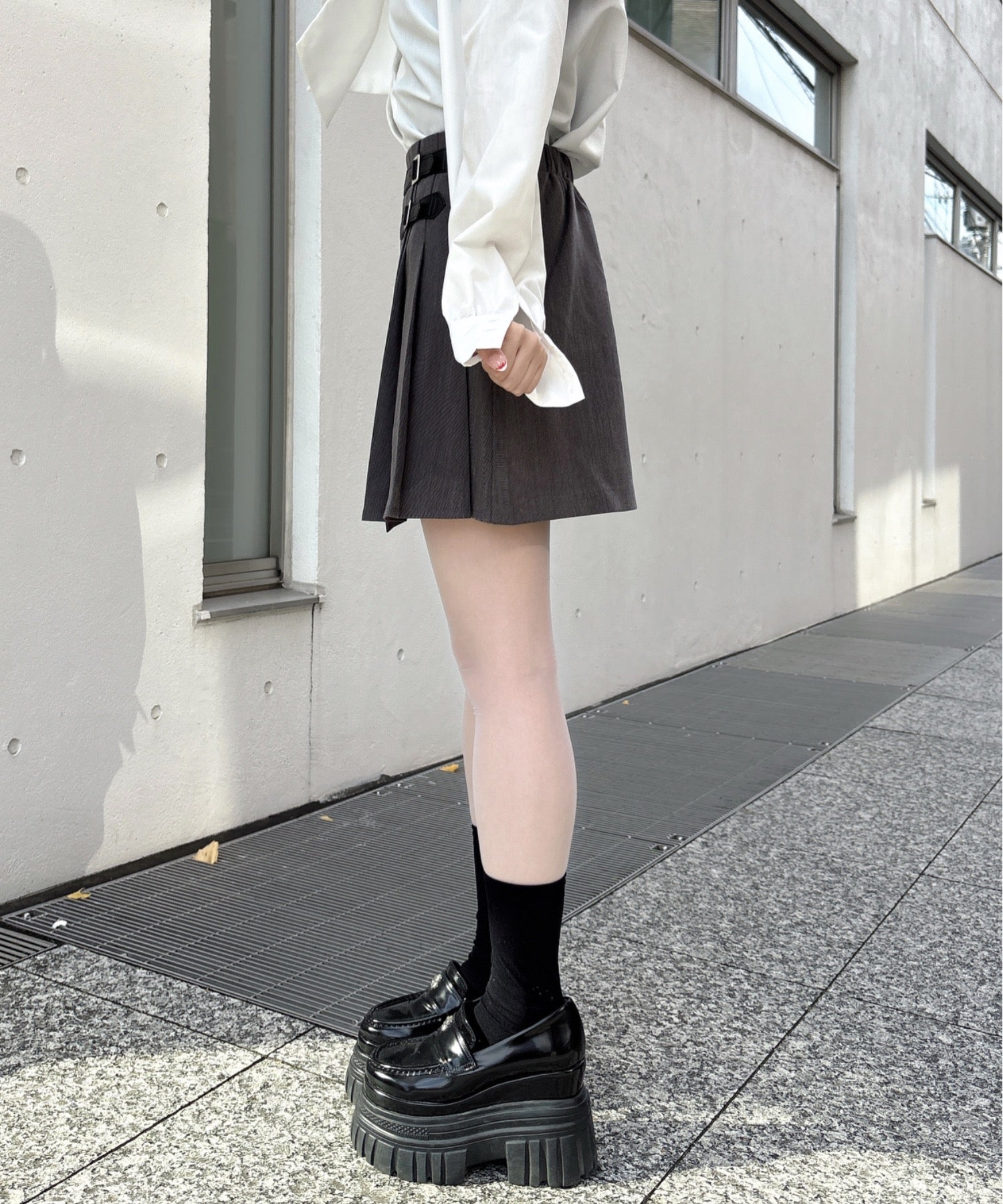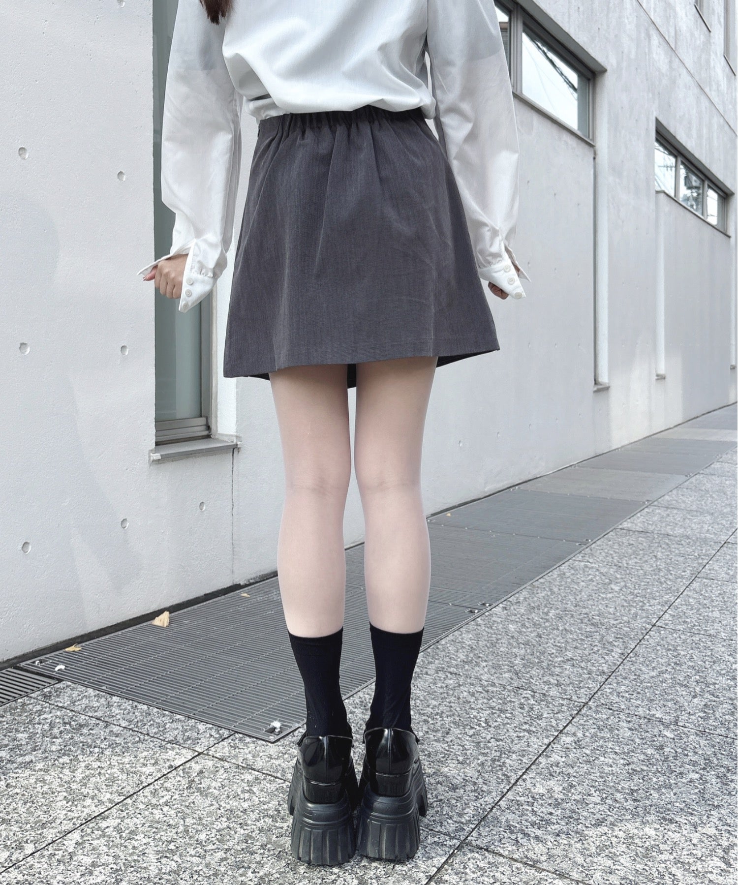 ・肌寒い時期は足元にタイツを合わせてもクラシカルな印象で可愛い♩