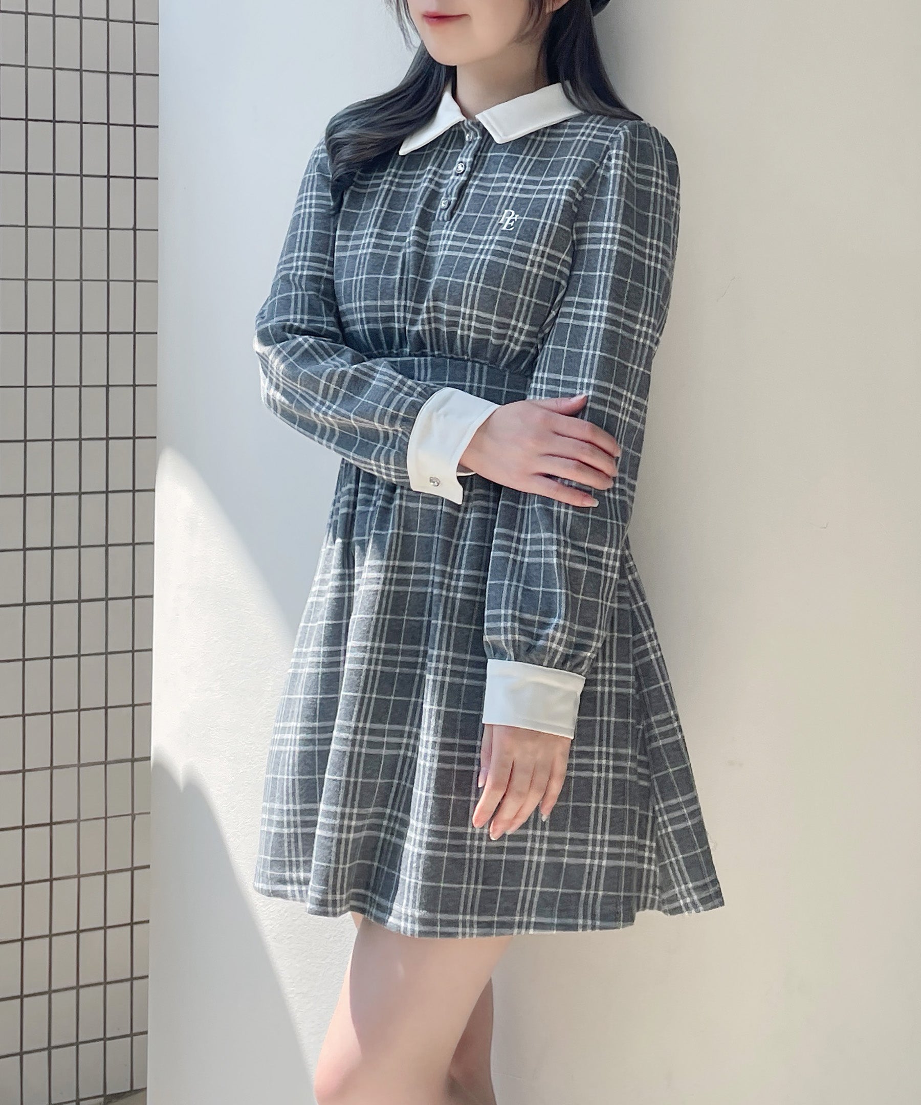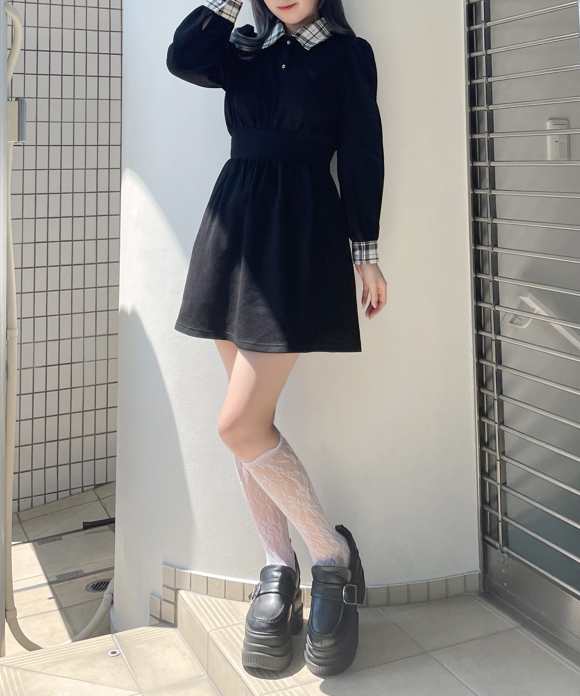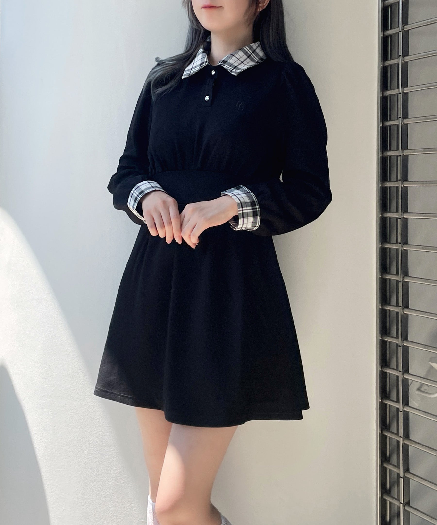 ・ポロ衿とストーン調のボタンがアクセントのガーリーなワンピース♡