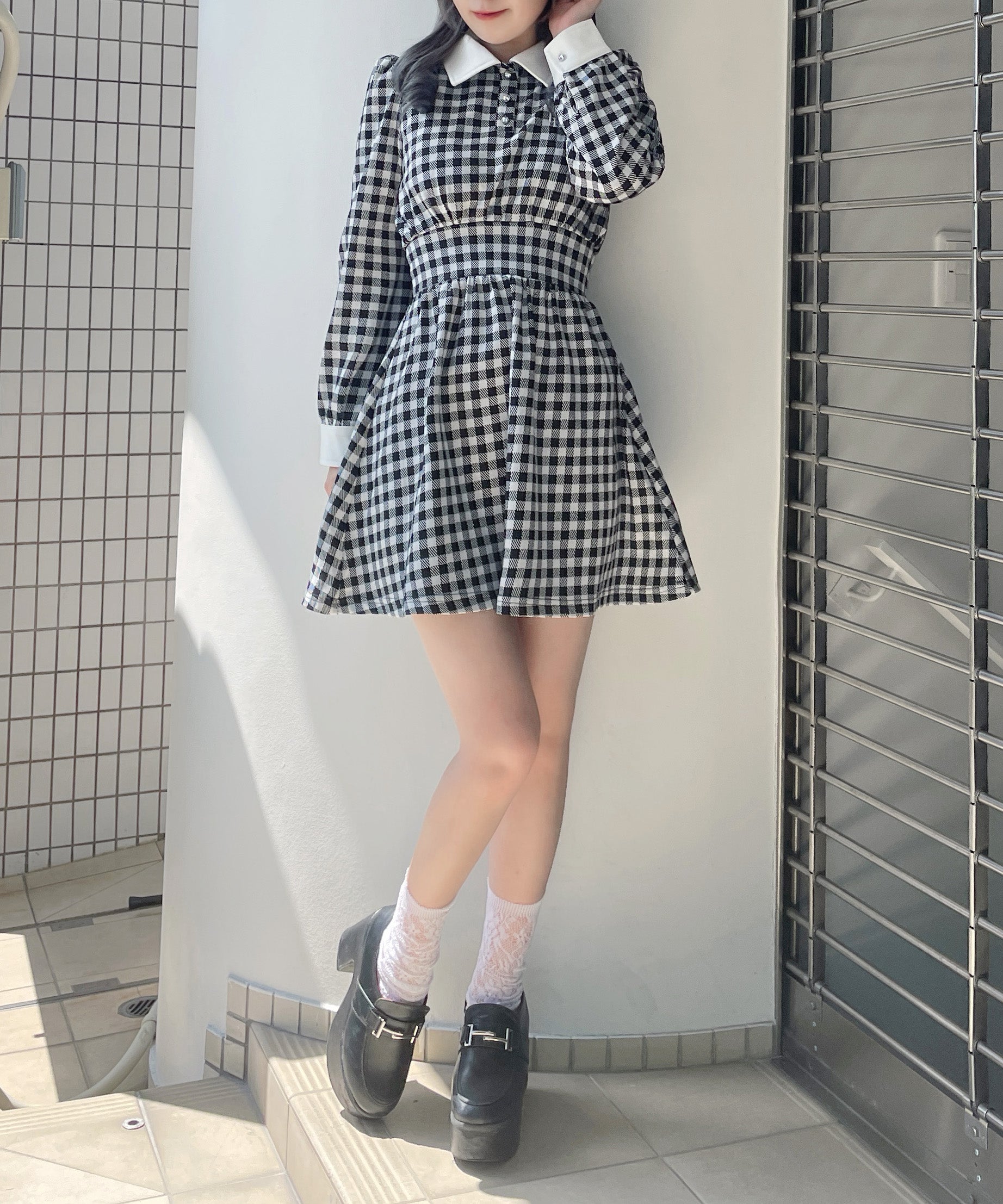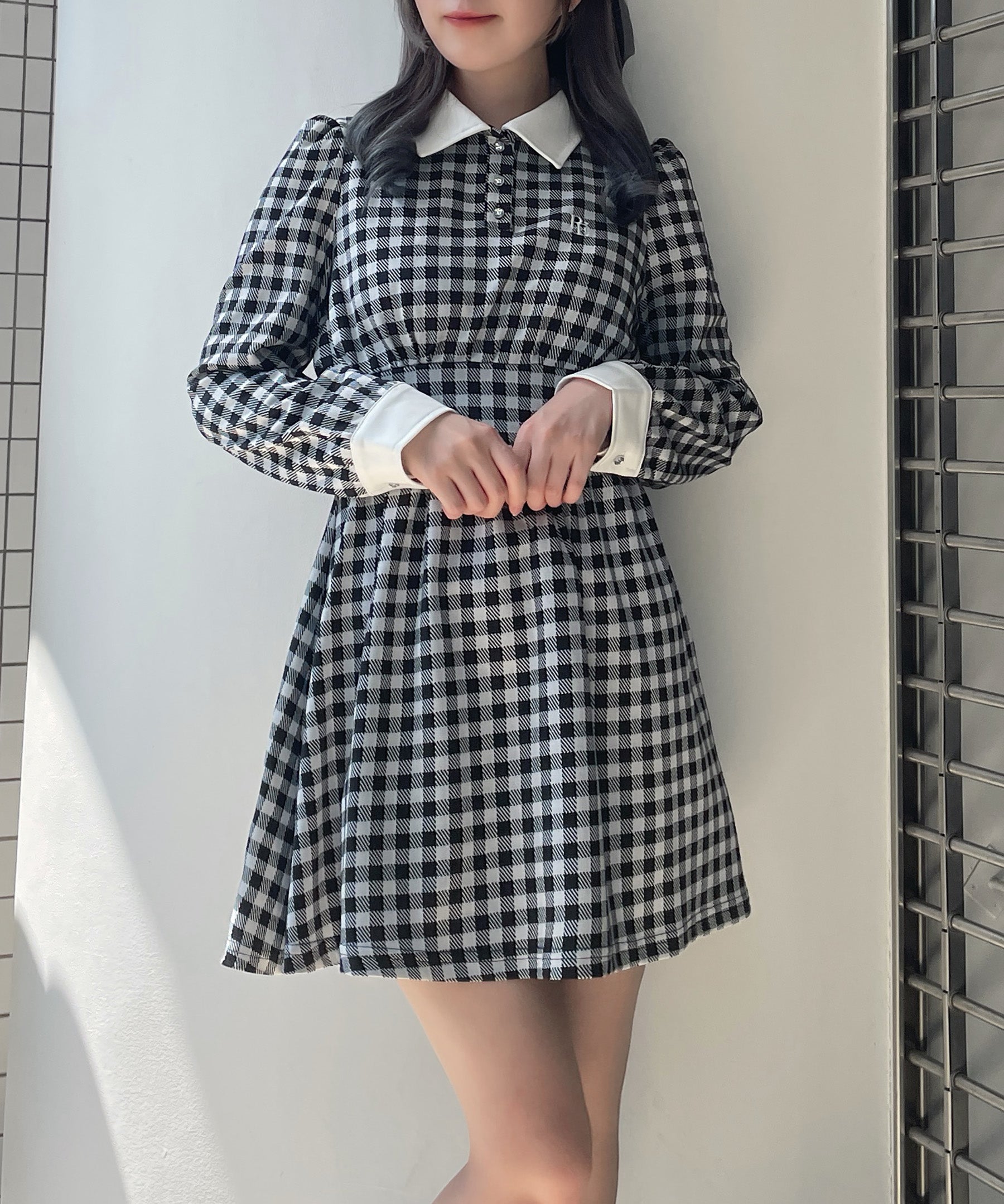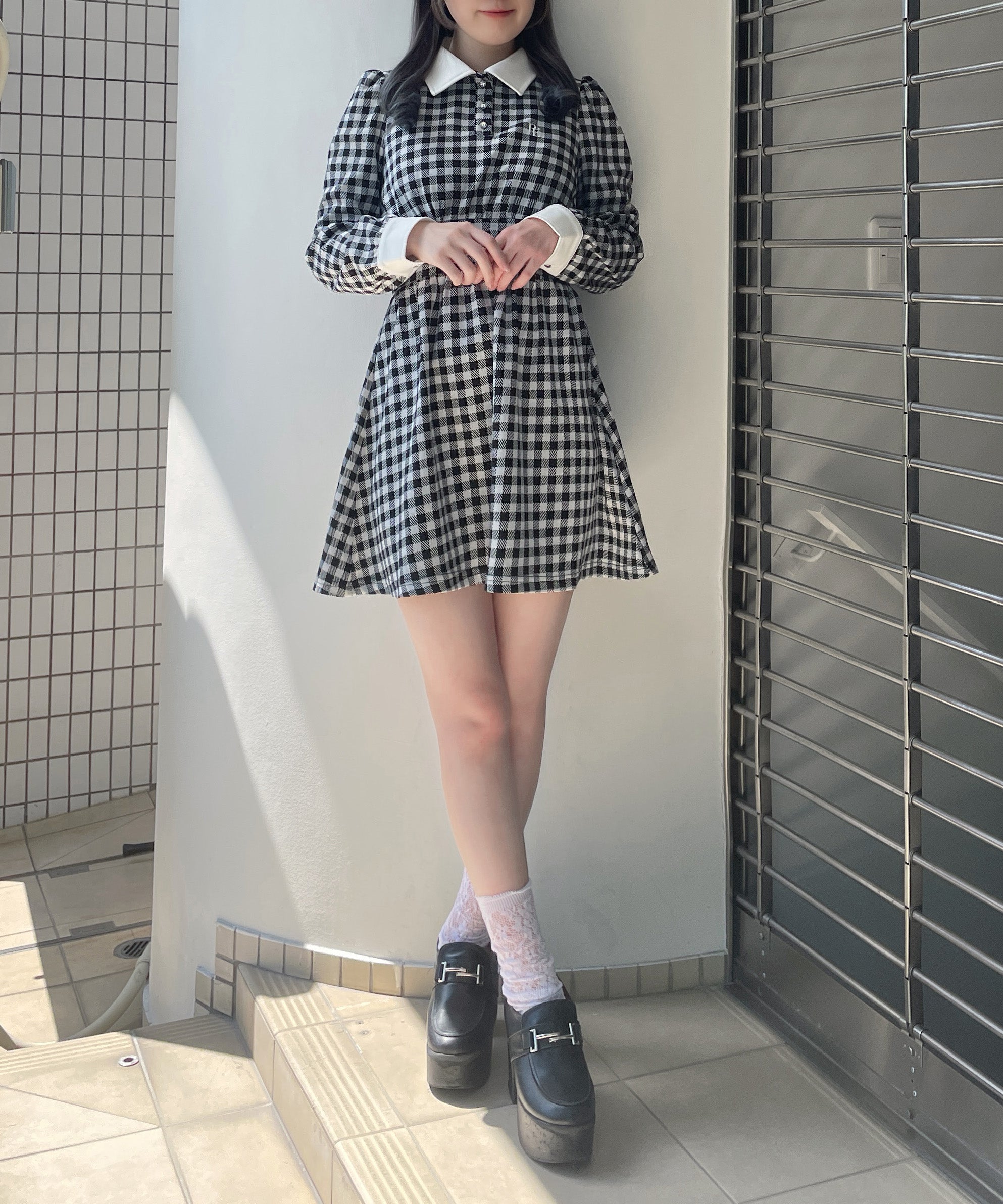 ・ポロ衿とストーン調のボタンがアクセントのガーリーなワンピース♡