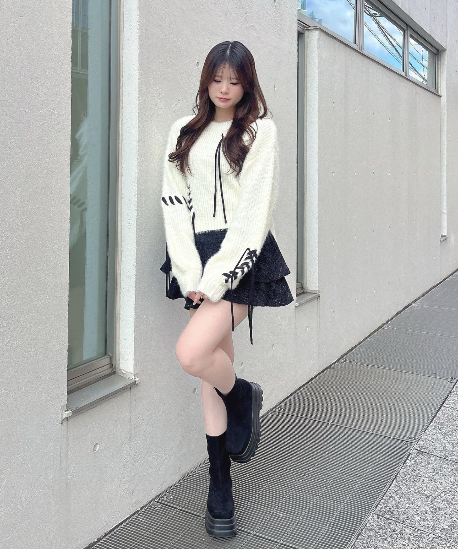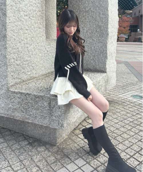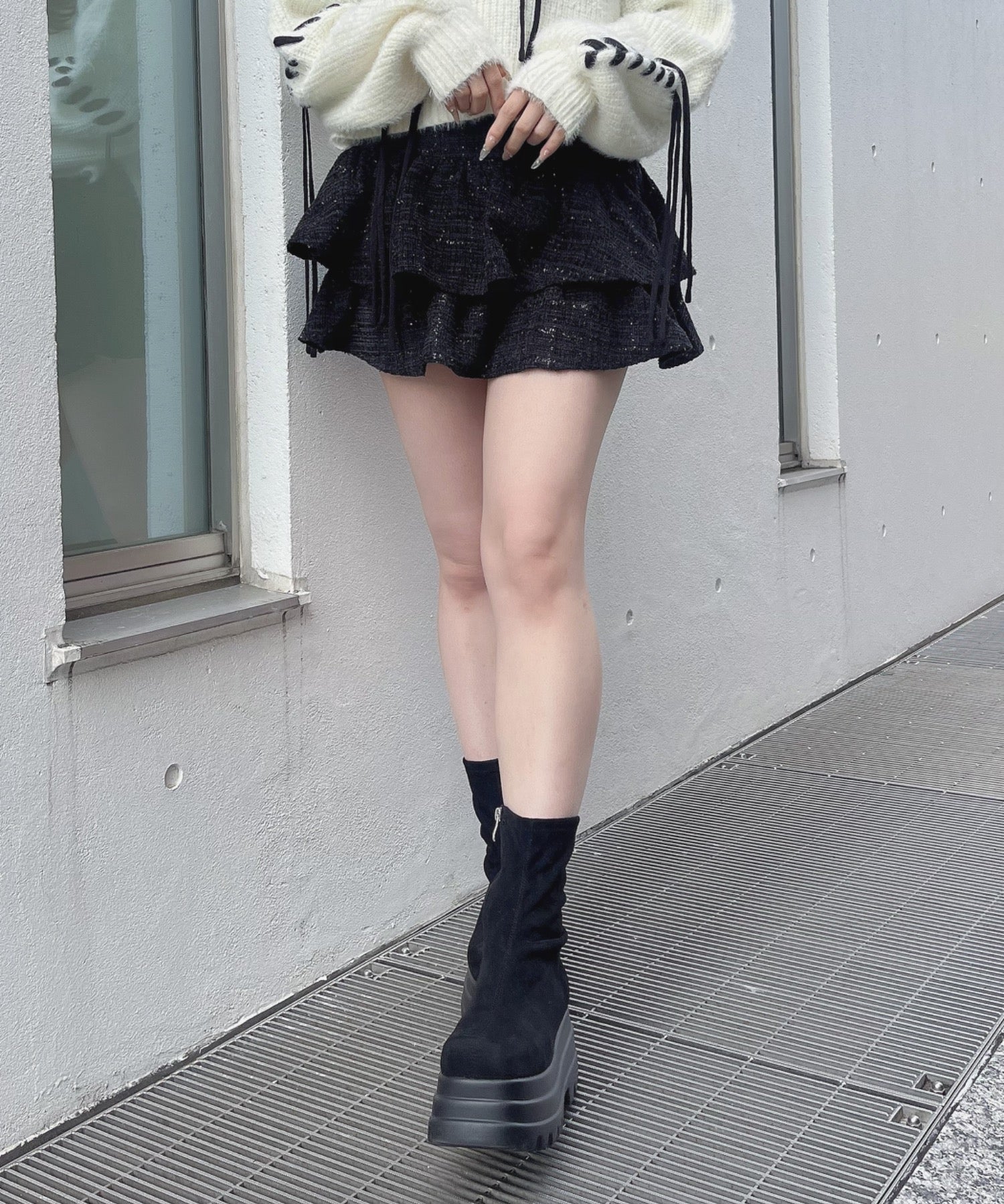・ゆるっとしたニットやアウターにティアードのフリル部分をさりげなくチラ見せしても可愛い♡