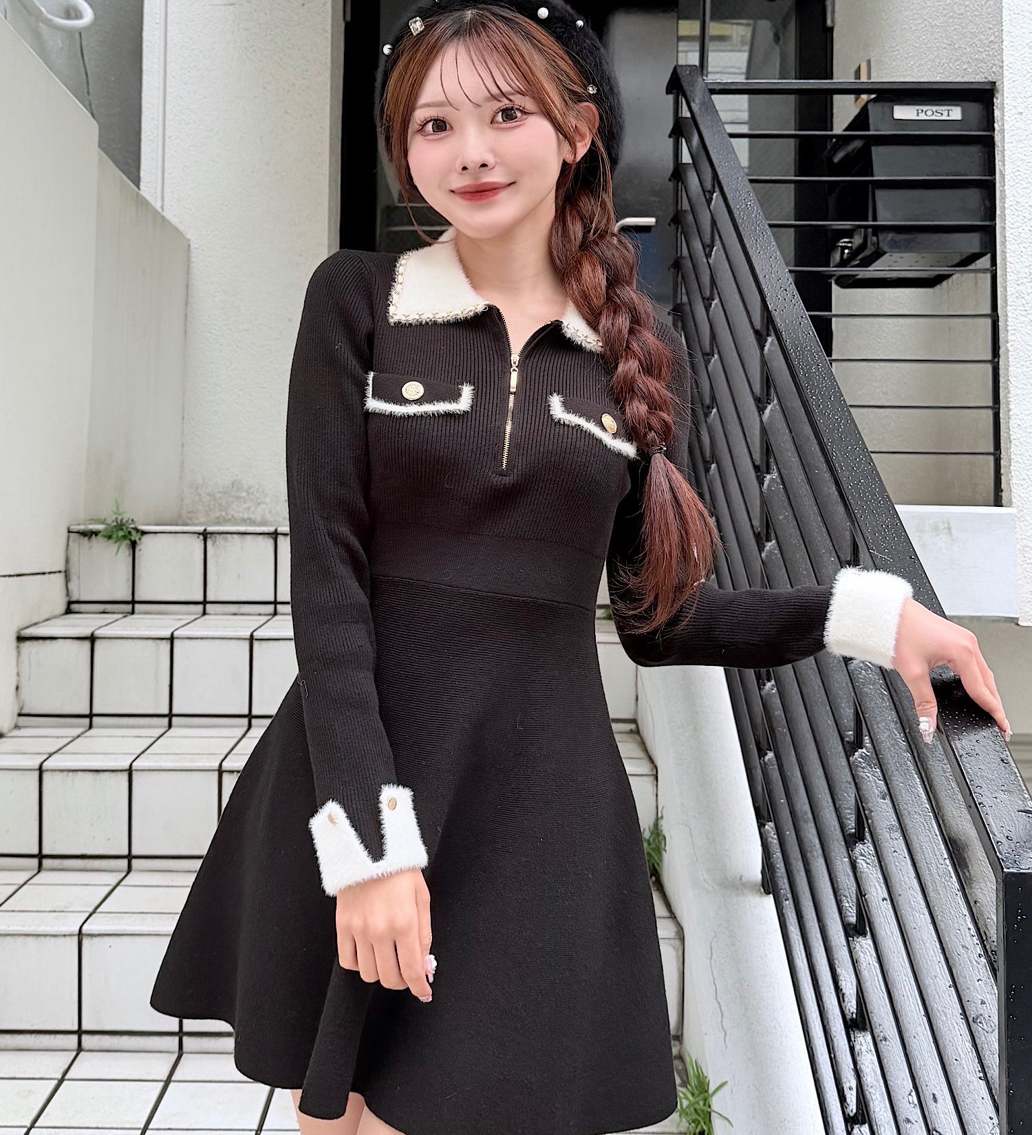【予約商品 12月中旬発送】チェーンカラーZIPニットワンピース