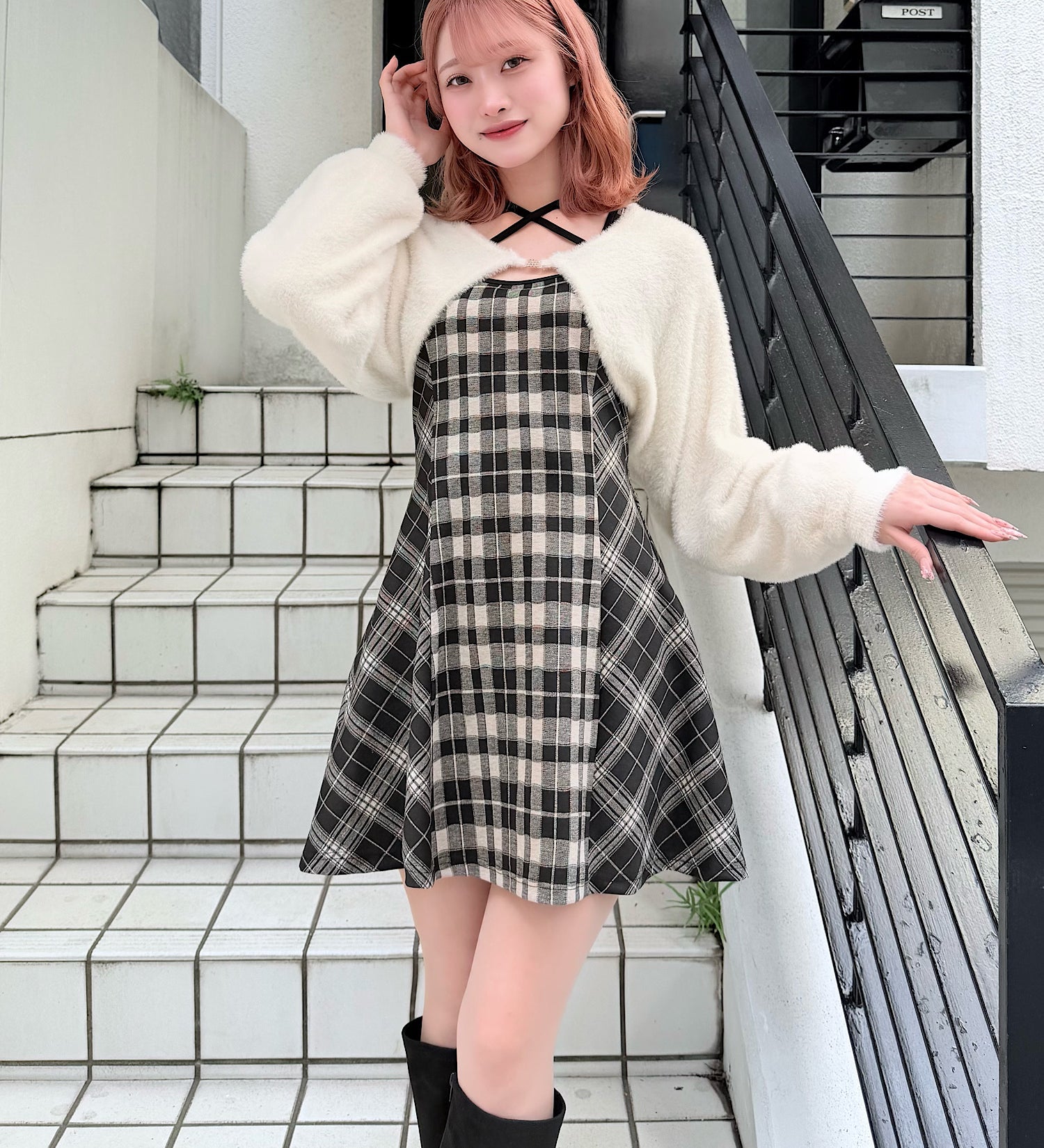 【予約商品 12月上旬発送】シャギーボレロミニチェックワンピース