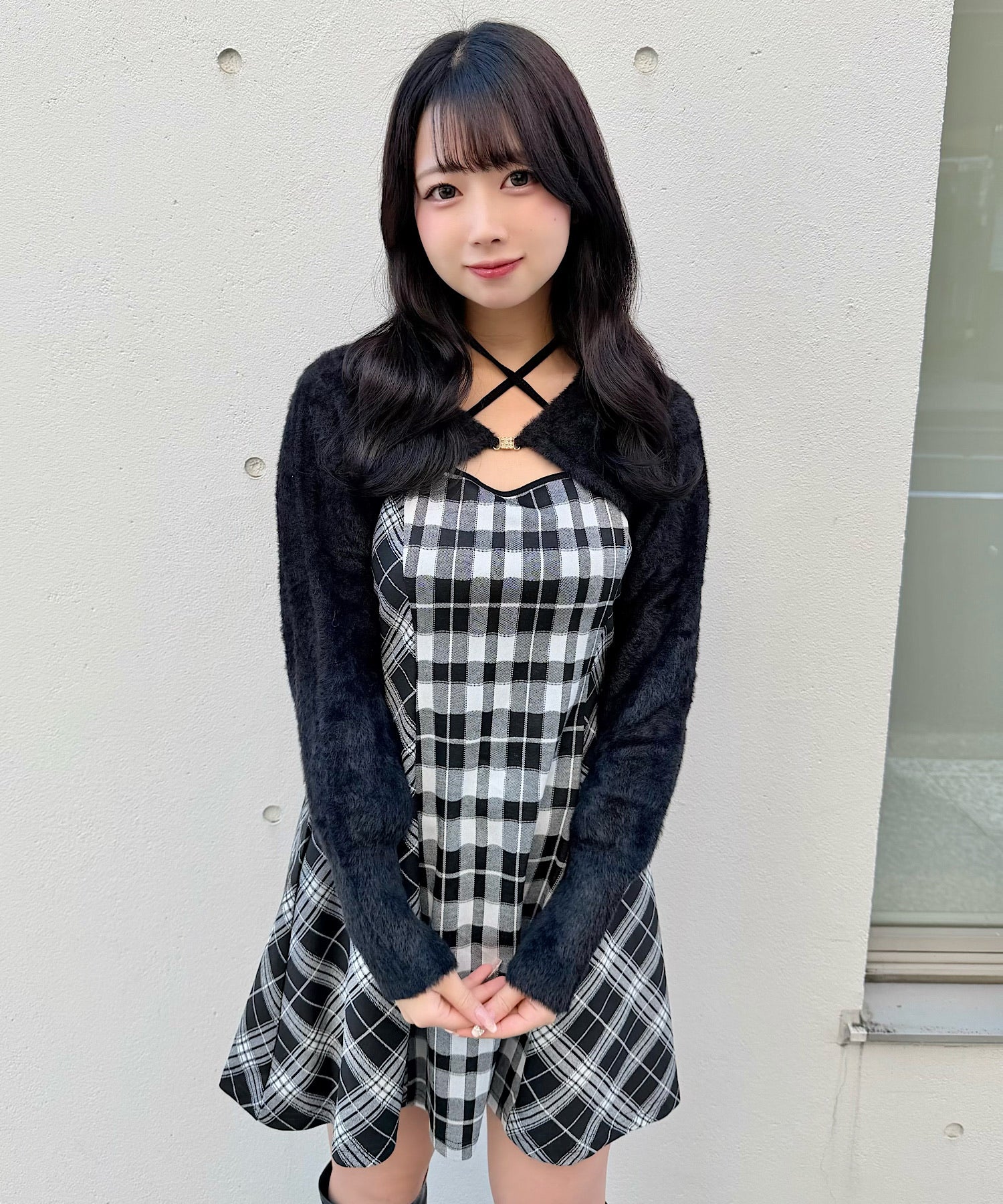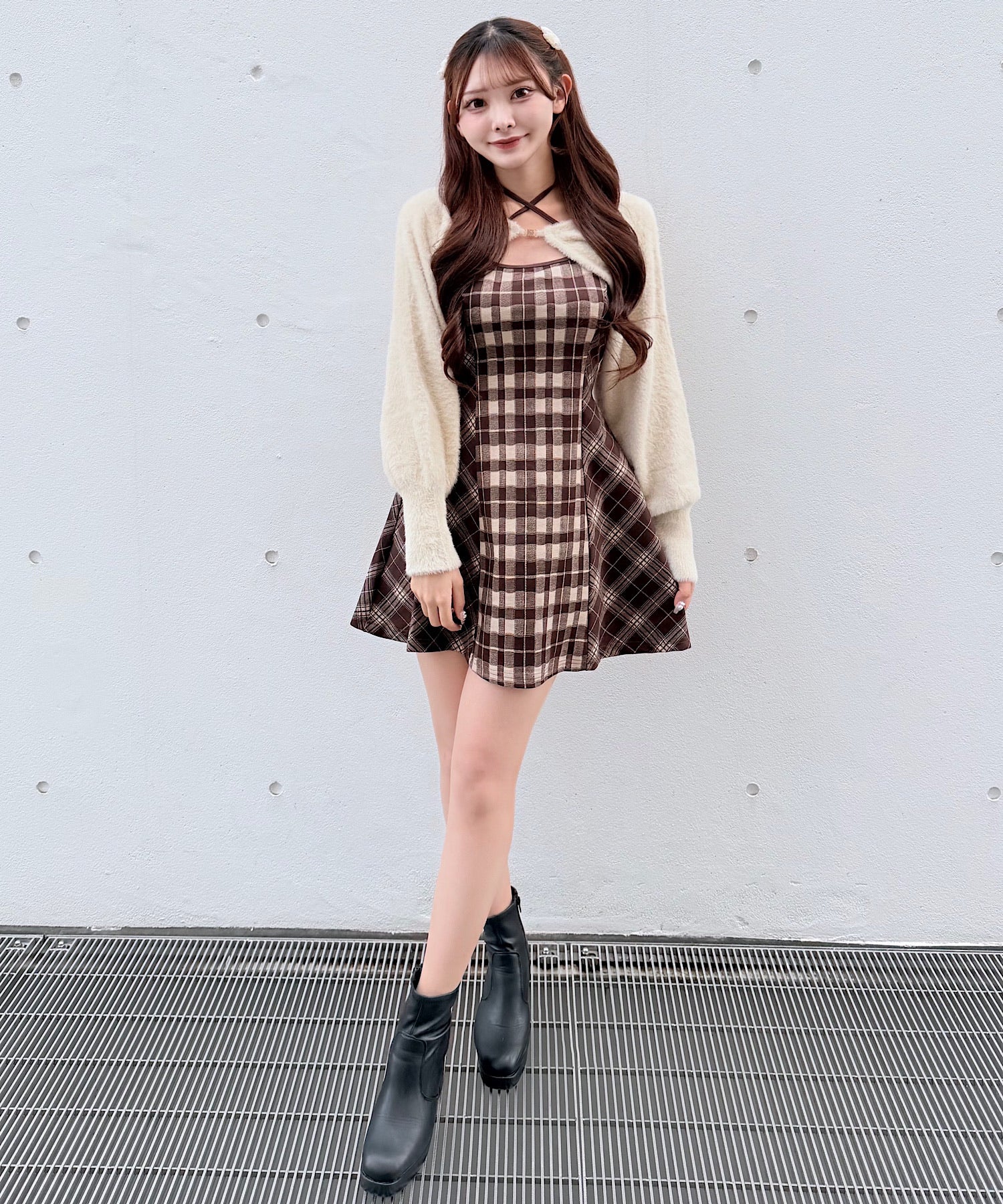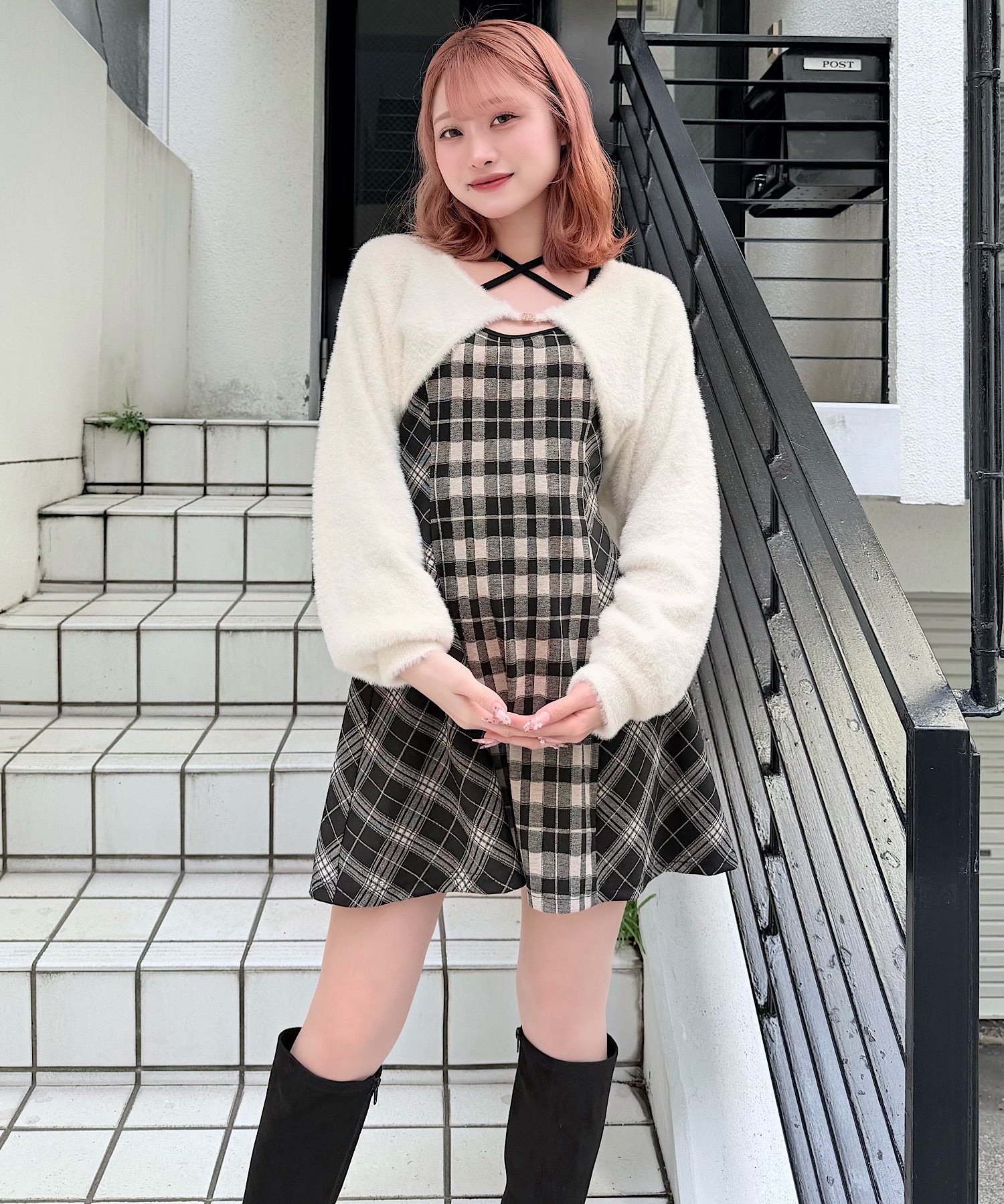 【予約商品 12月上旬発送】シャギーボレロミニチェックワンピース