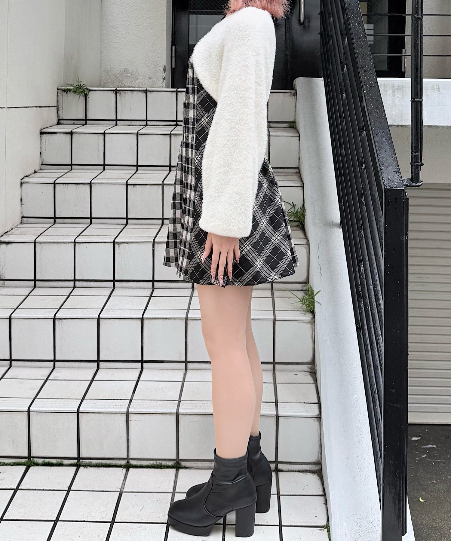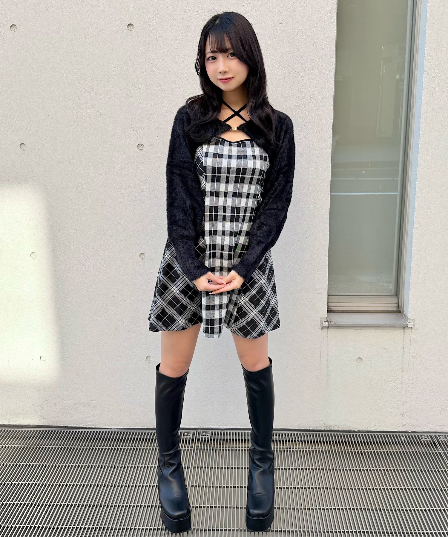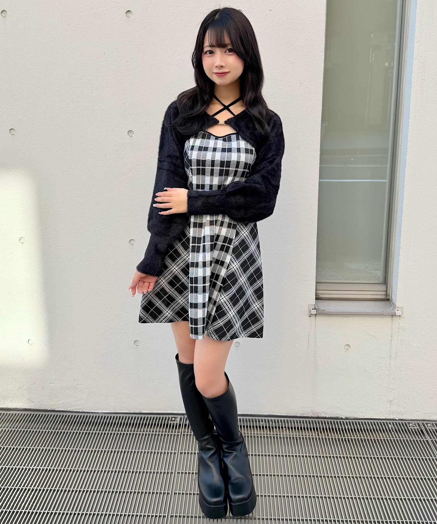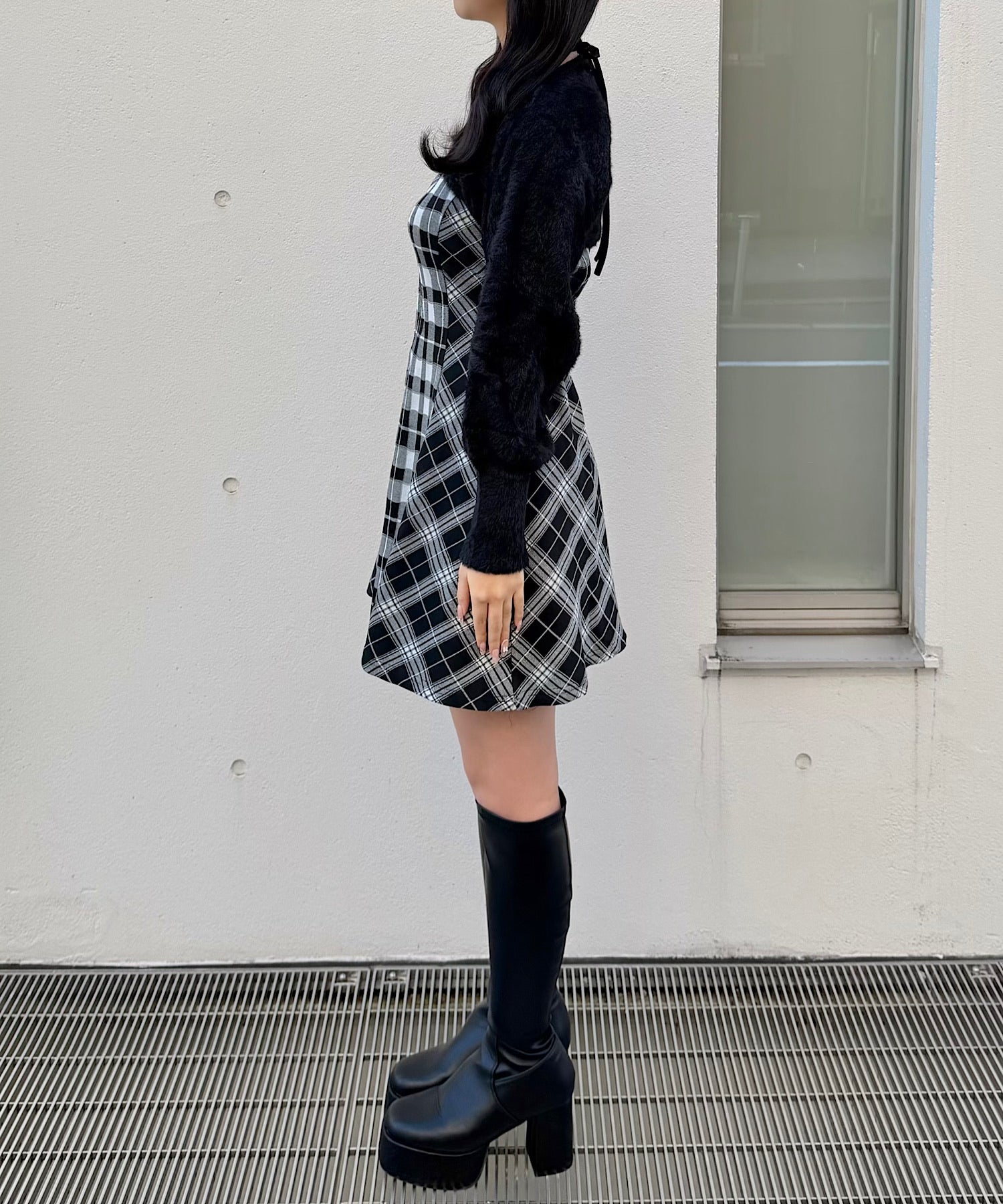 【予約商品 12月上旬発送】シャギーボレロミニチェックワンピース