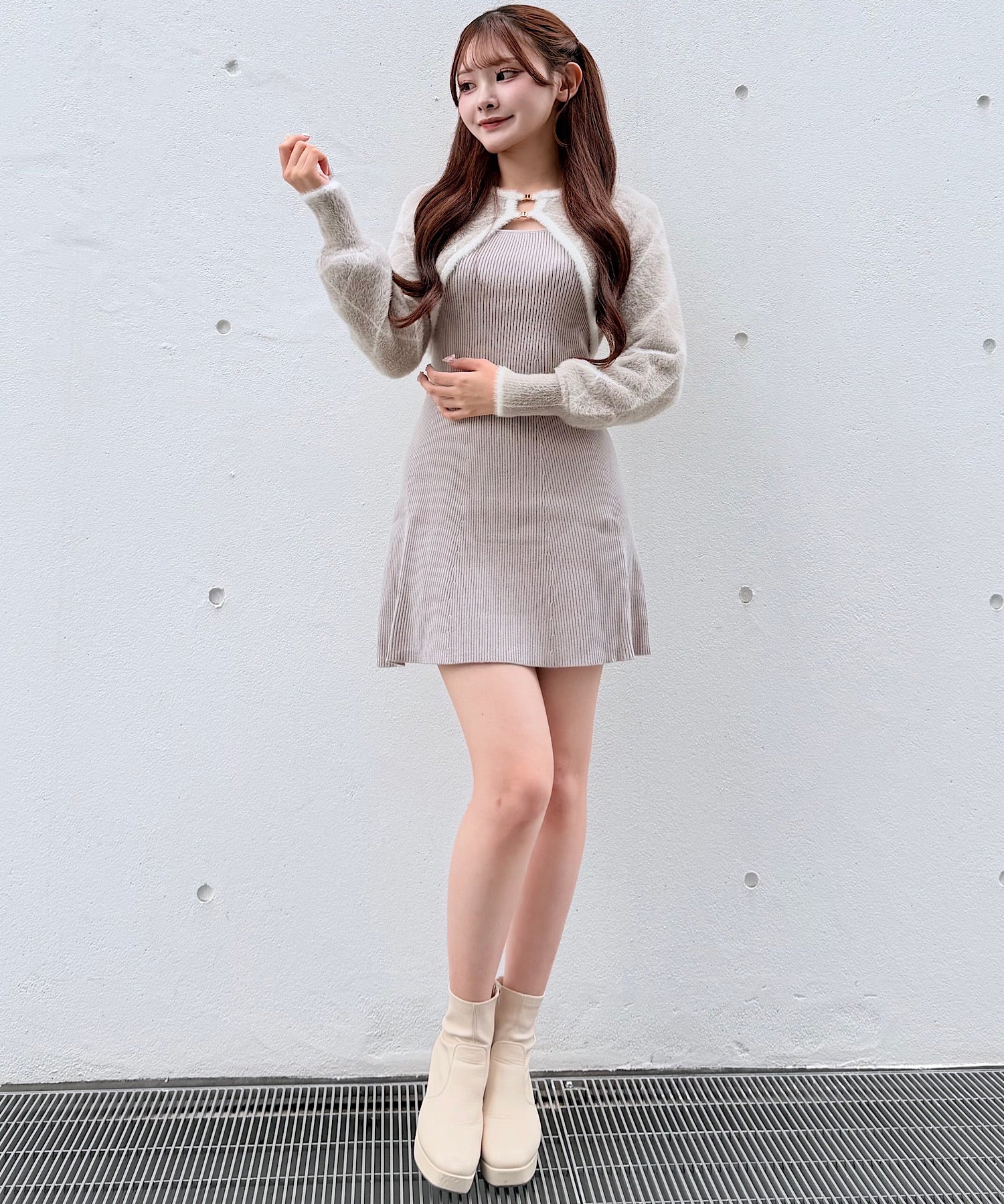 ・ワンピースと、ふんわり可愛いシャギーカーディガンがセットになったアイテム🎀