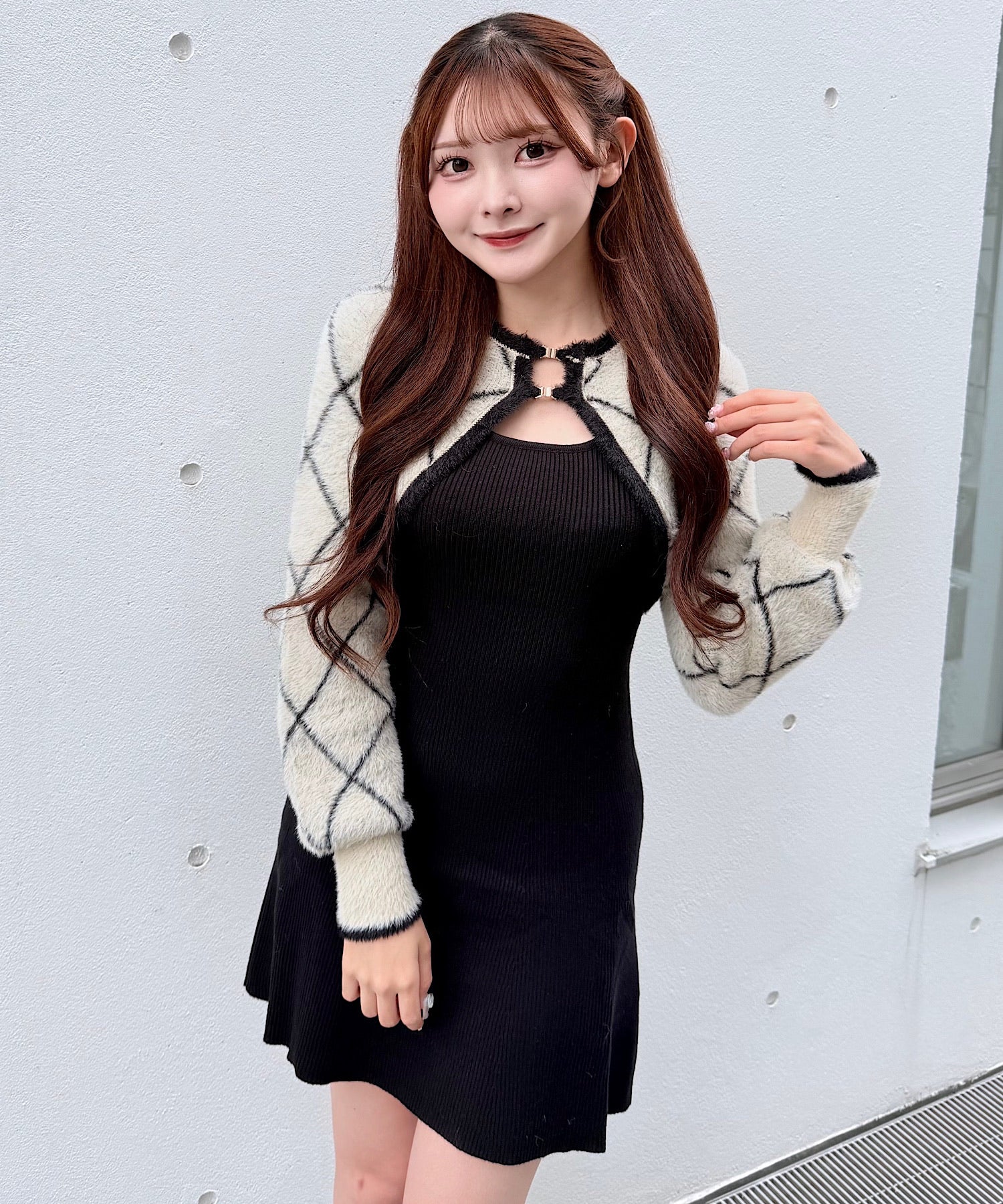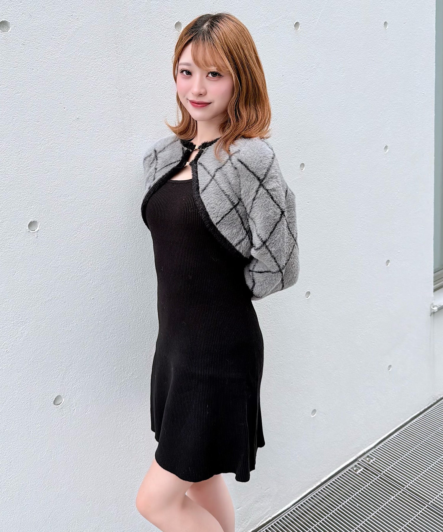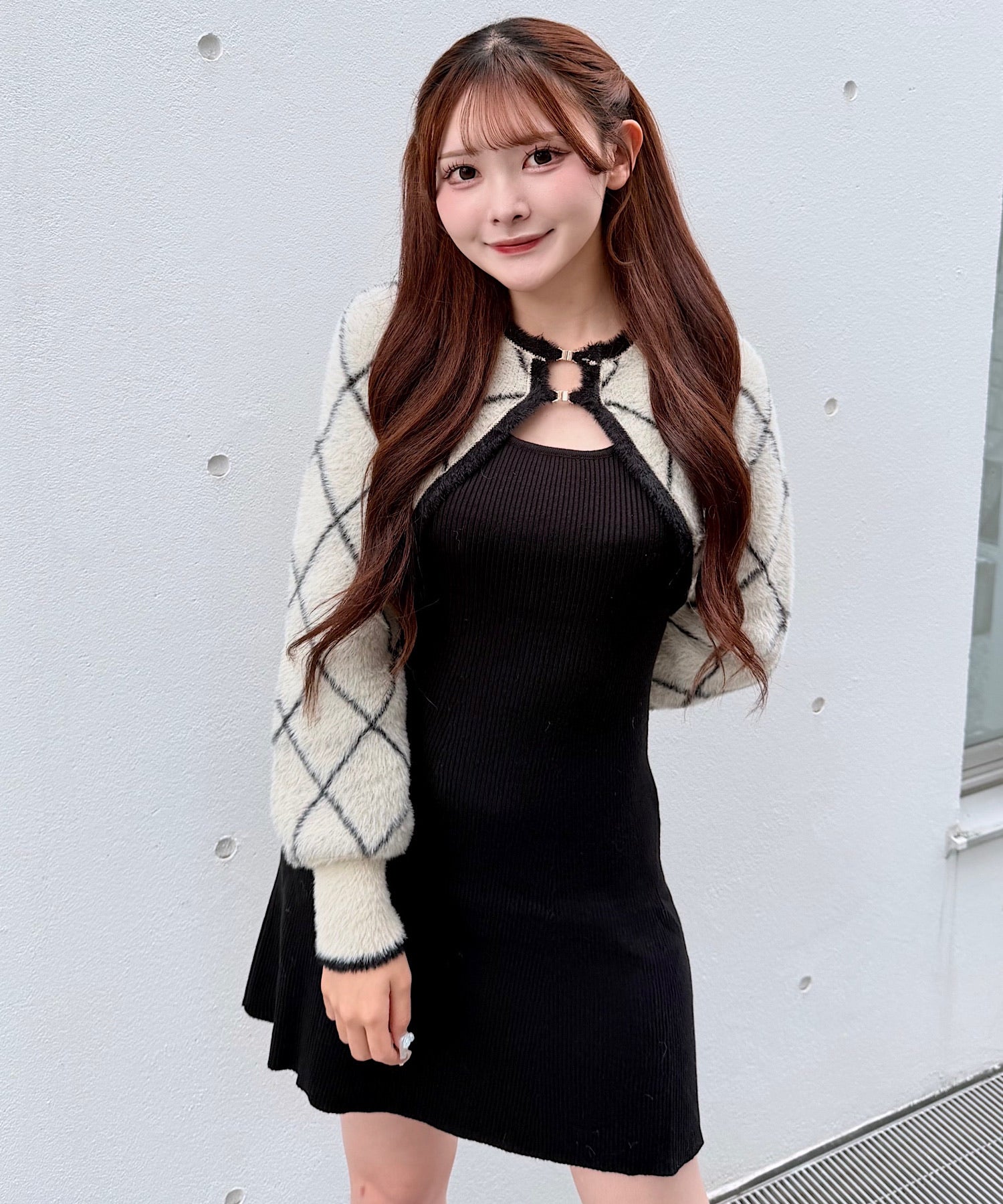 【予約商品11月中旬発送】ダイヤ柄シャギーボレロニットワンピース