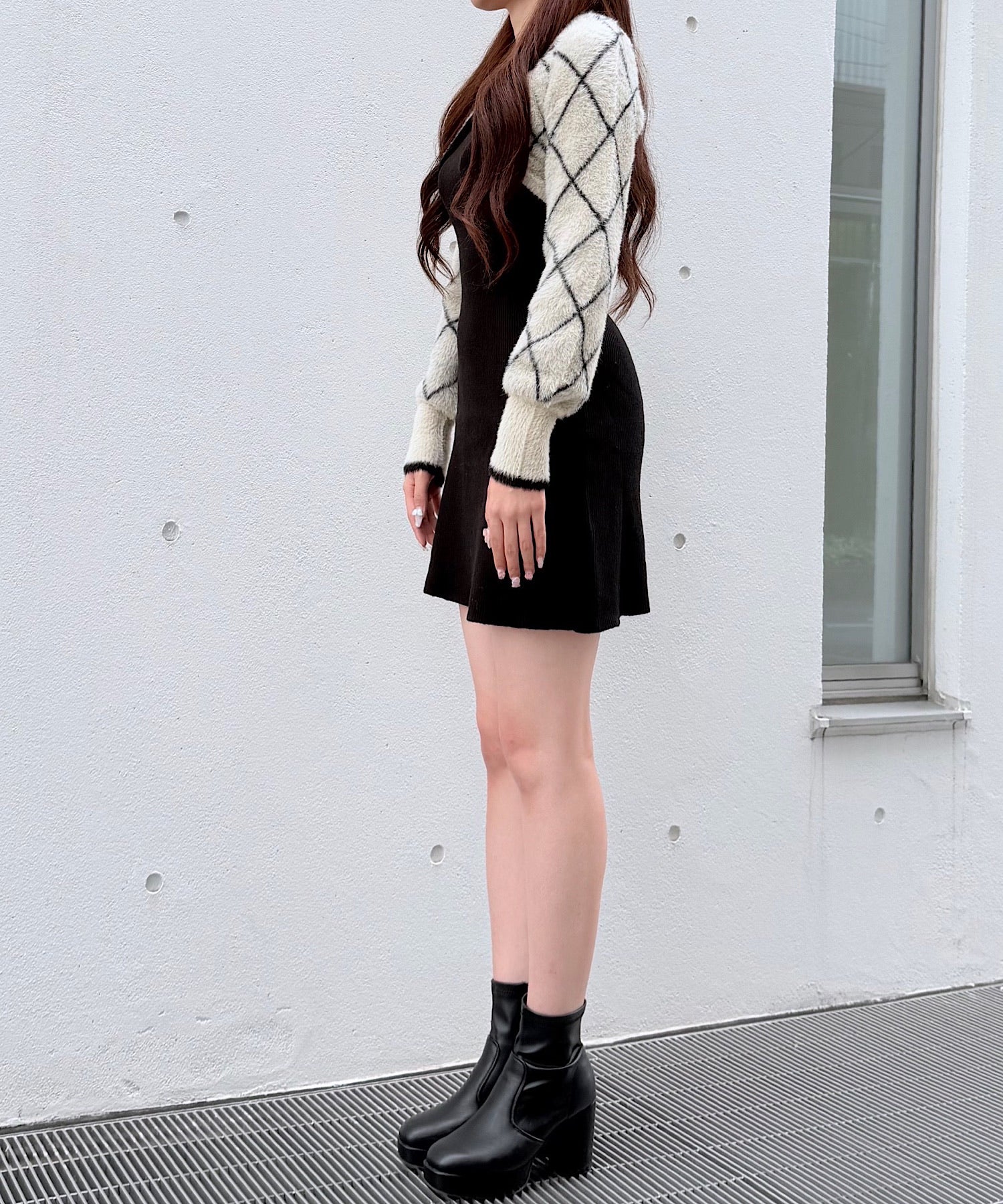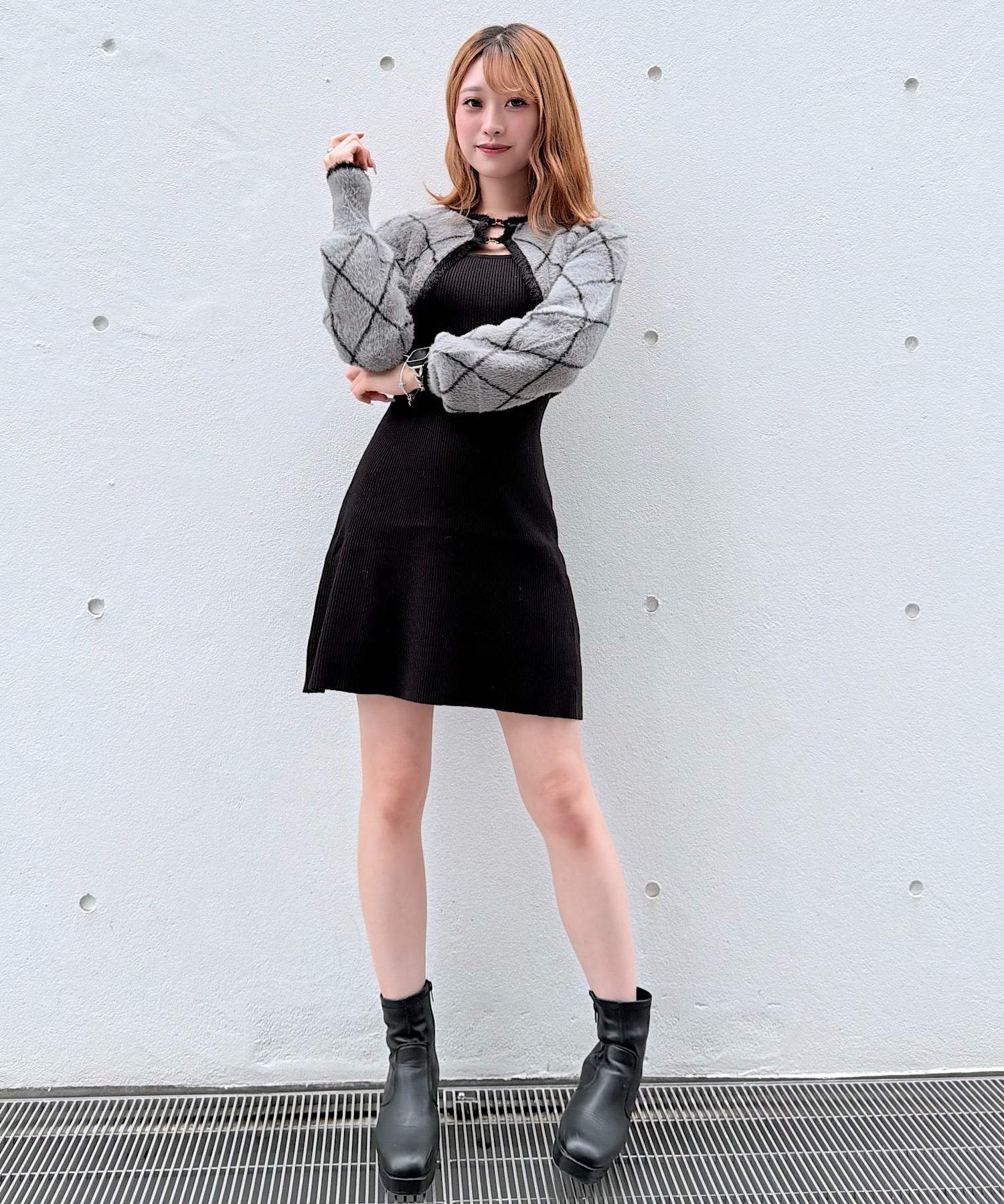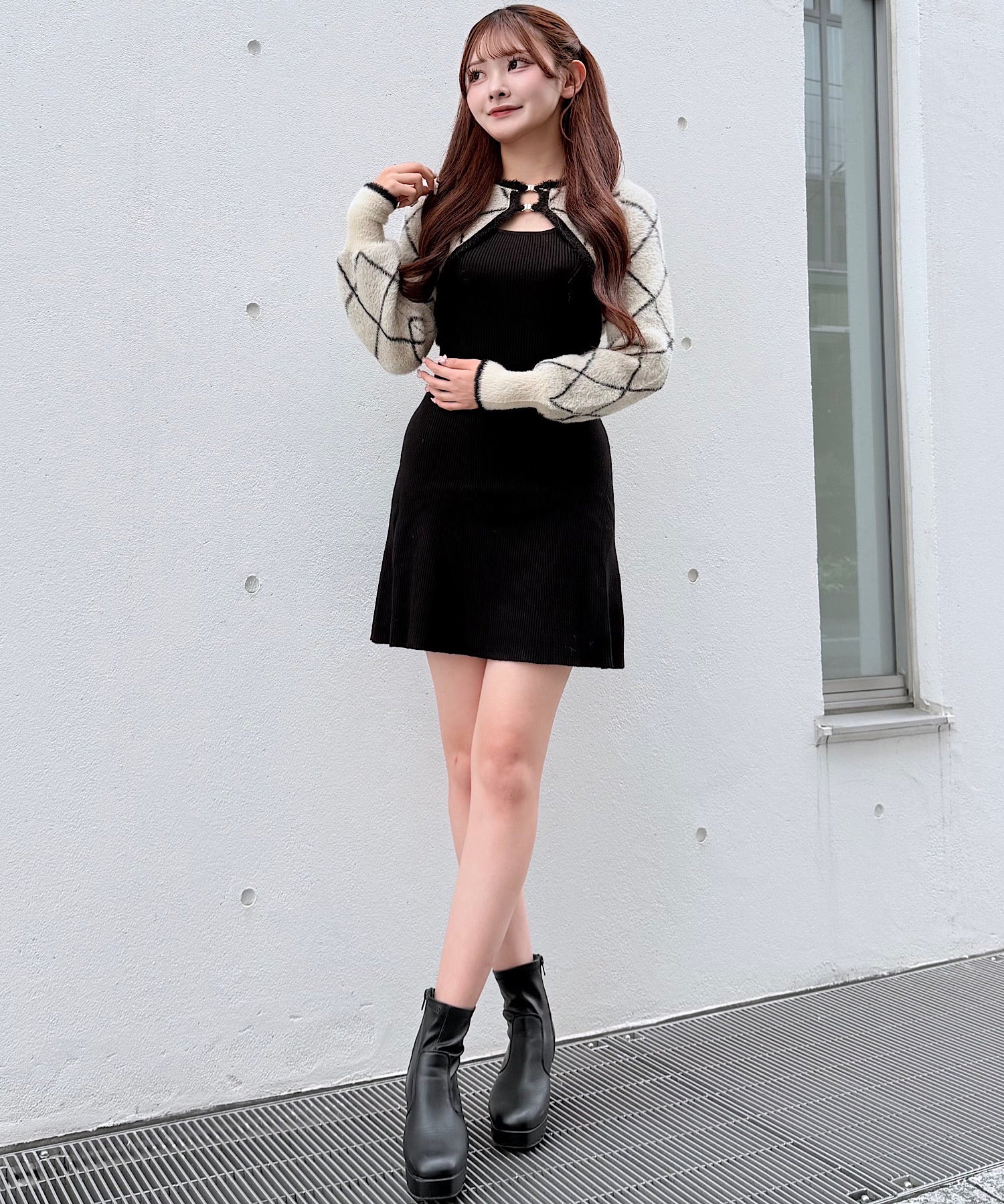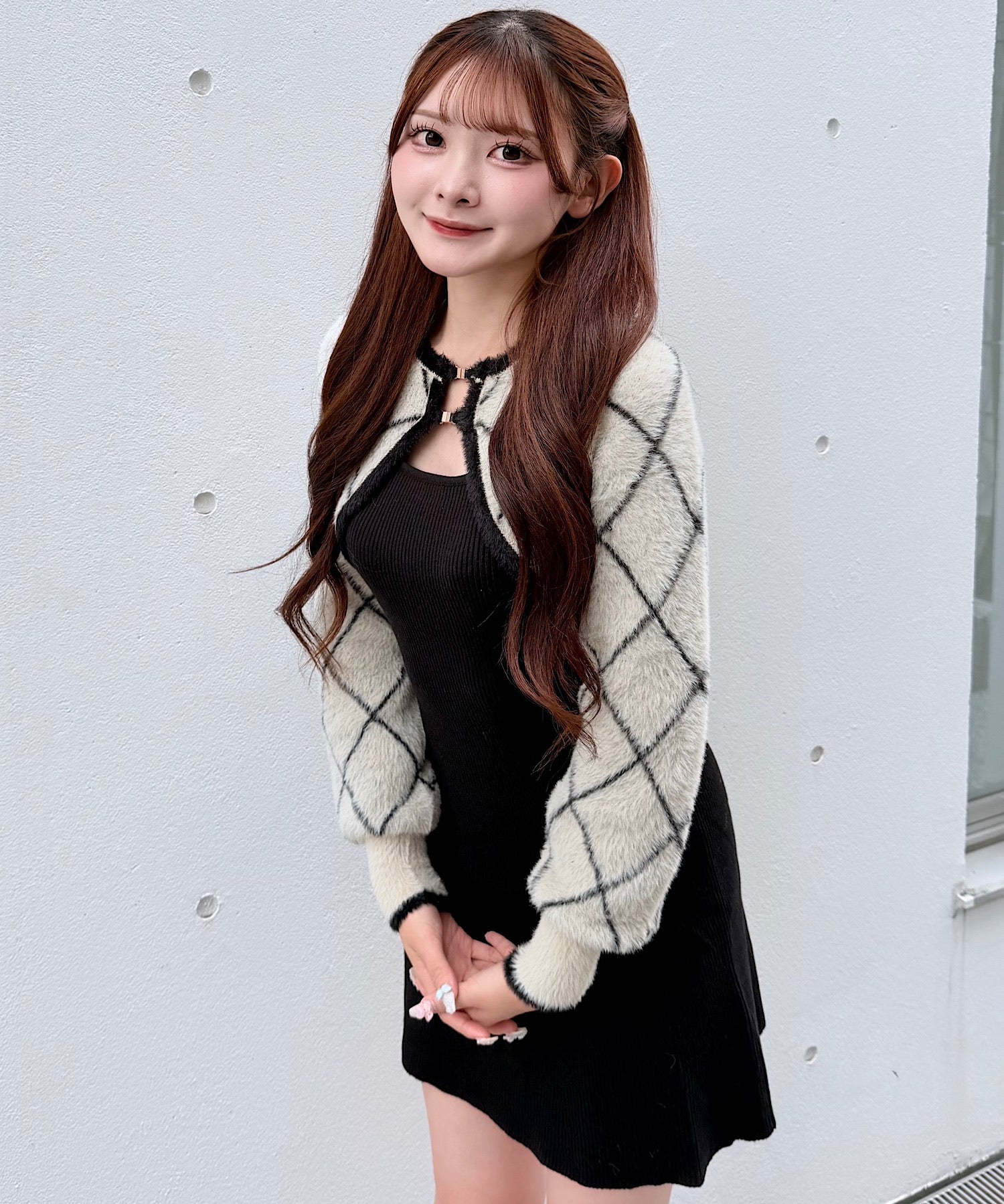 【予約商品11月中旬発送】ダイヤ柄シャギーボレロニットワンピース