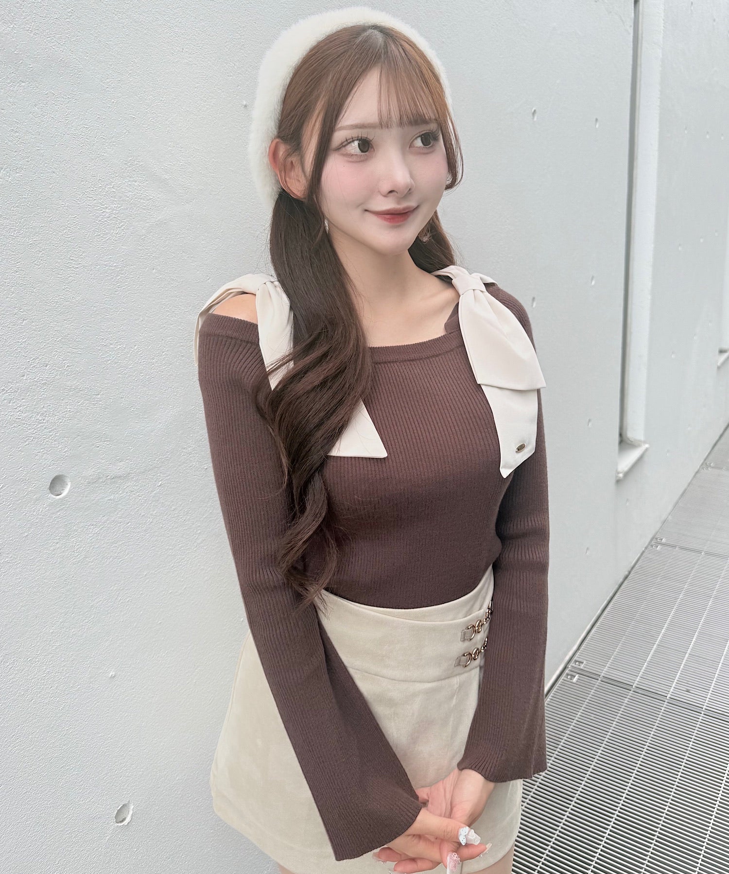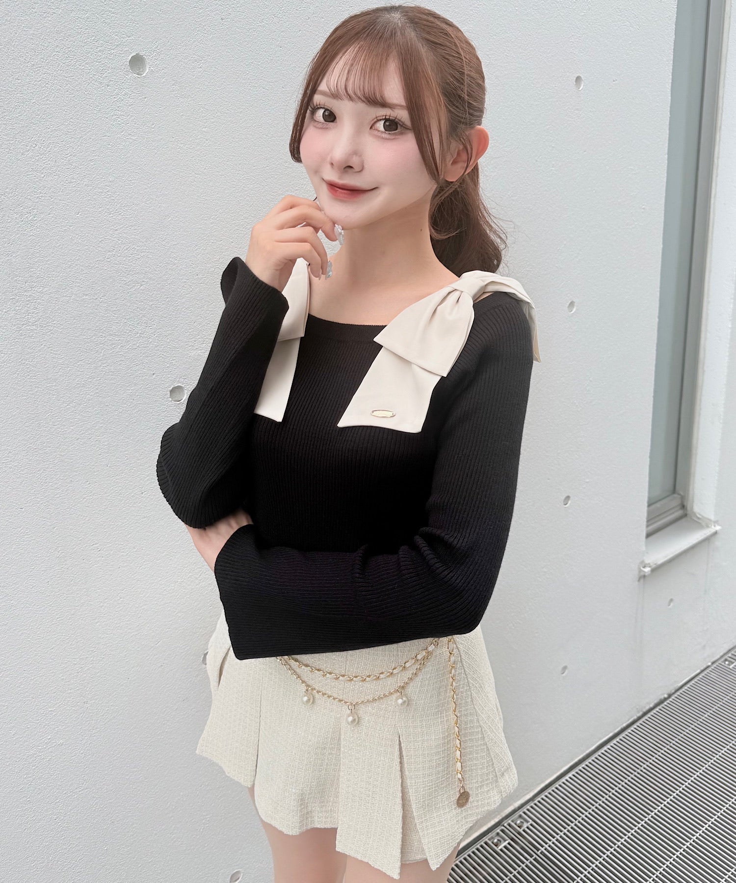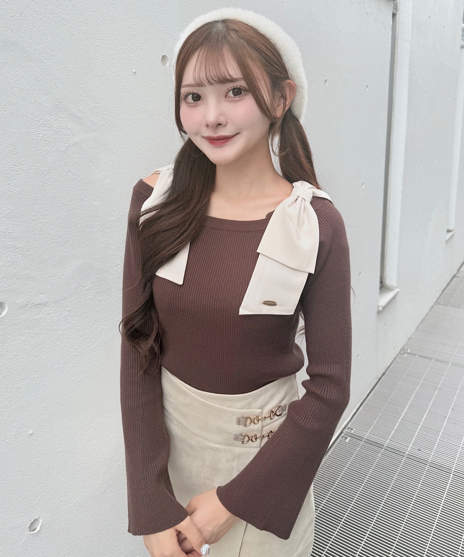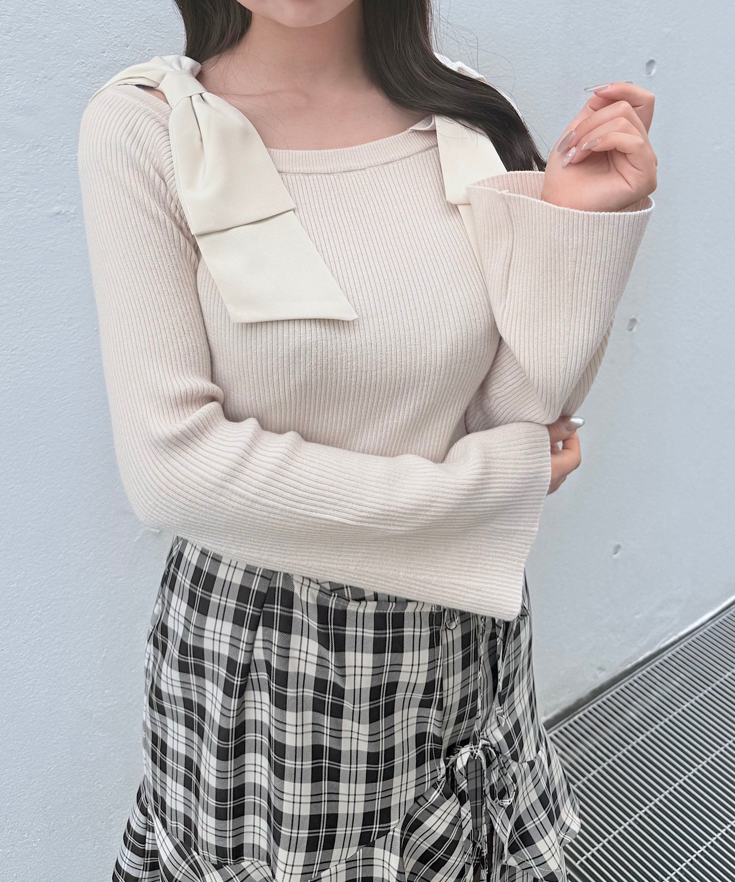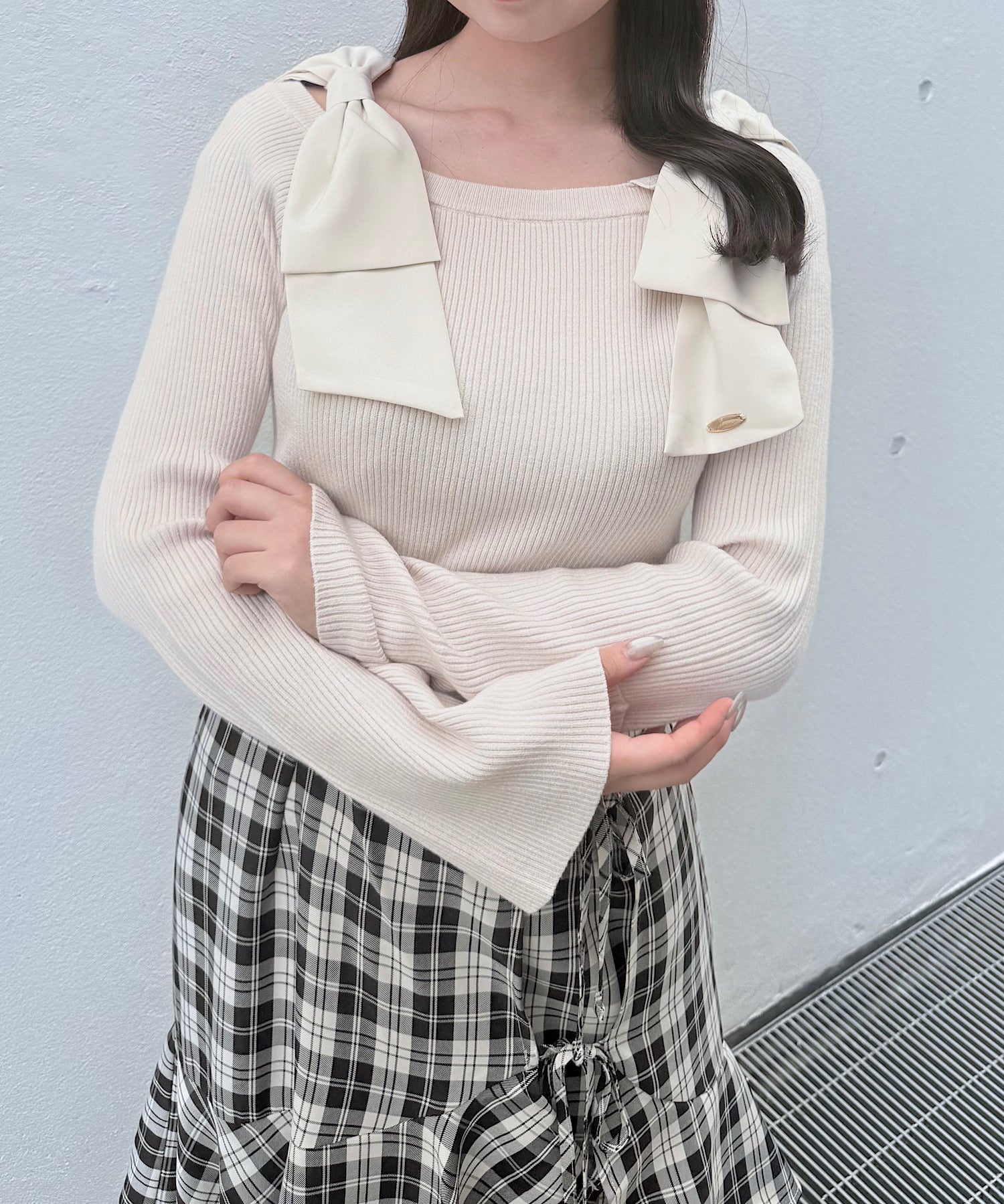 【予約商品10月上旬お届け】ショルダーリボンニット