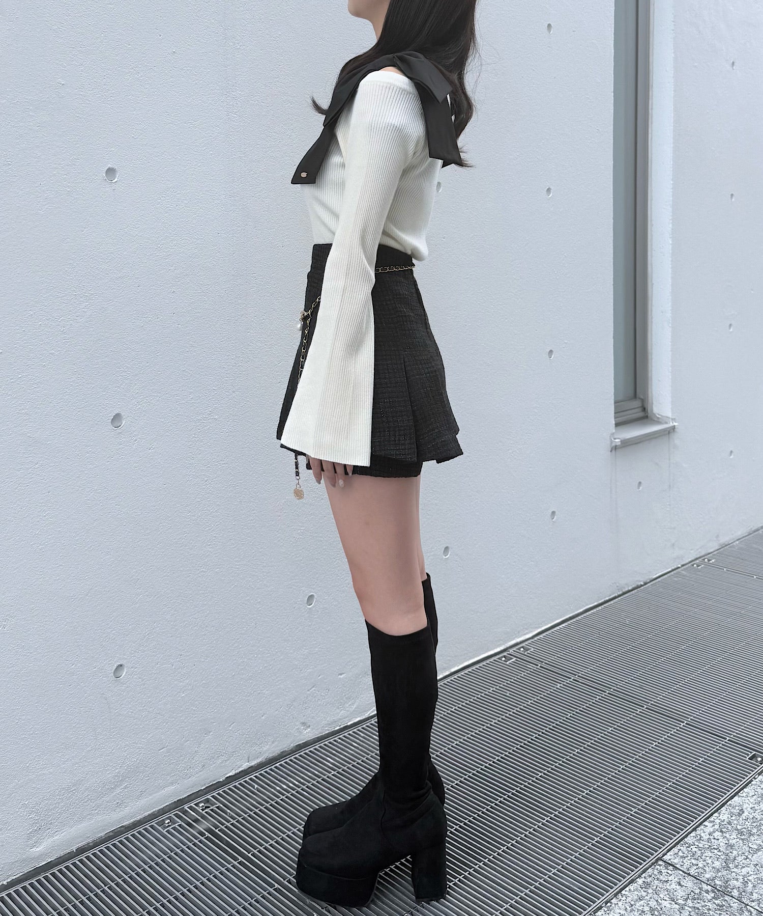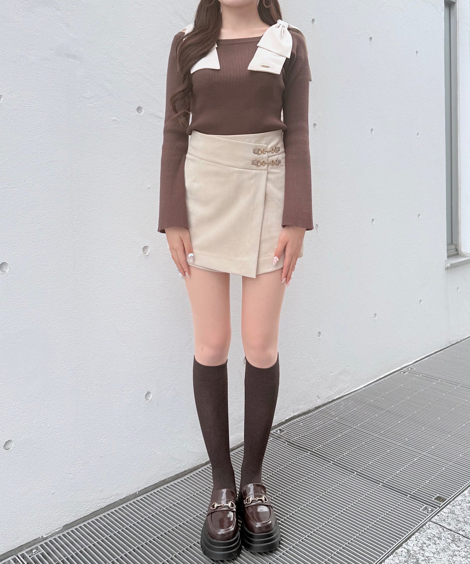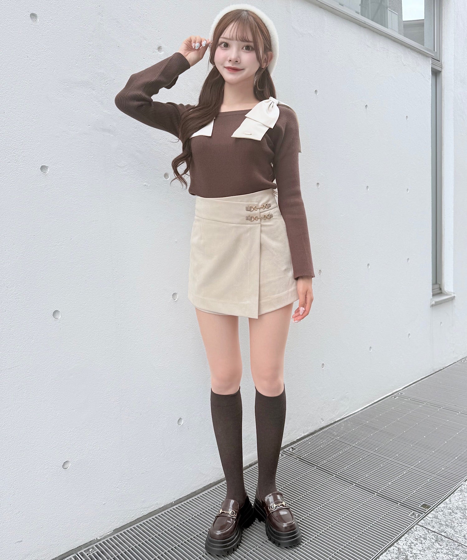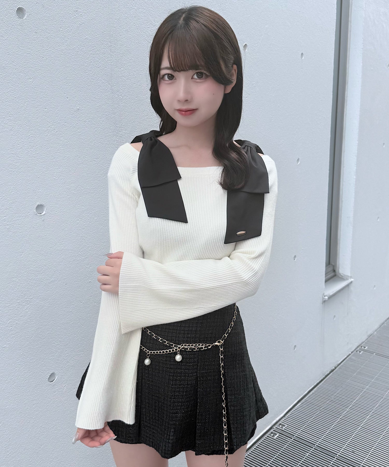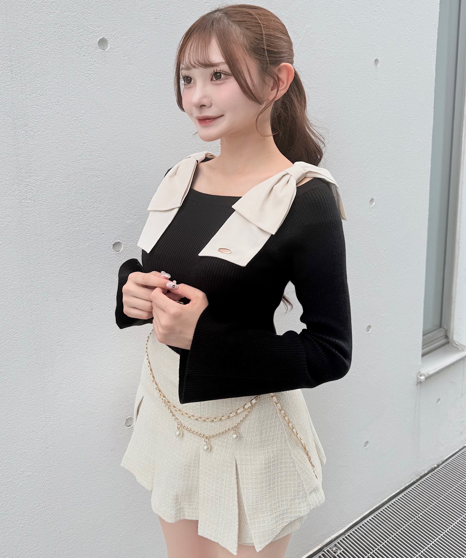 【予約商品10月上旬お届け】ショルダーリボンニット