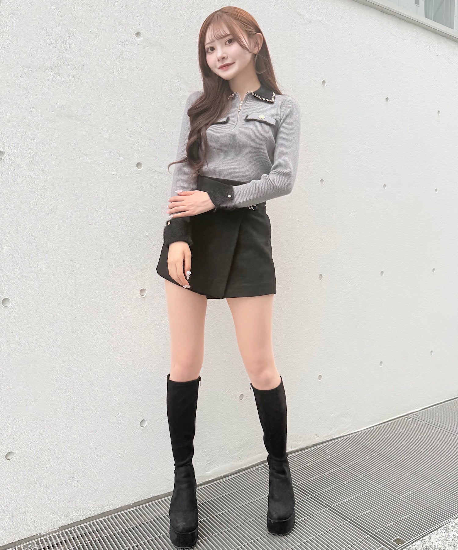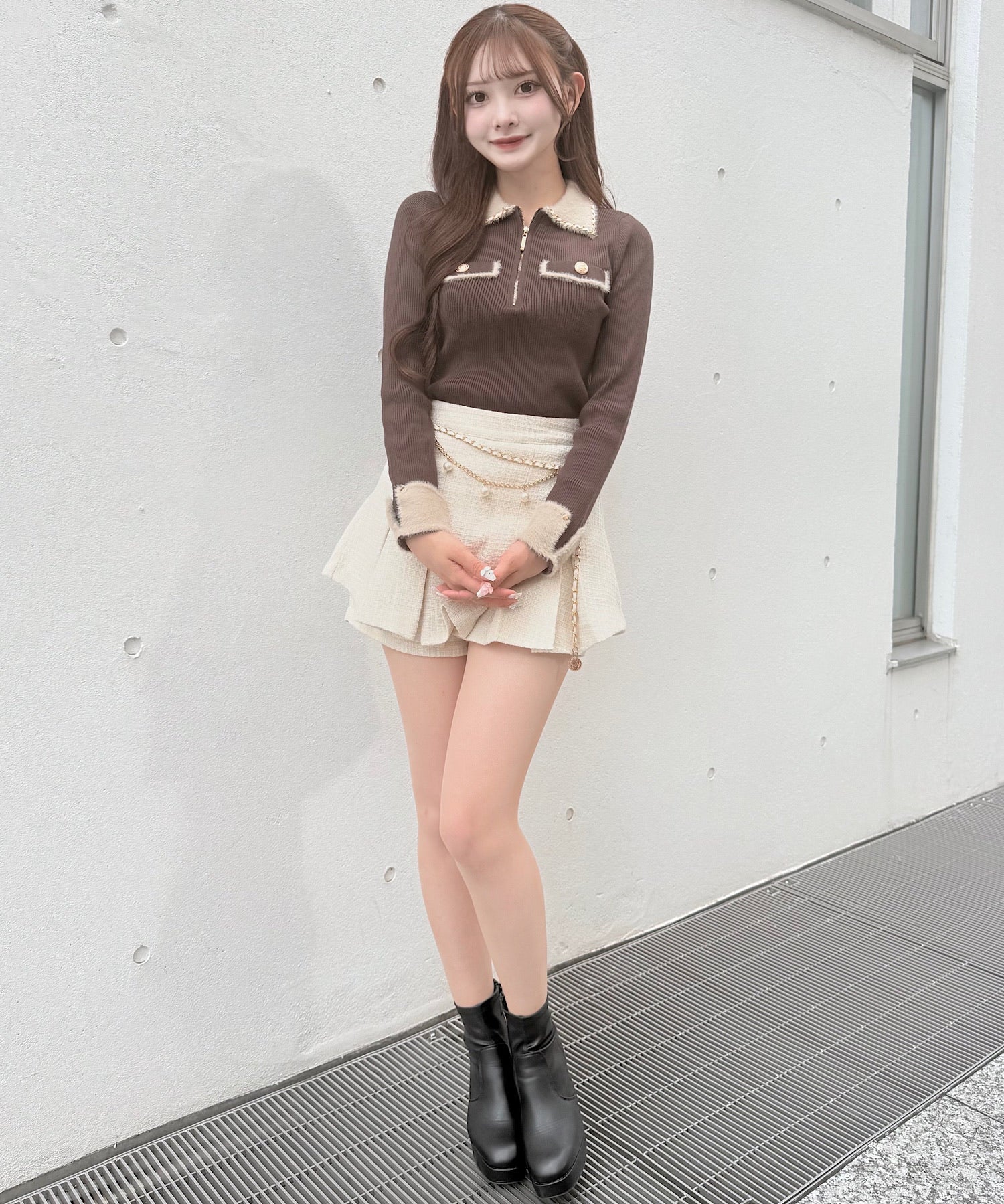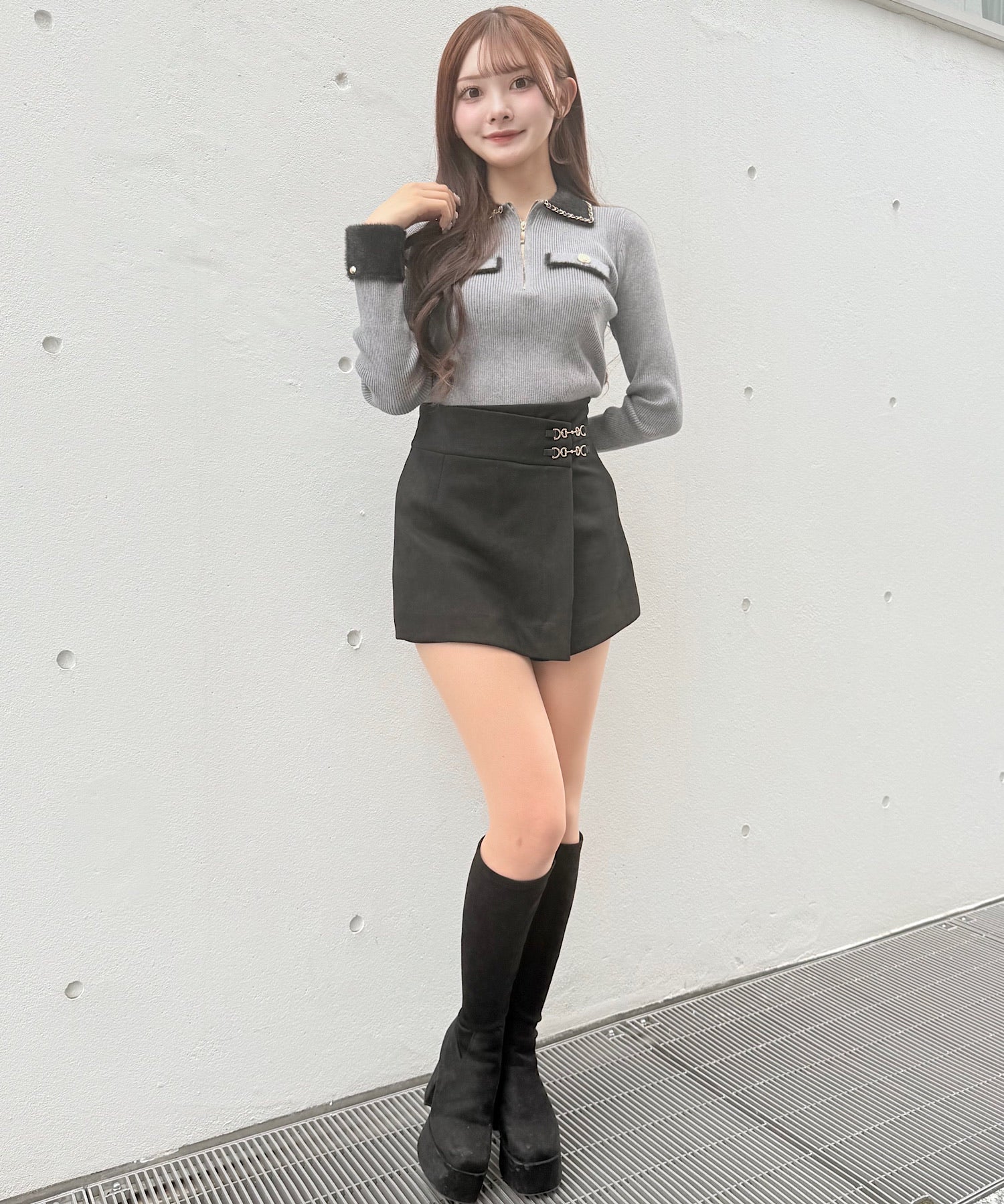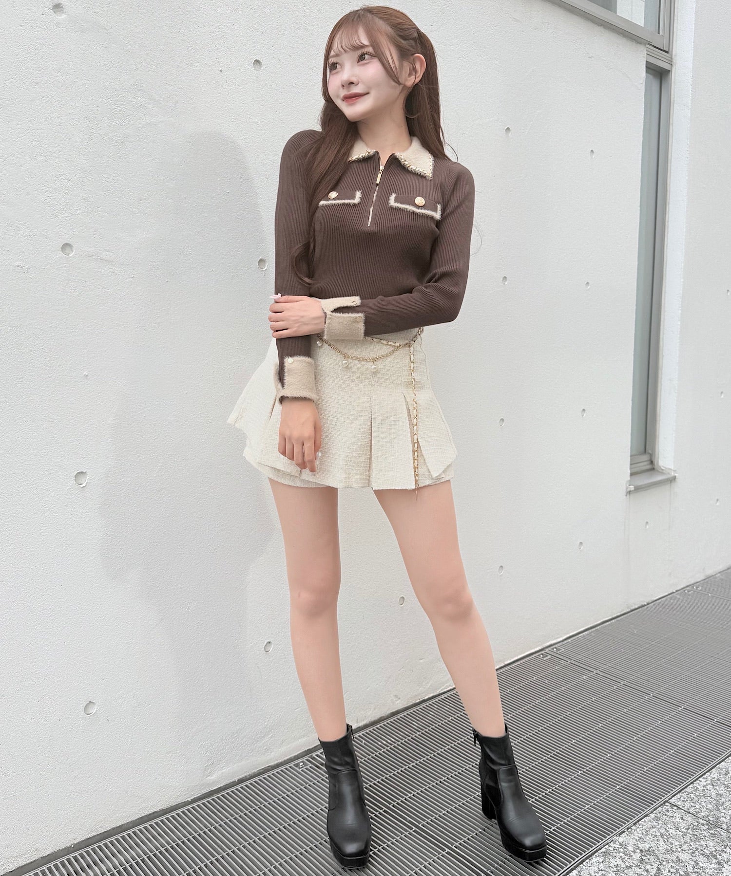 ・ハーフジップがちょっぴりカジュアルさを足してくれて、抜け感のあるコーデになります!