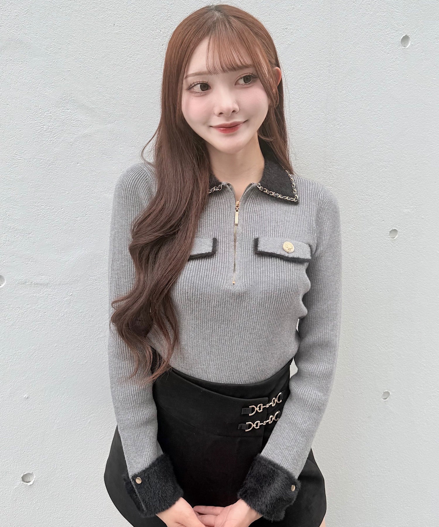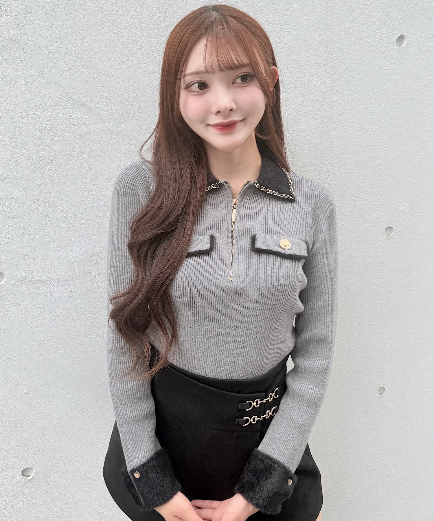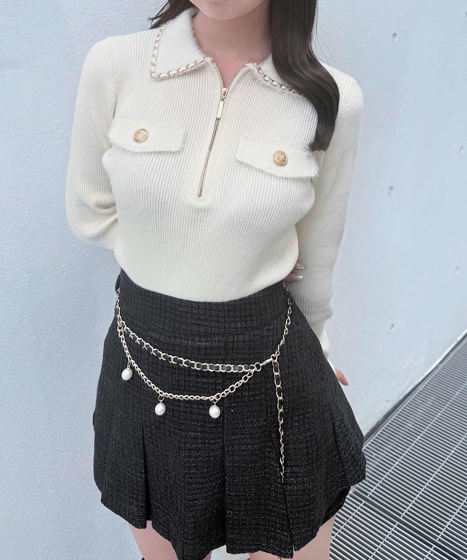 【予約商品10月下旬お届け】チェーンカラーZIPニット