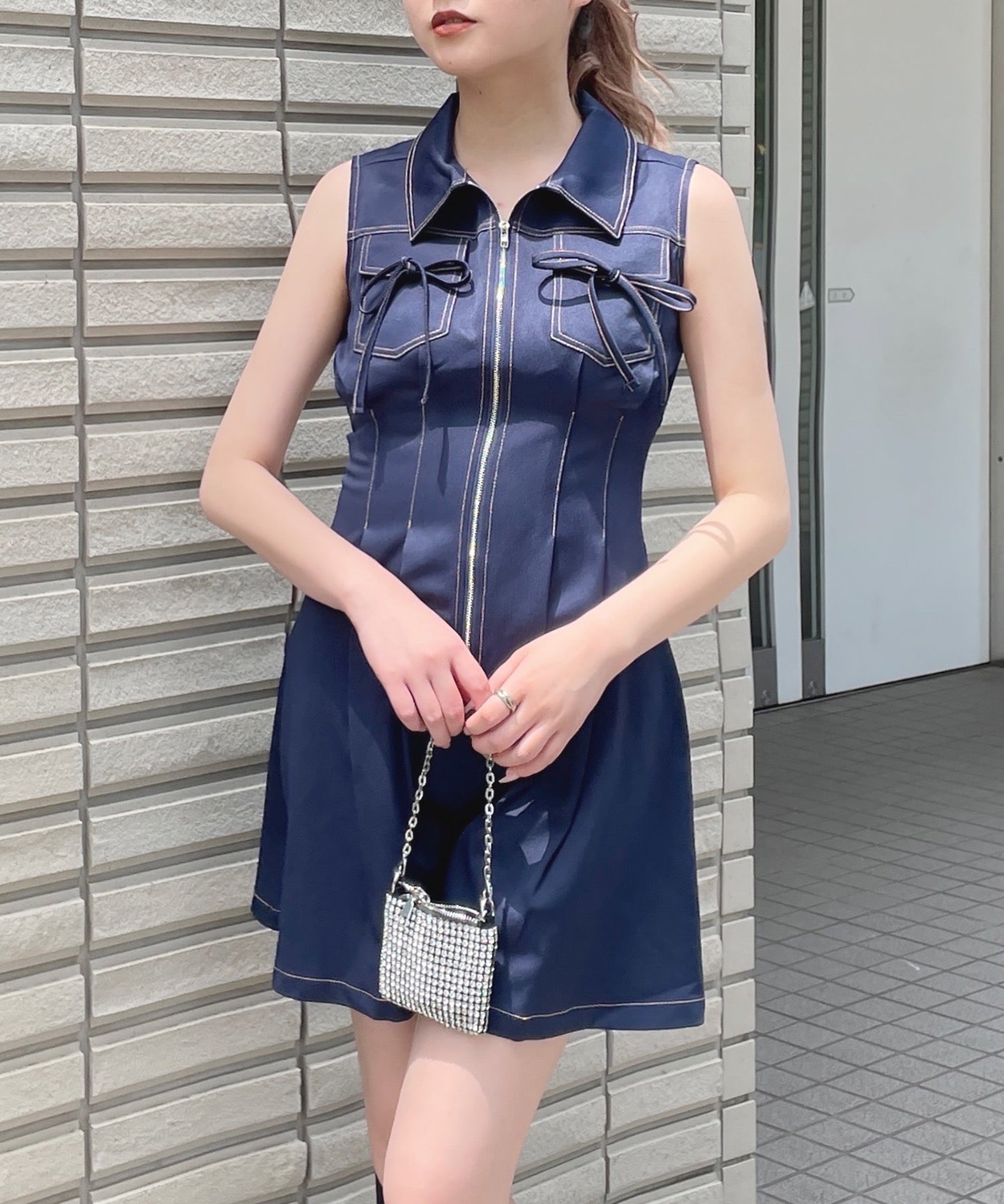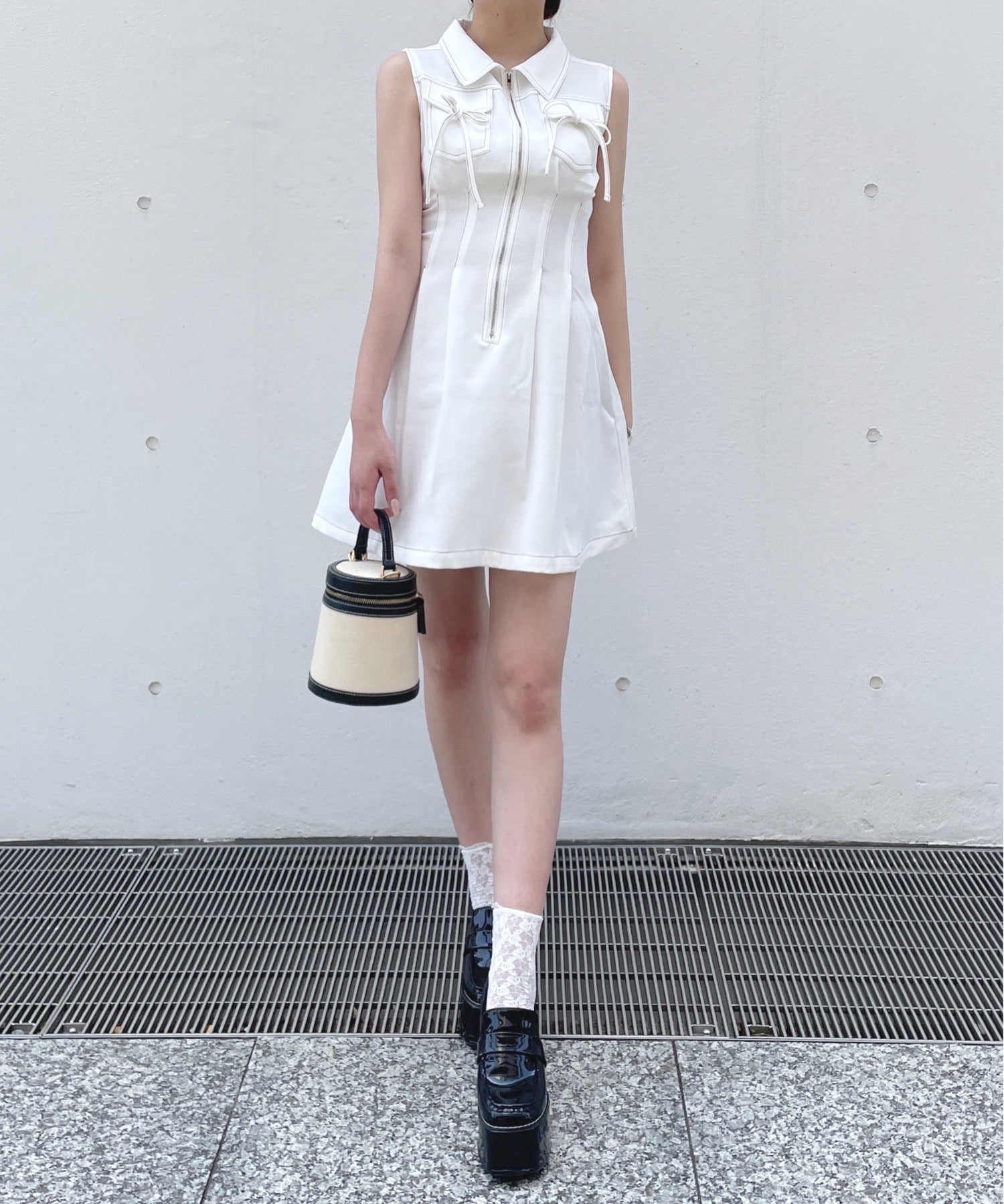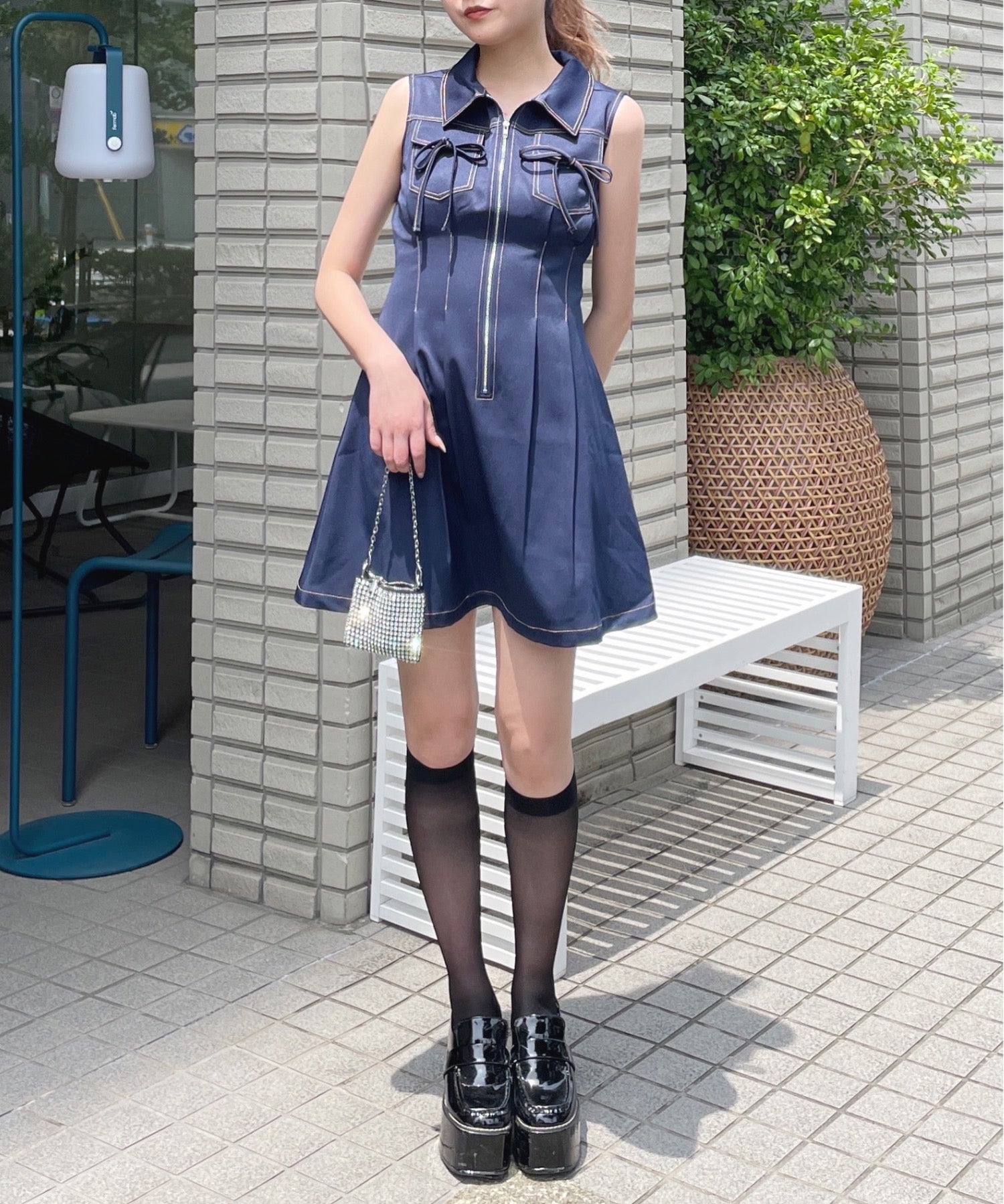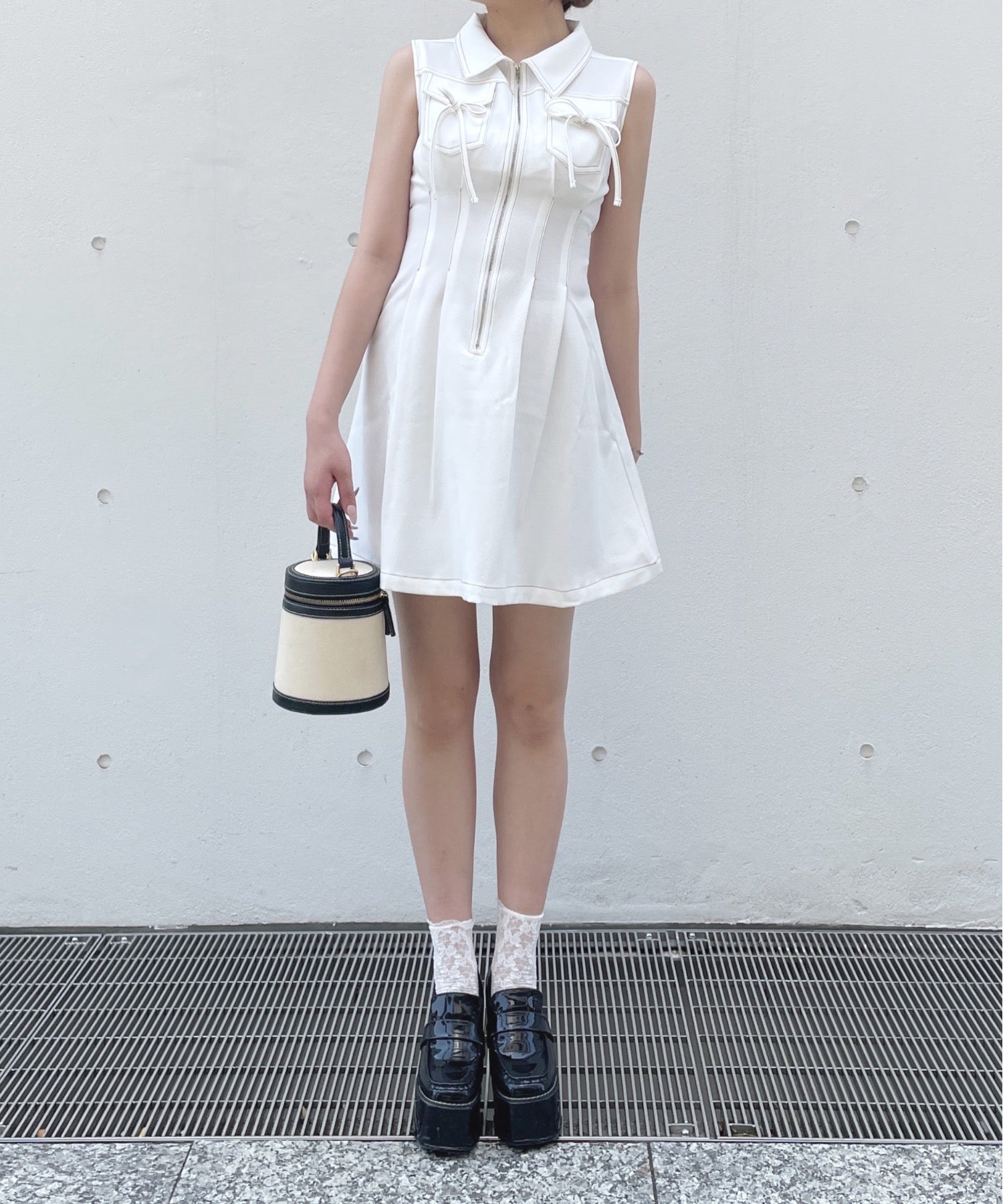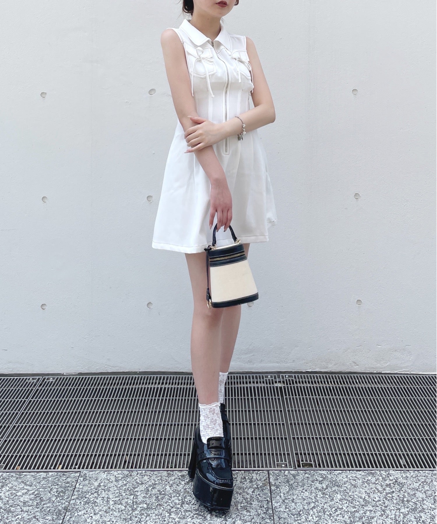 ・ピアス、バングルなどの小物使いで、大人なワンピースとしても活躍します。