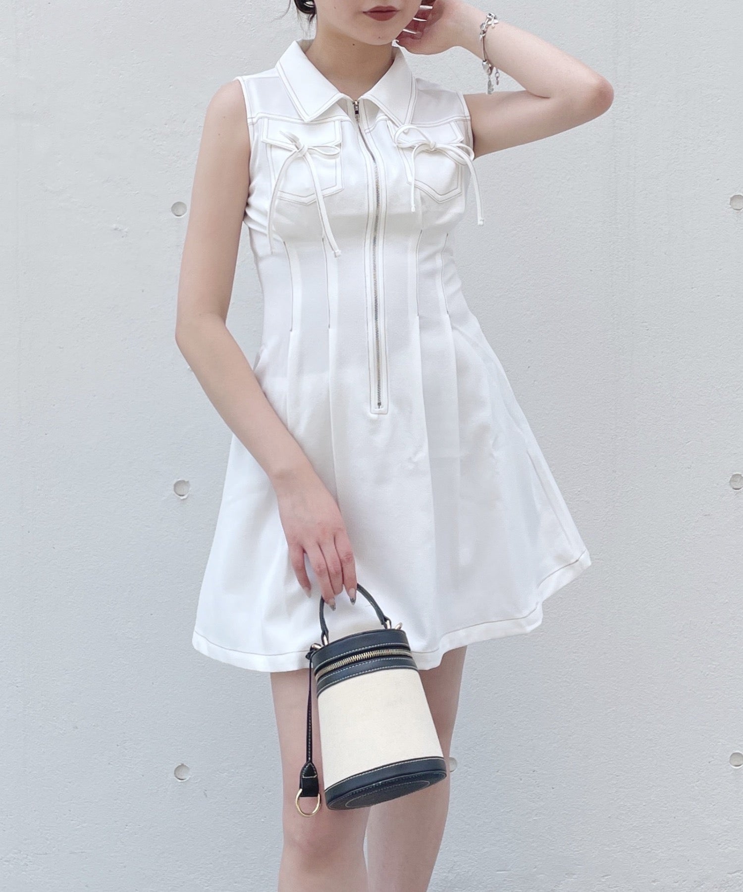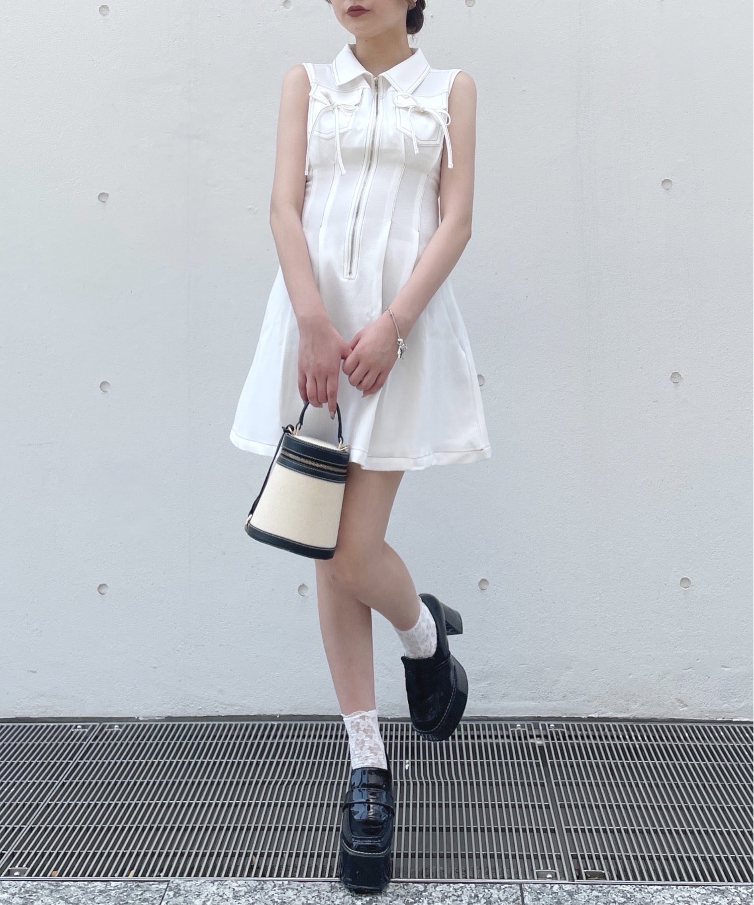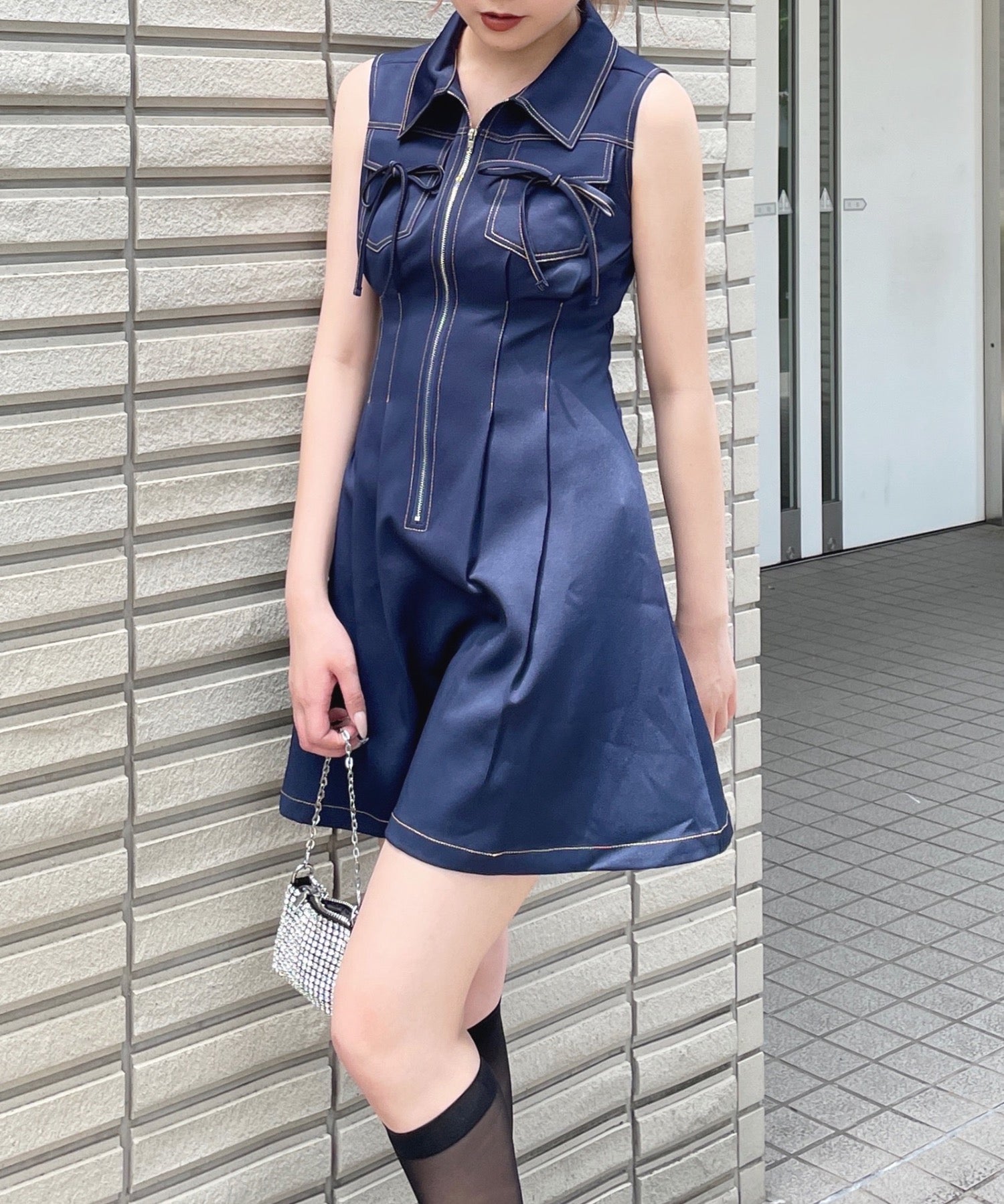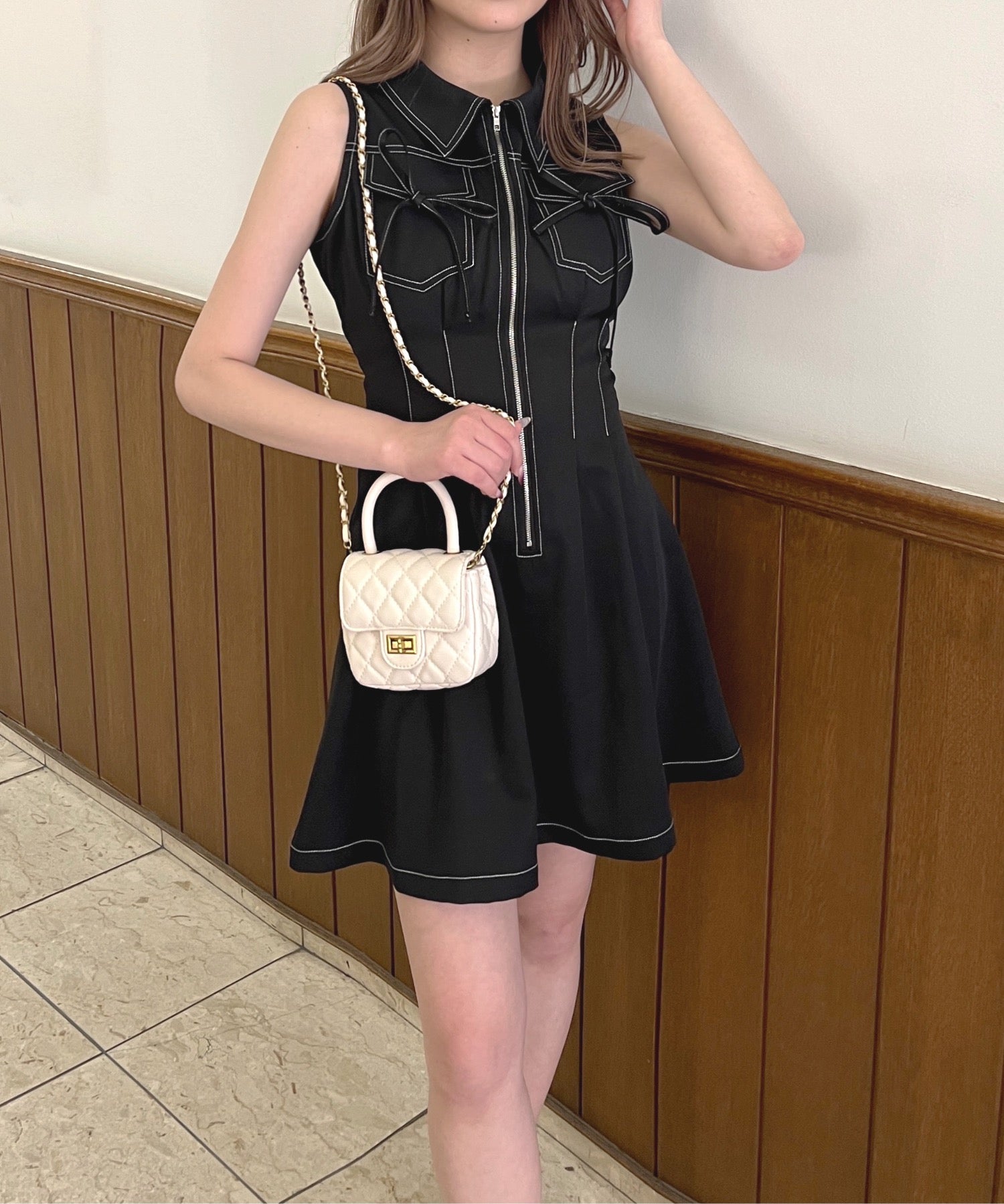 ・ピアス、バングルなどの小物使いで、大人なワンピースとしても活躍します。