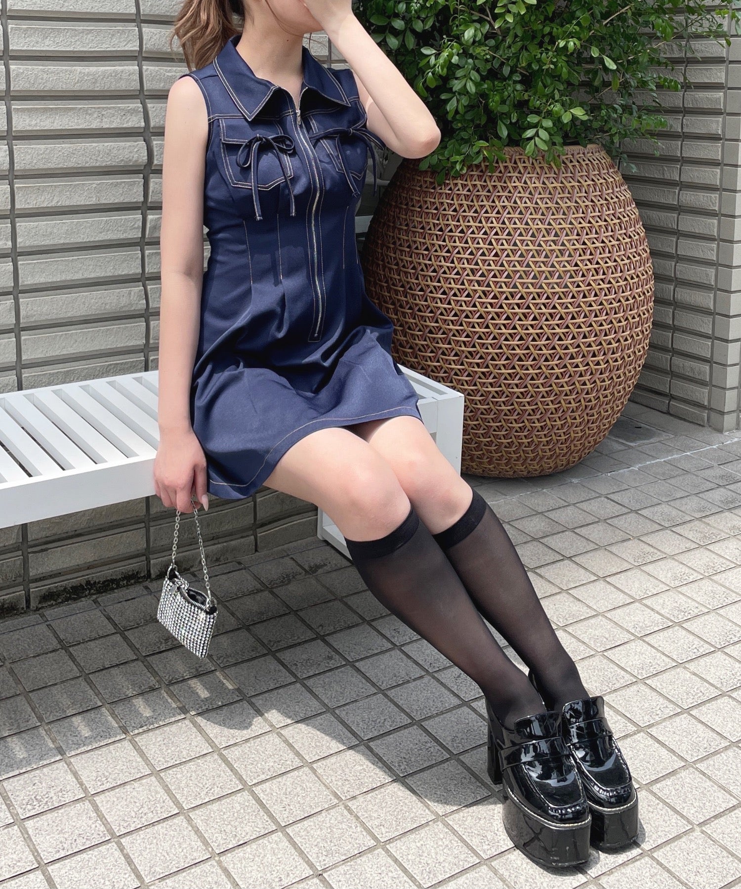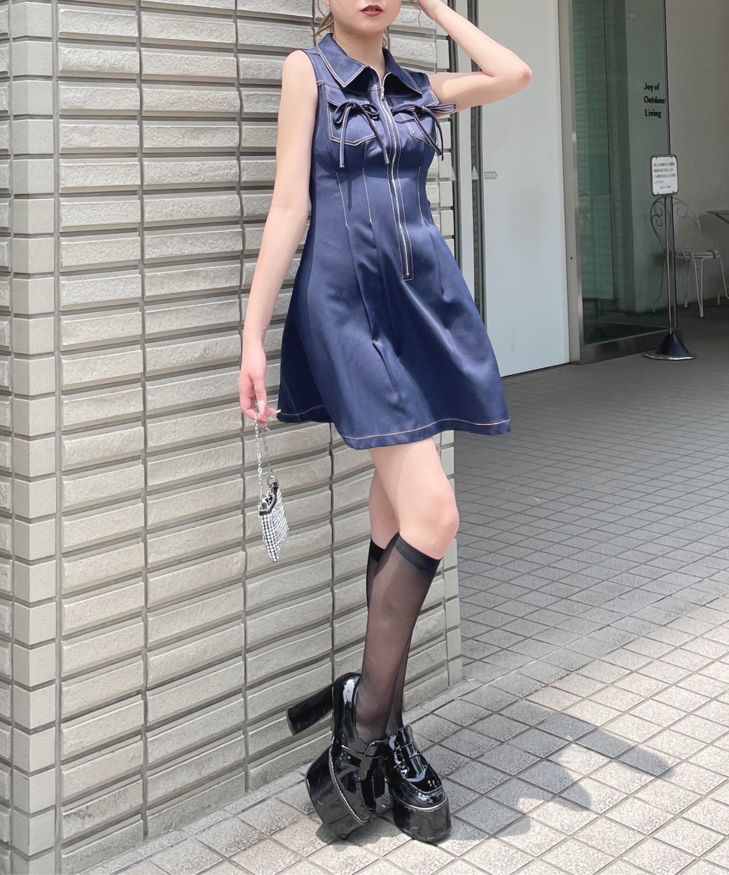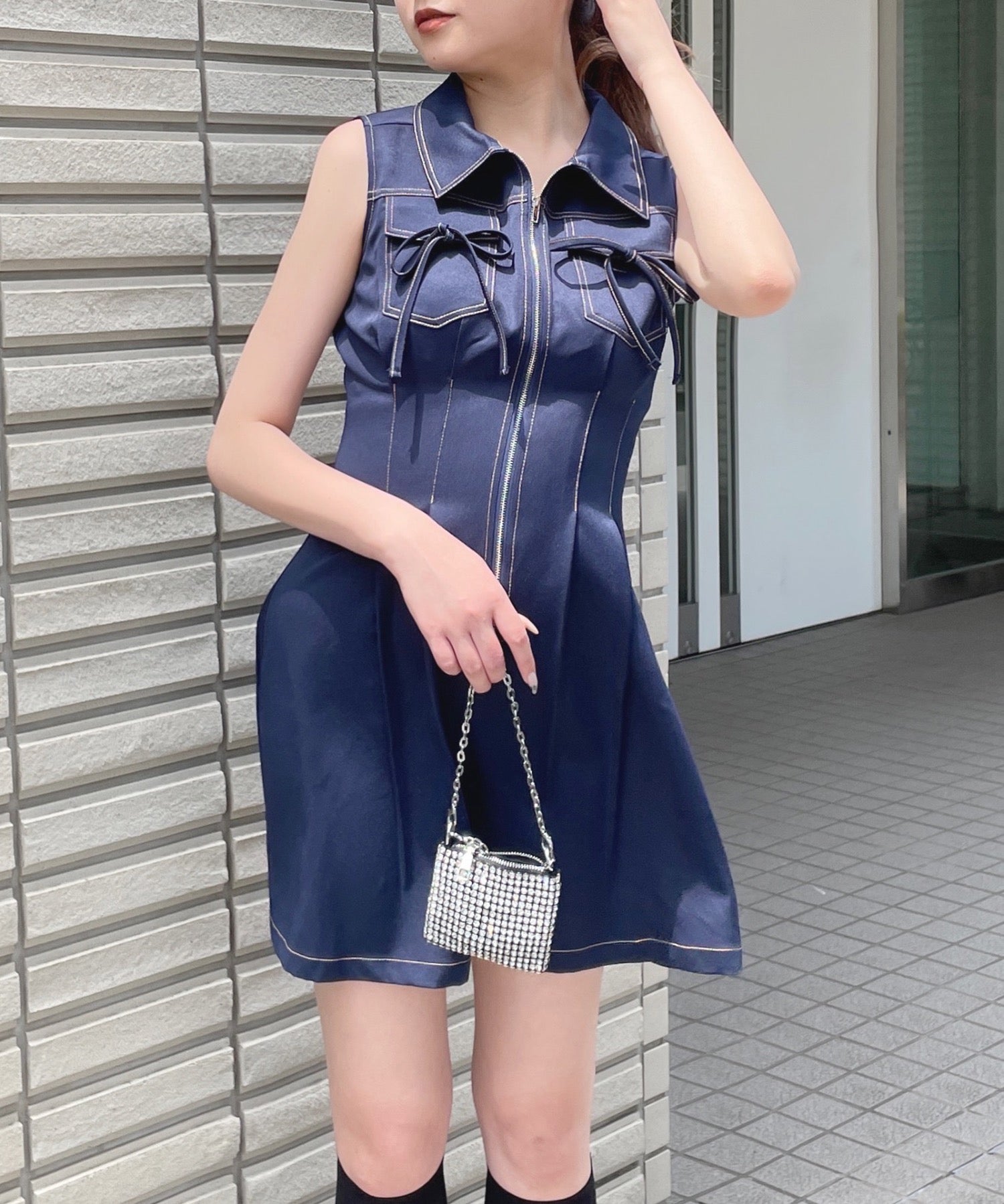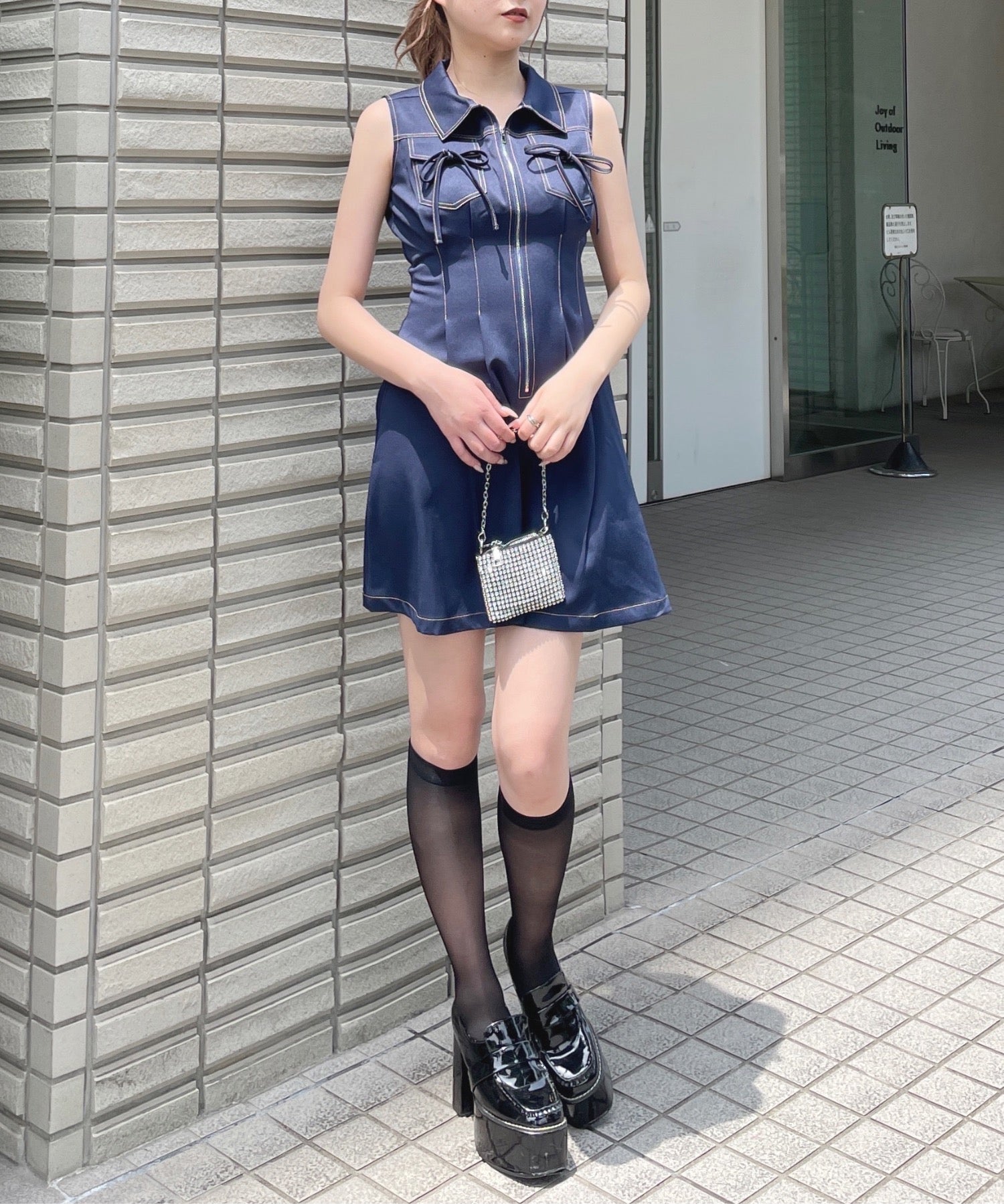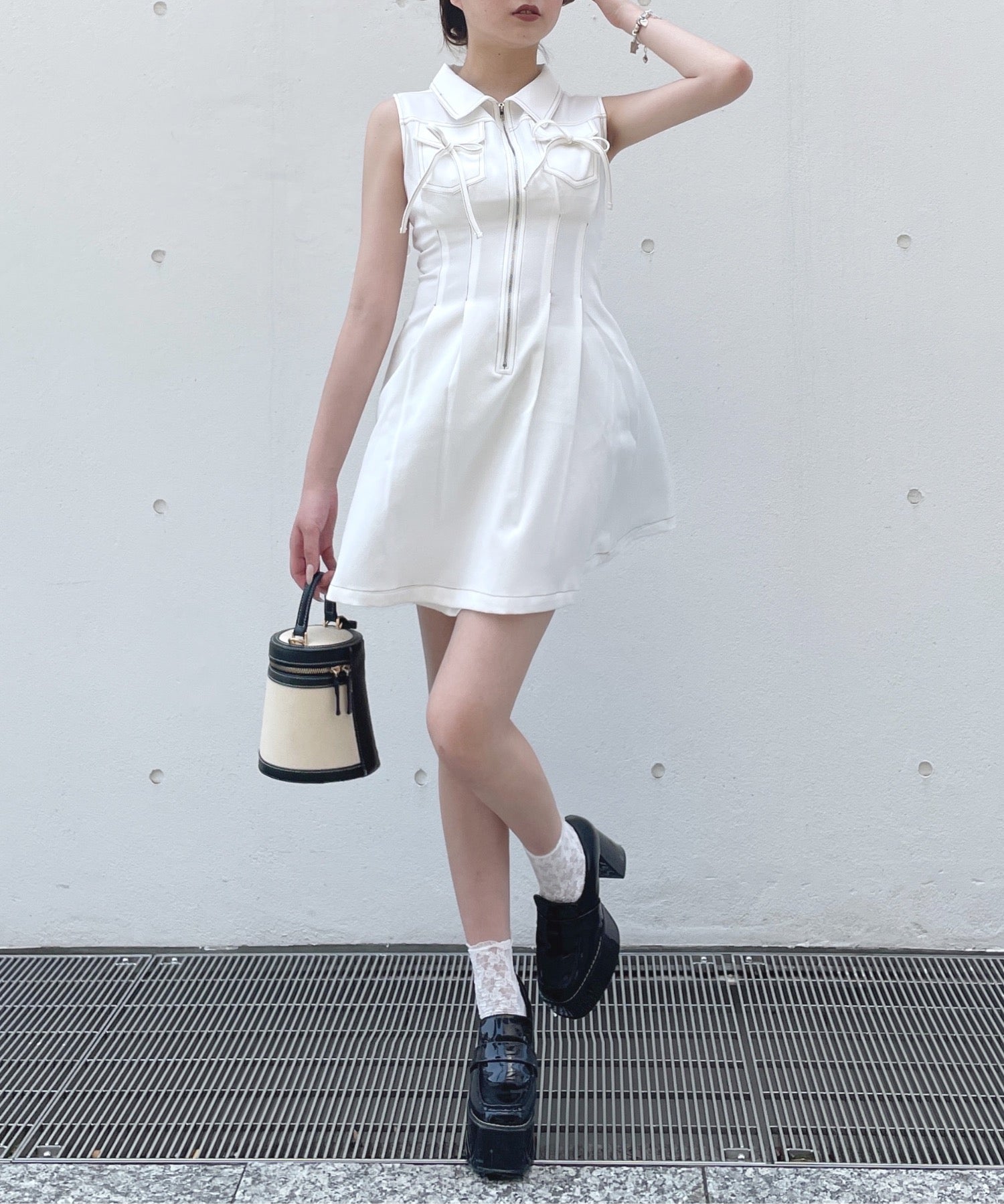 ・ピアス、バングルなどの小物使いで、大人なワンピースとしても活躍します。