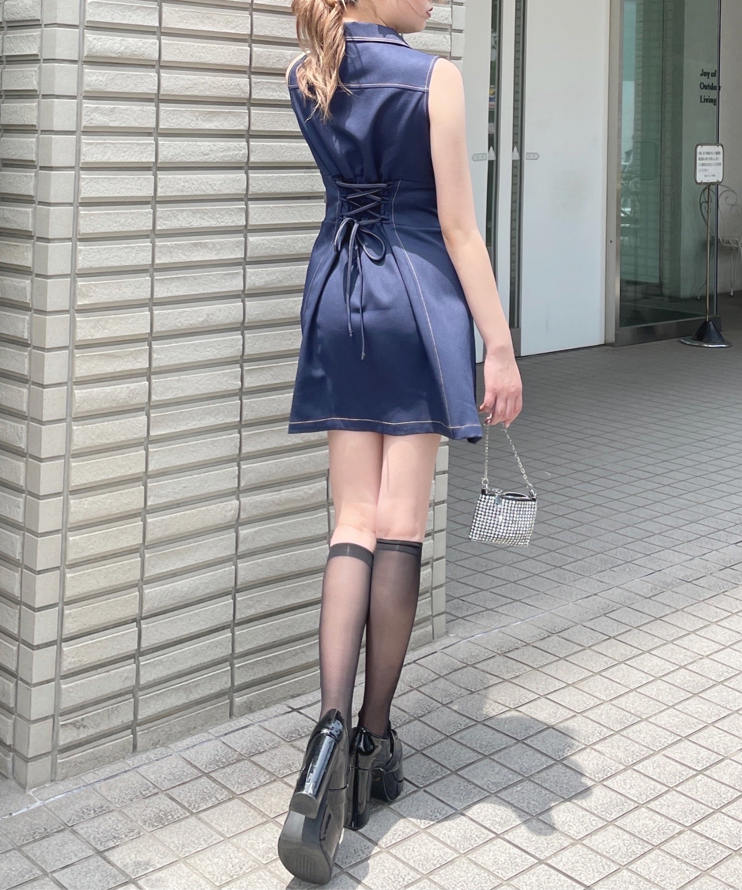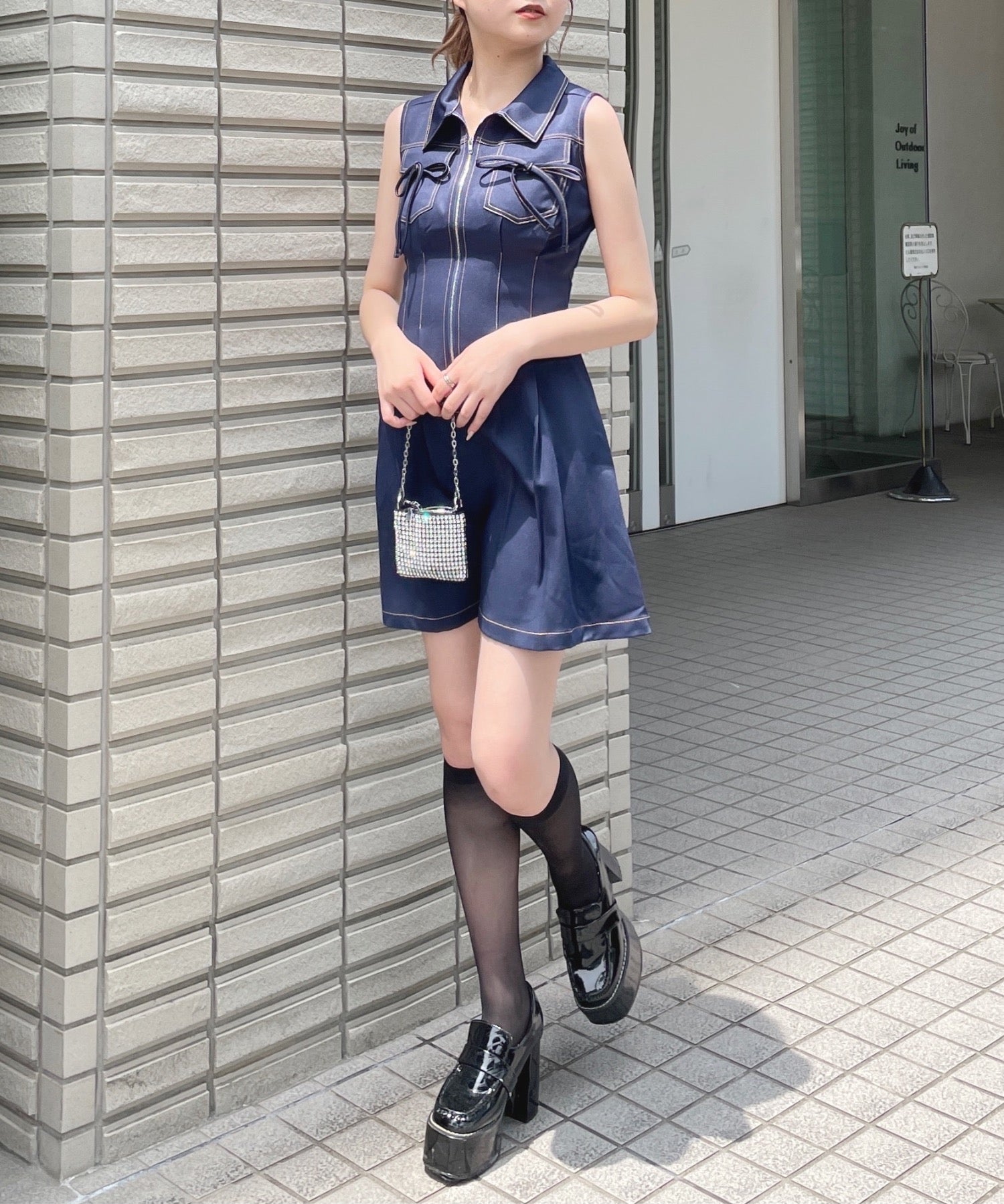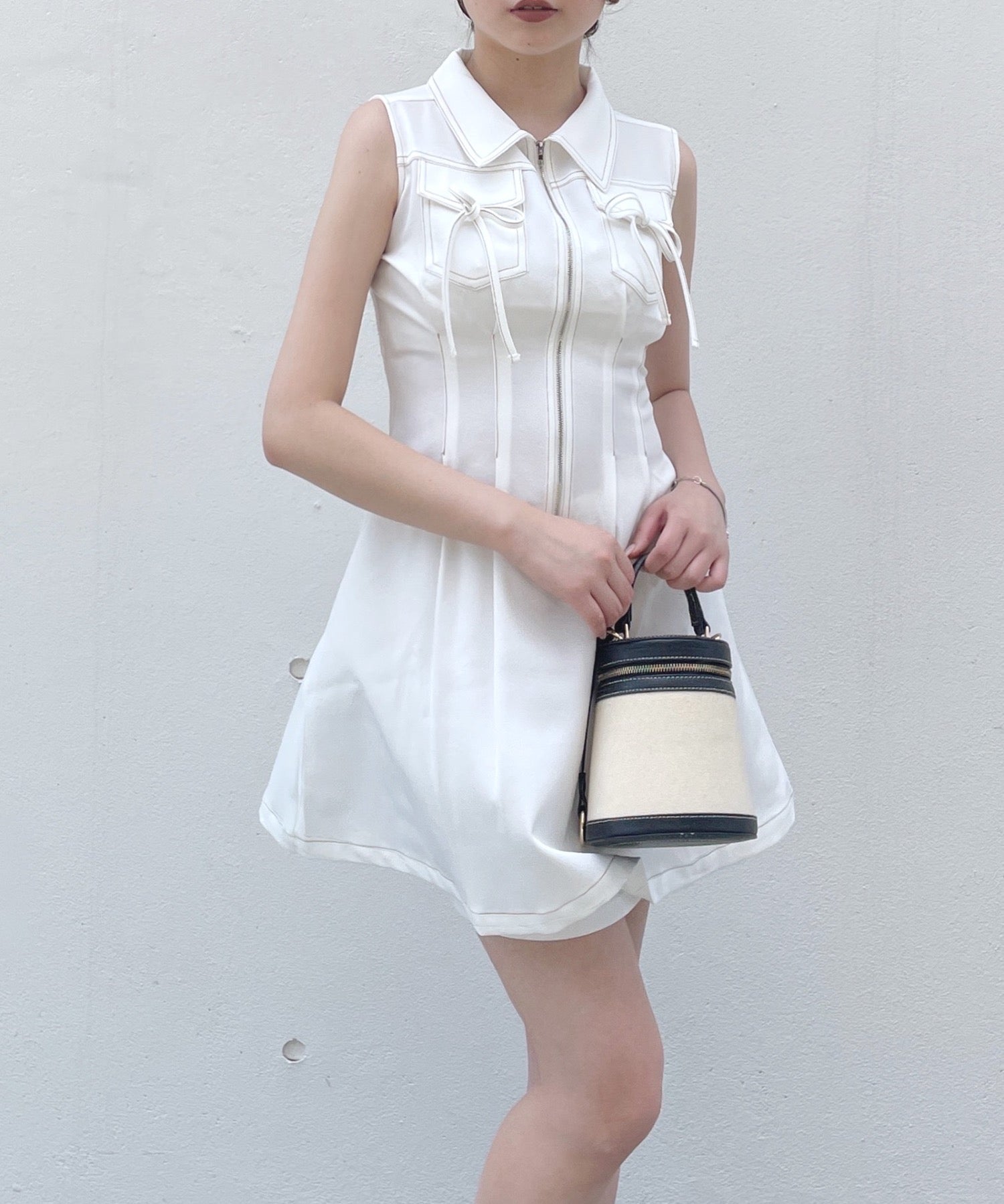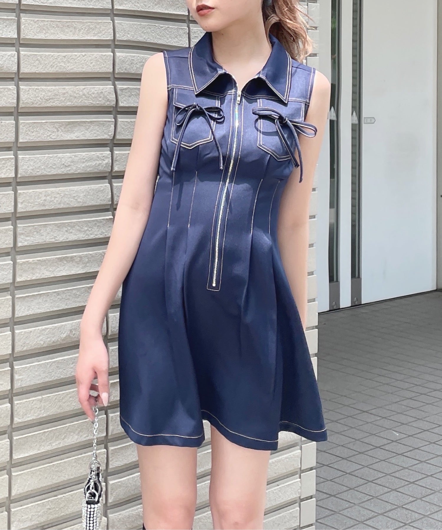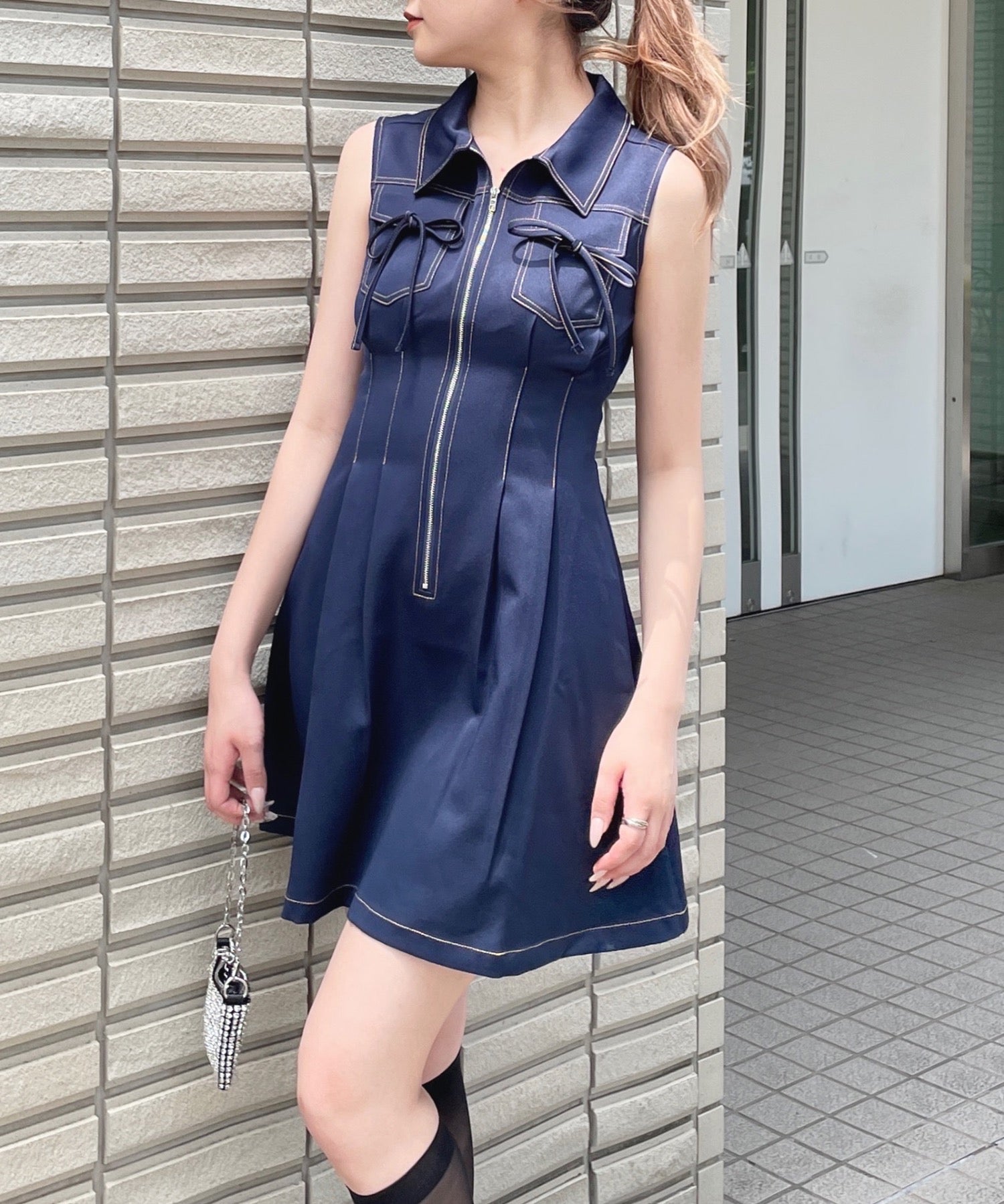 ・ピアス、バングルなどの小物使いで、大人なワンピースとしても活躍します。