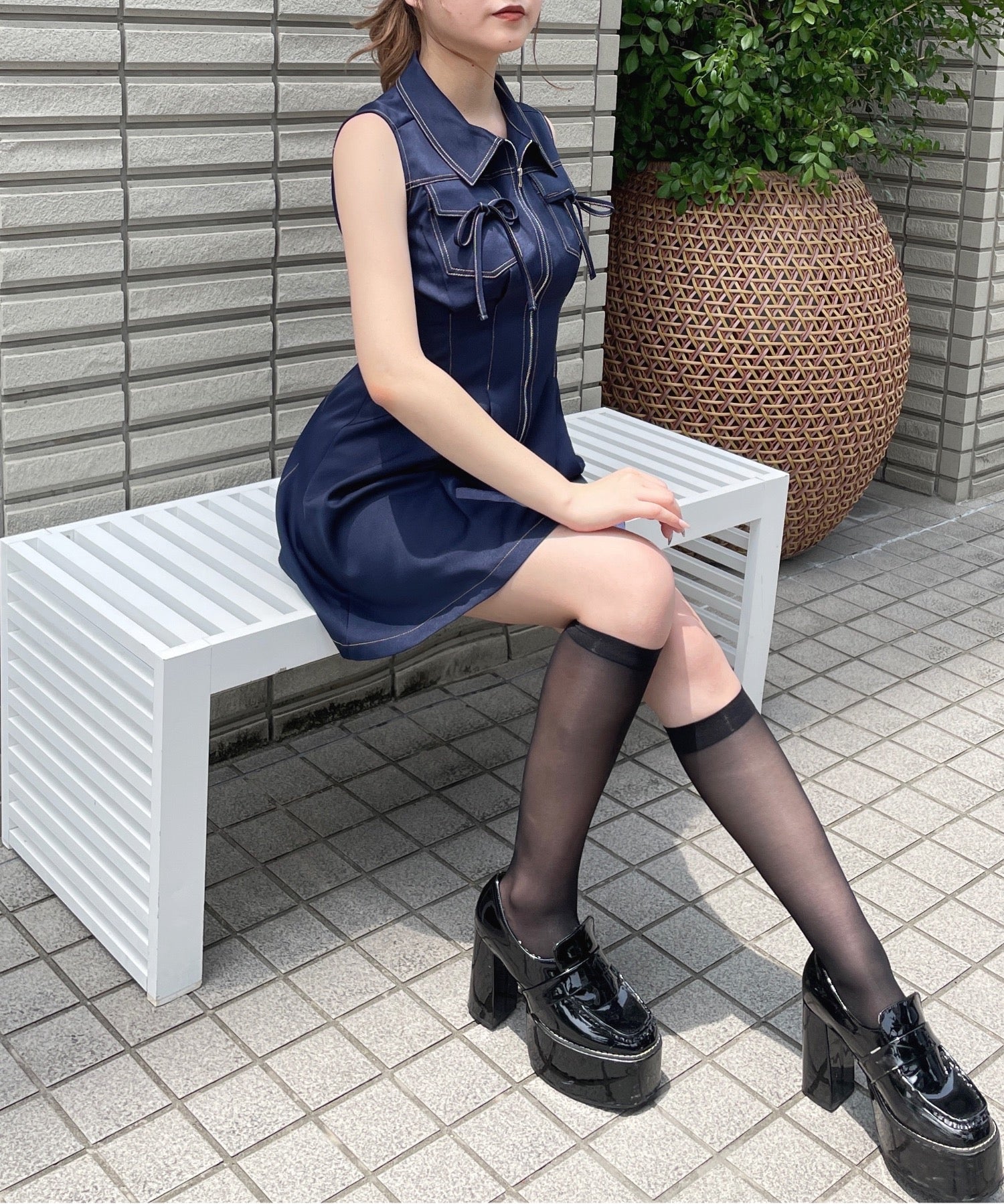 ・シアー、レースのソックスと合わせるとフェミニンな印象に。