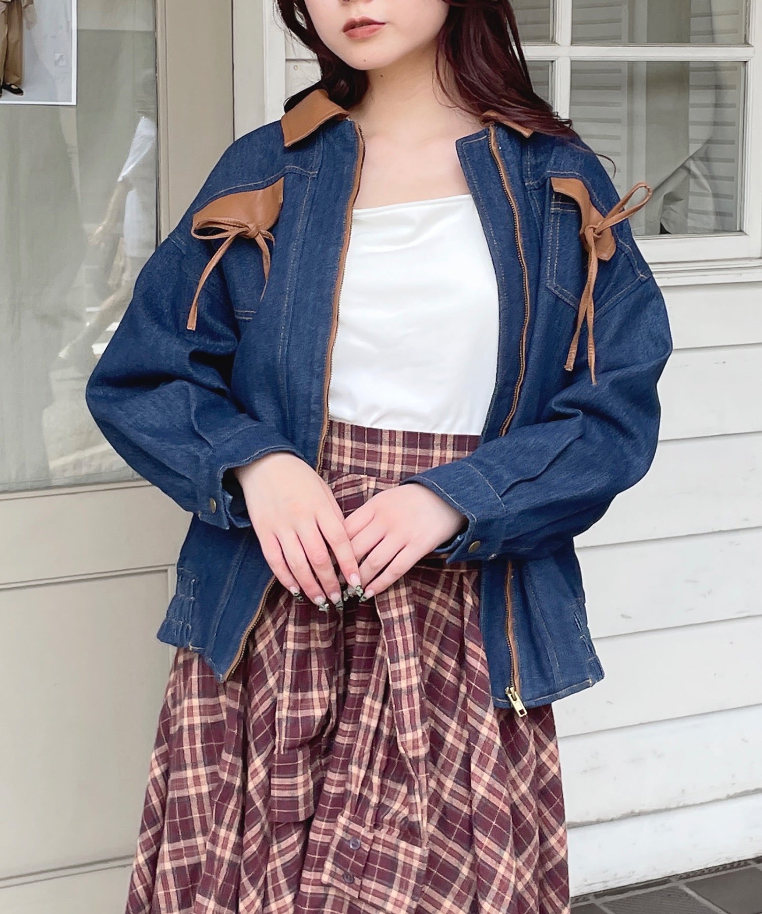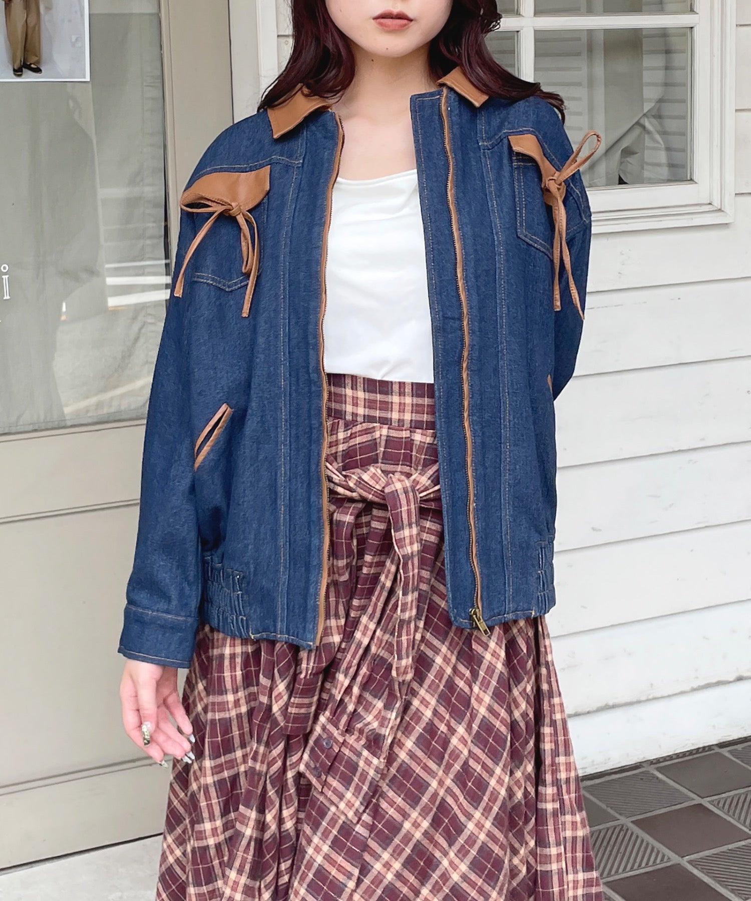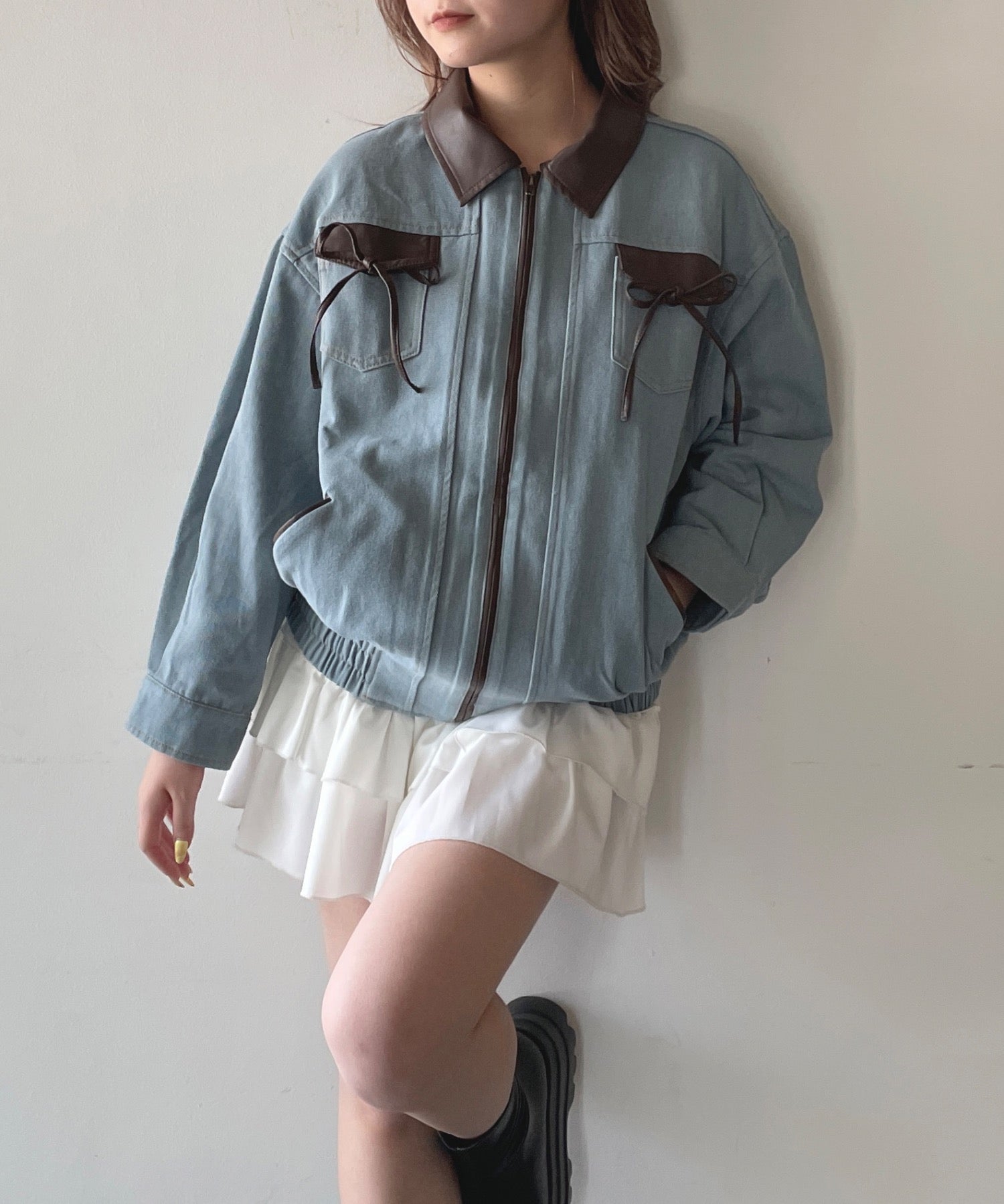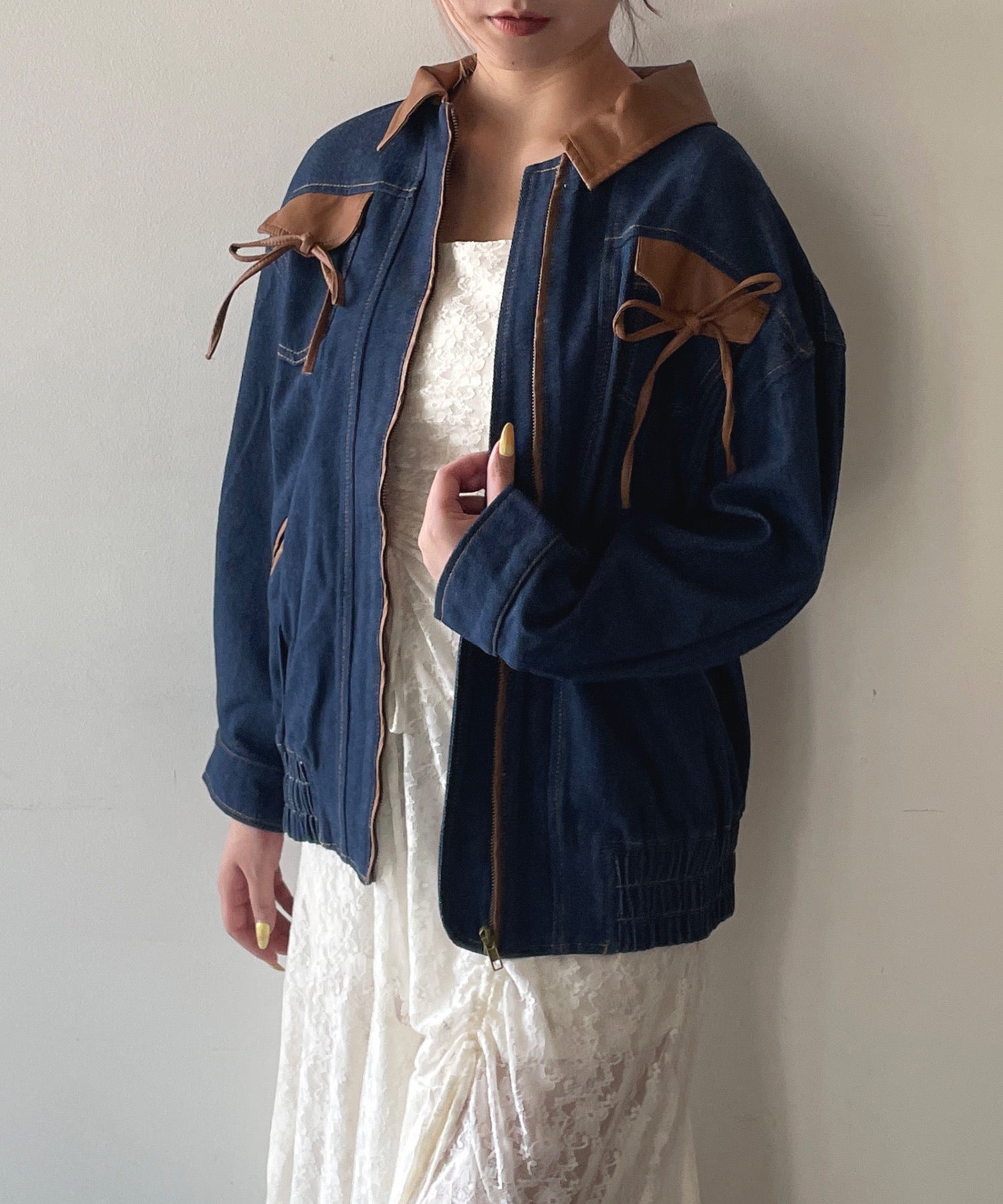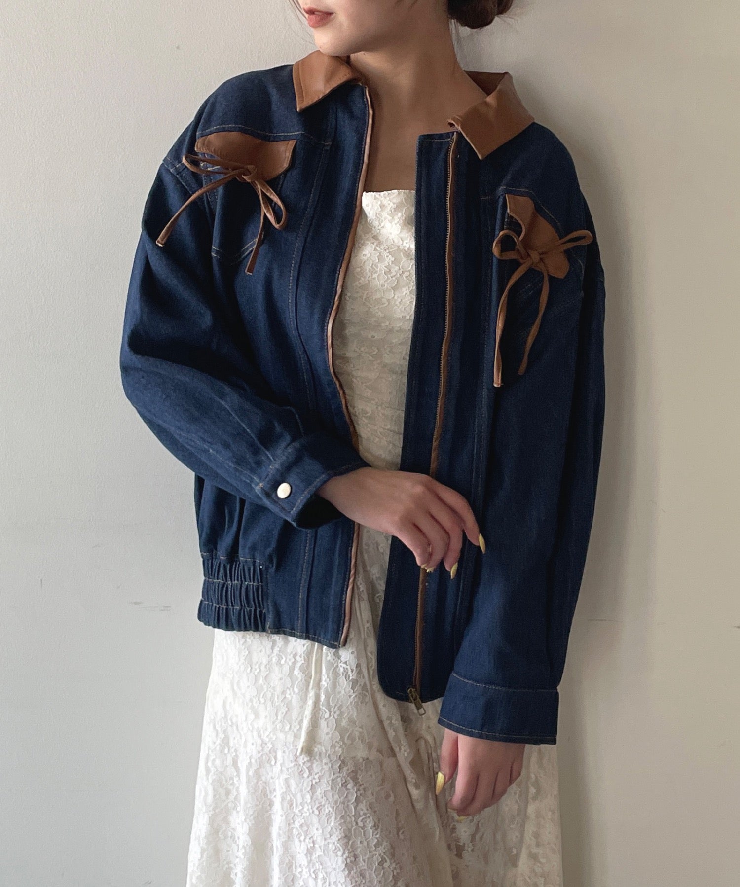 ・胸元のリボンがカジュアルなデニムにガーリーさをプラス♪
