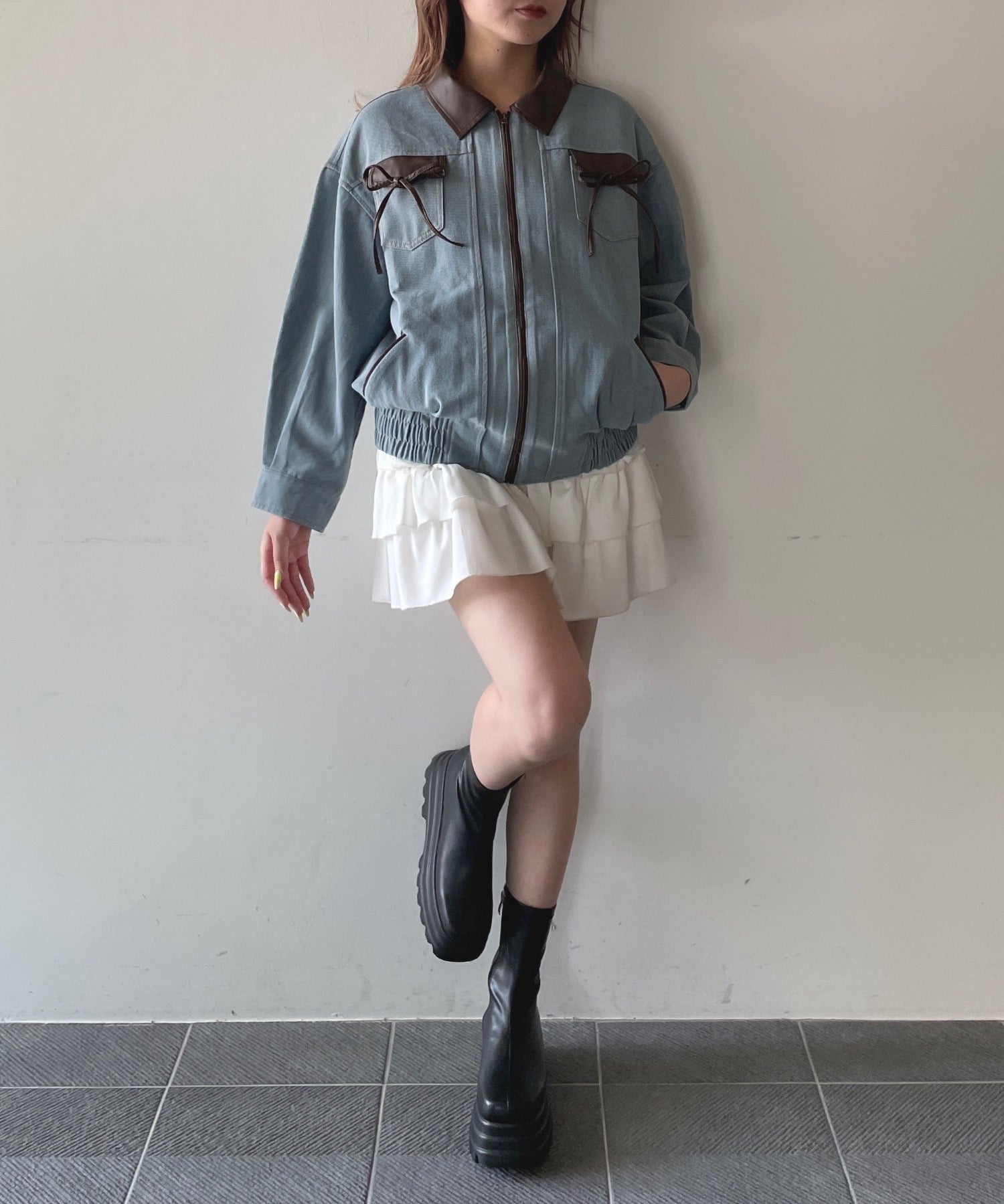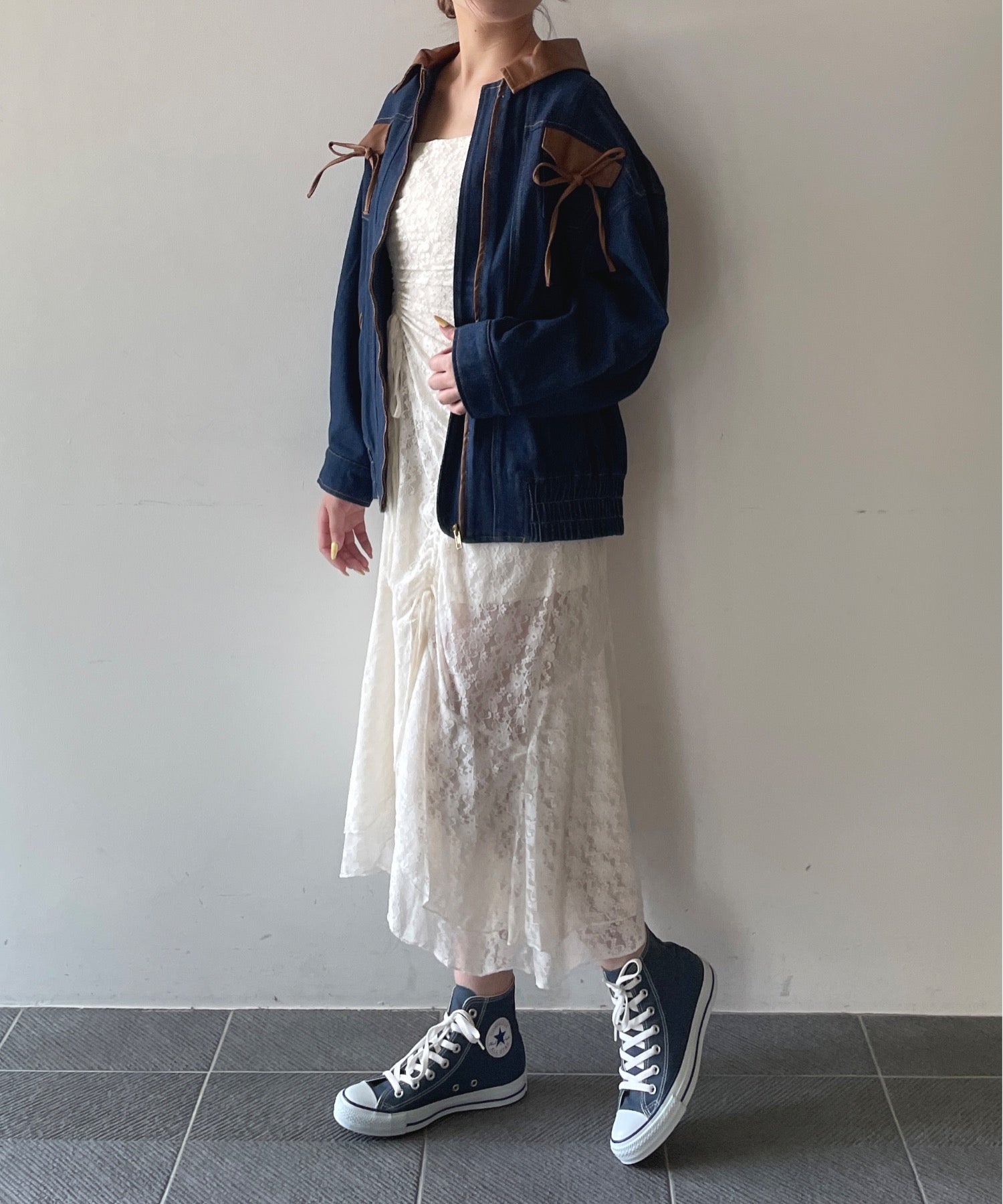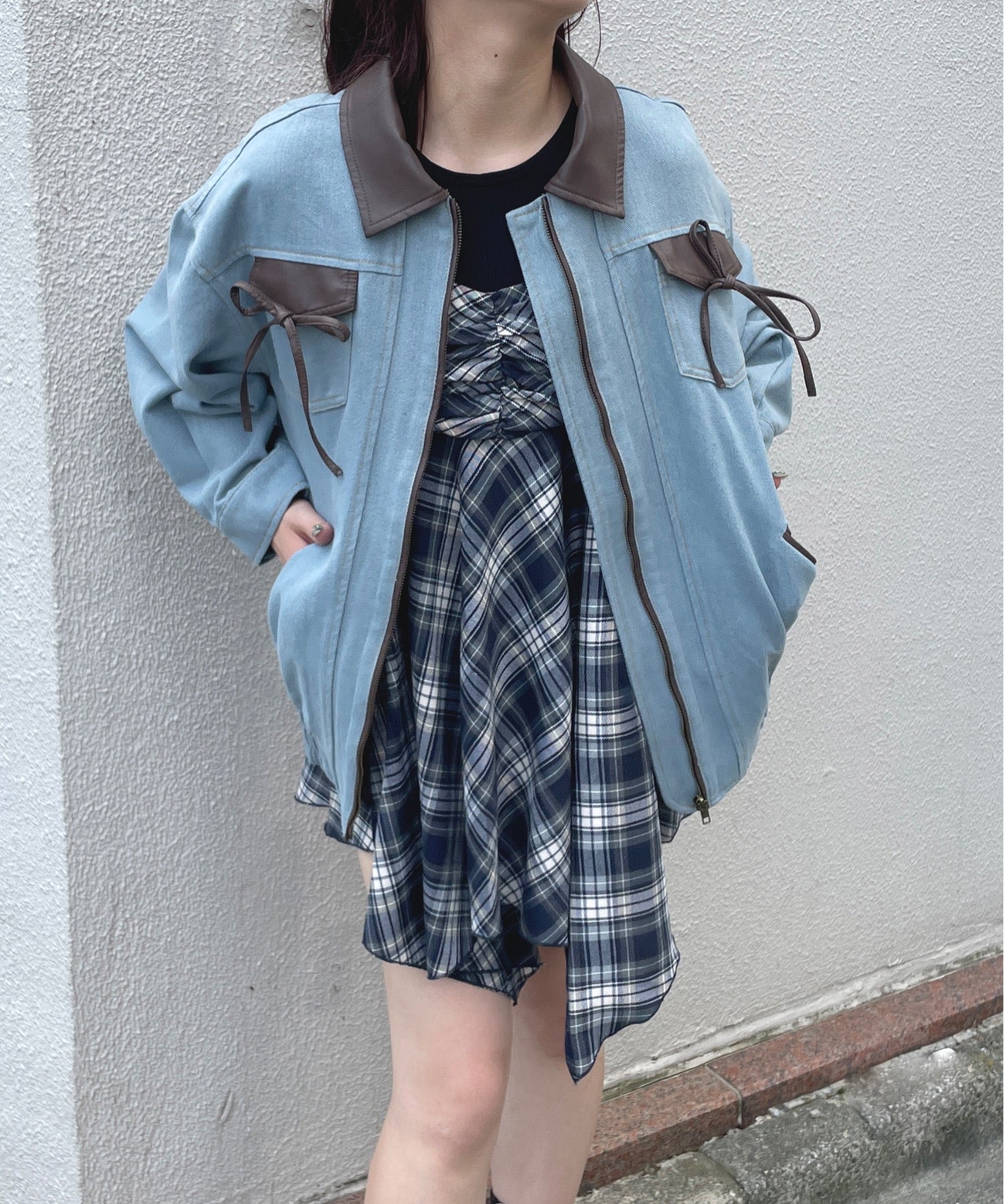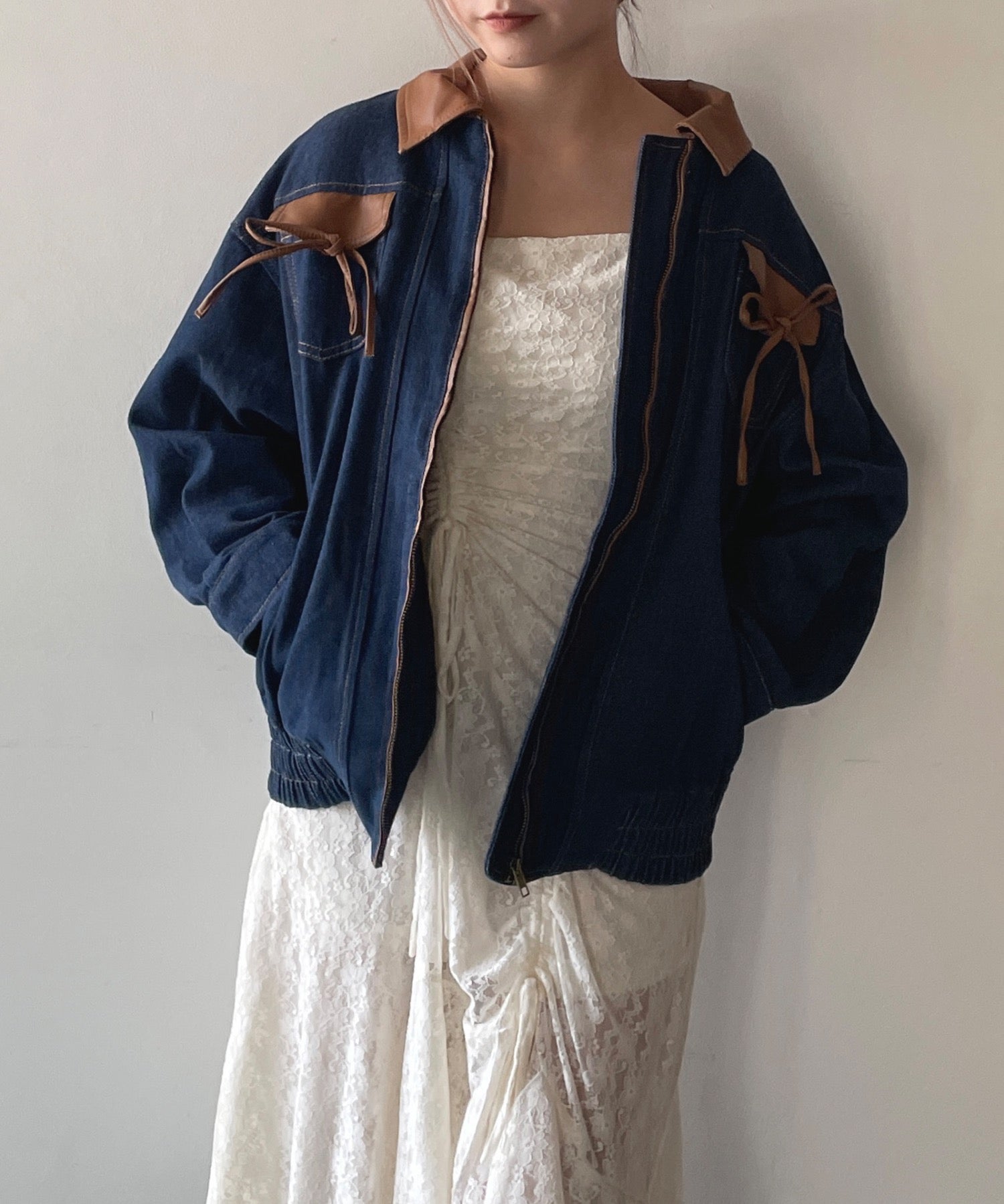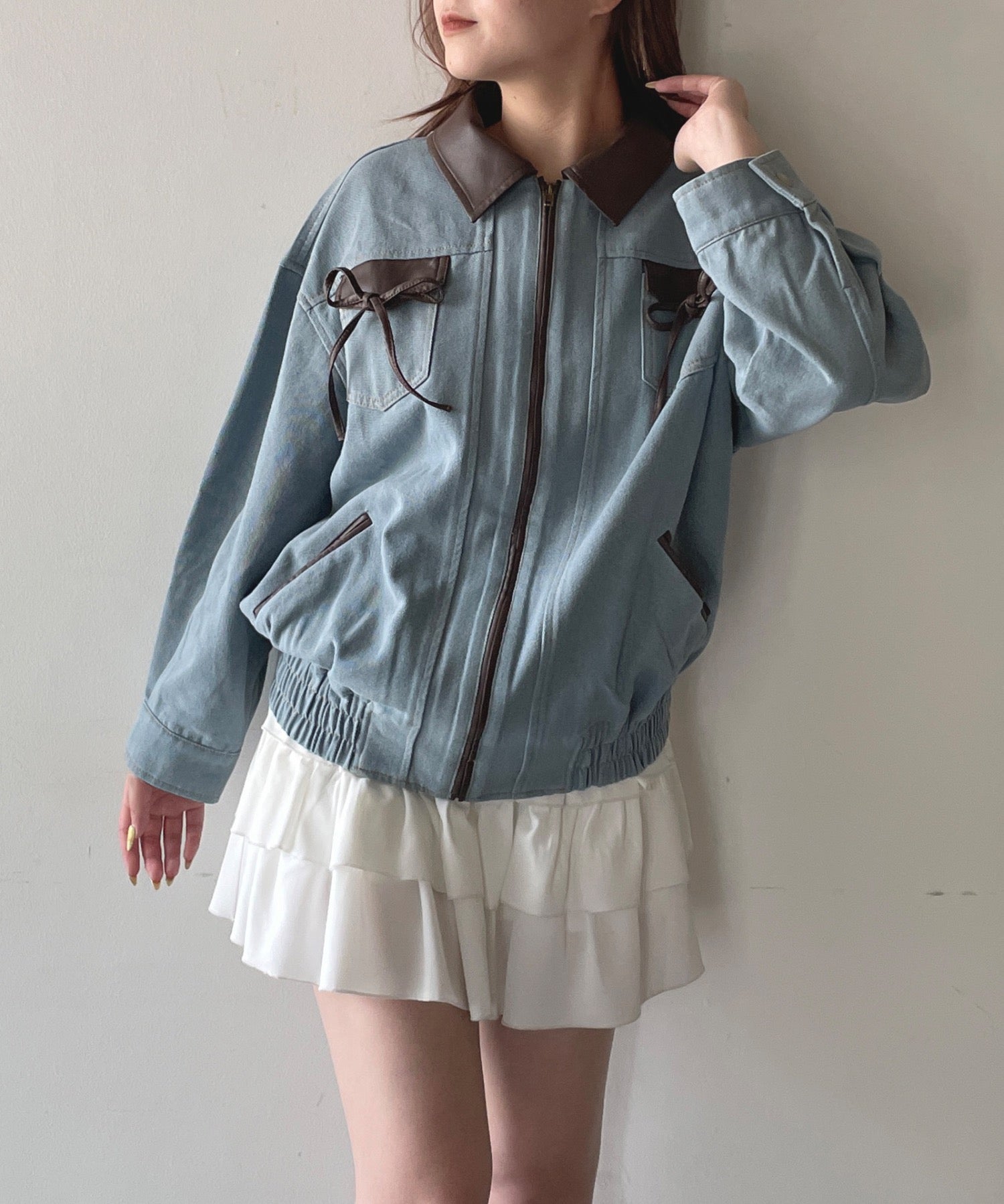 ・胸元のリボンがカジュアルなデニムにガーリーさをプラス♪