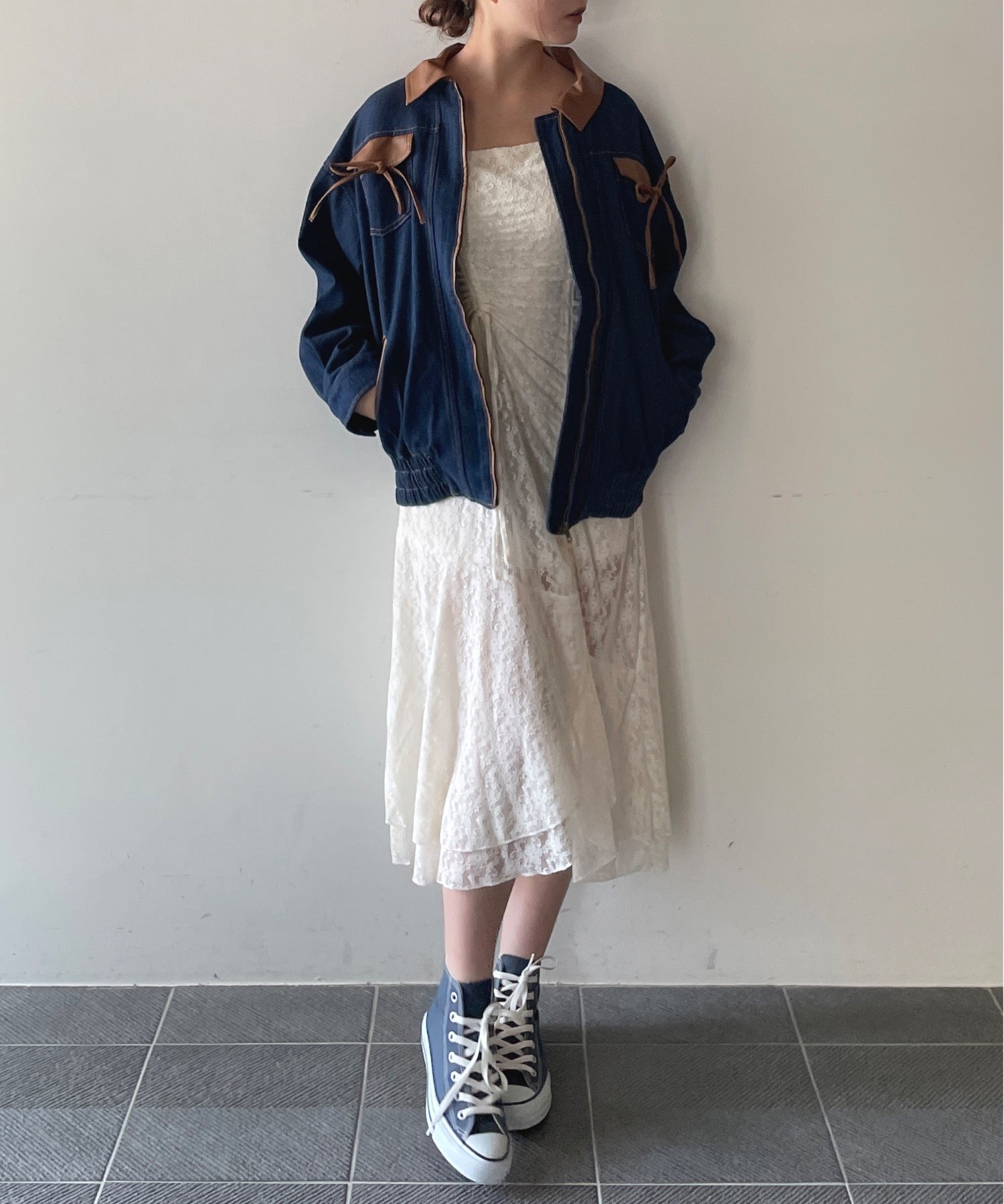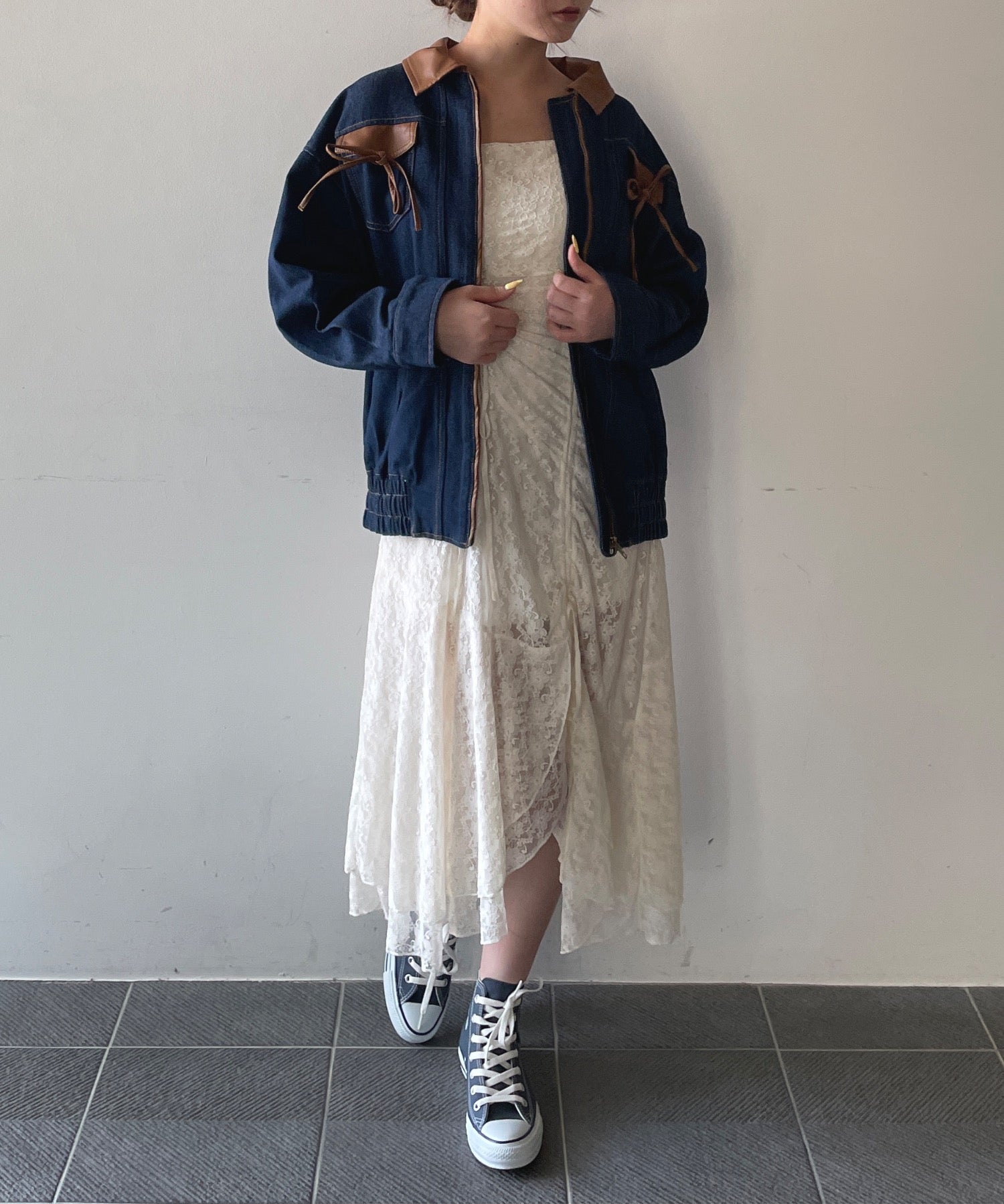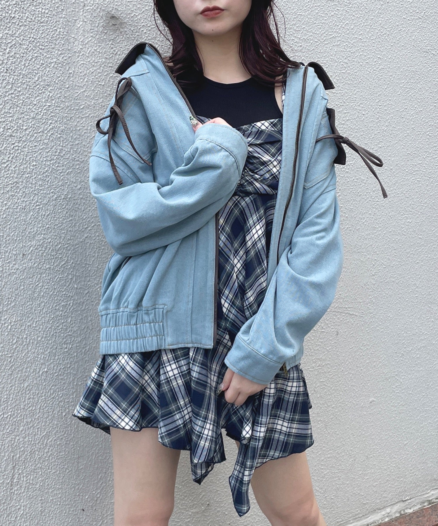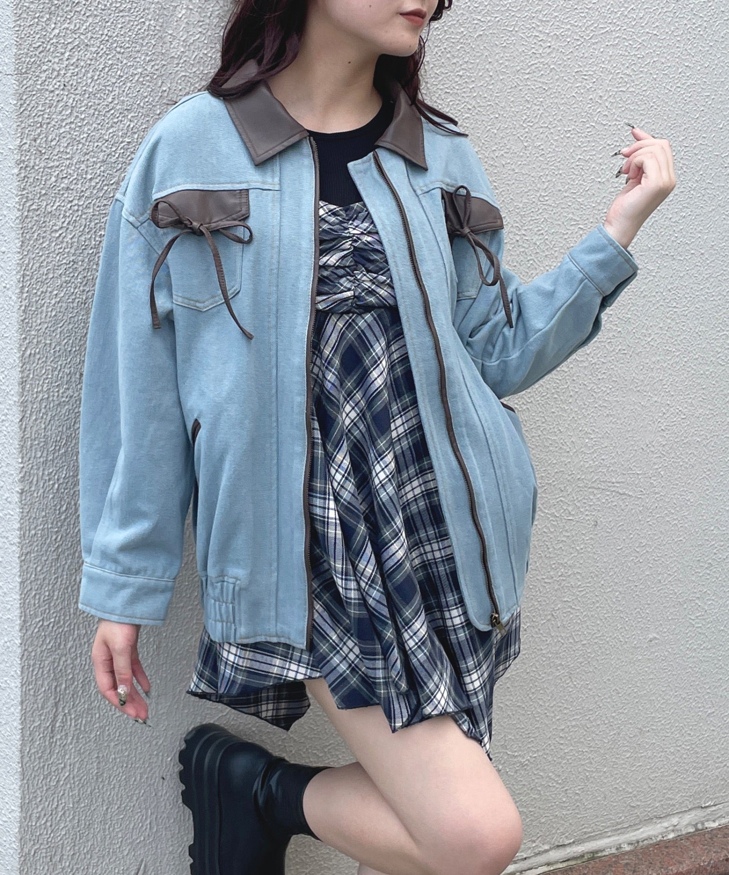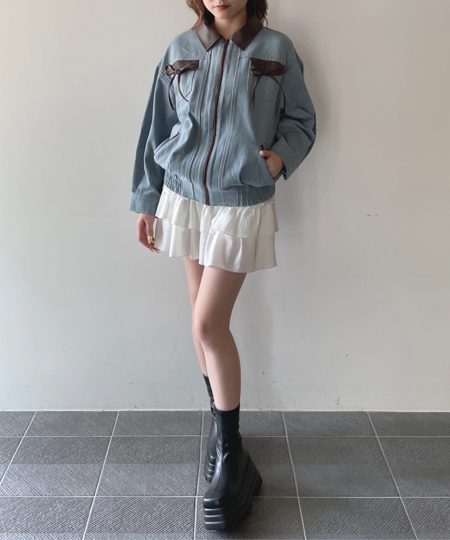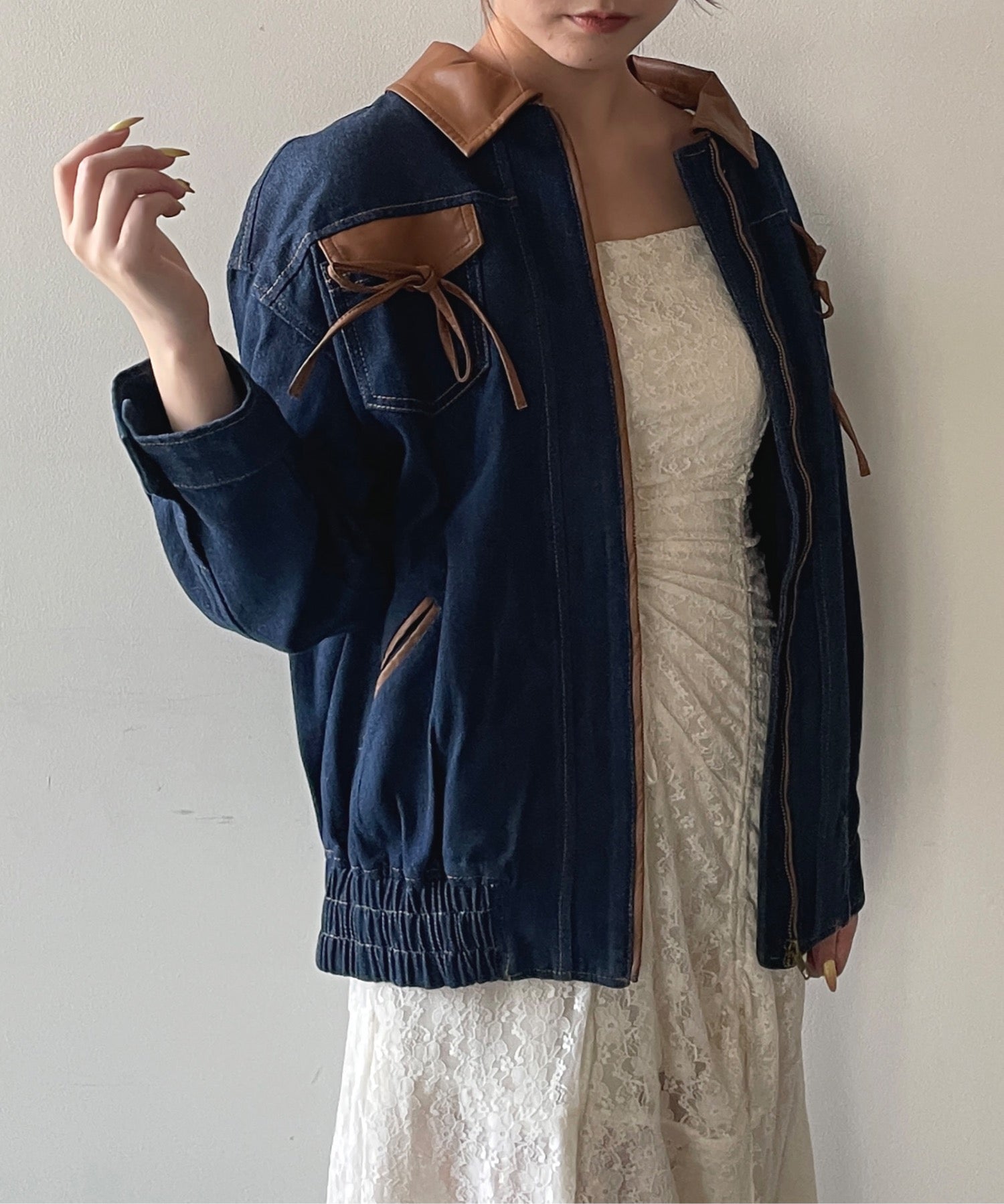 ・胸元のリボンがカジュアルなデニムにガーリーさをプラス♪