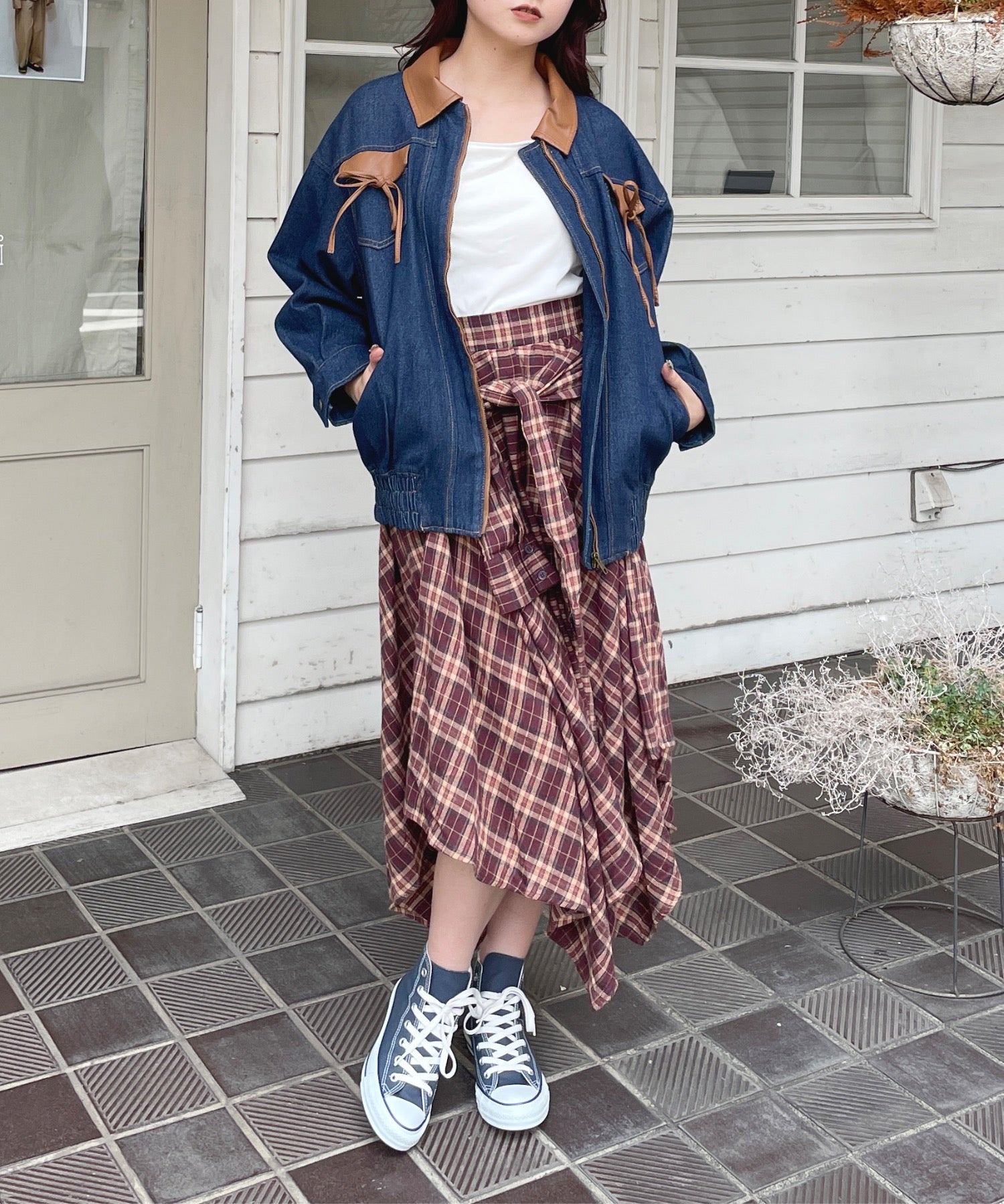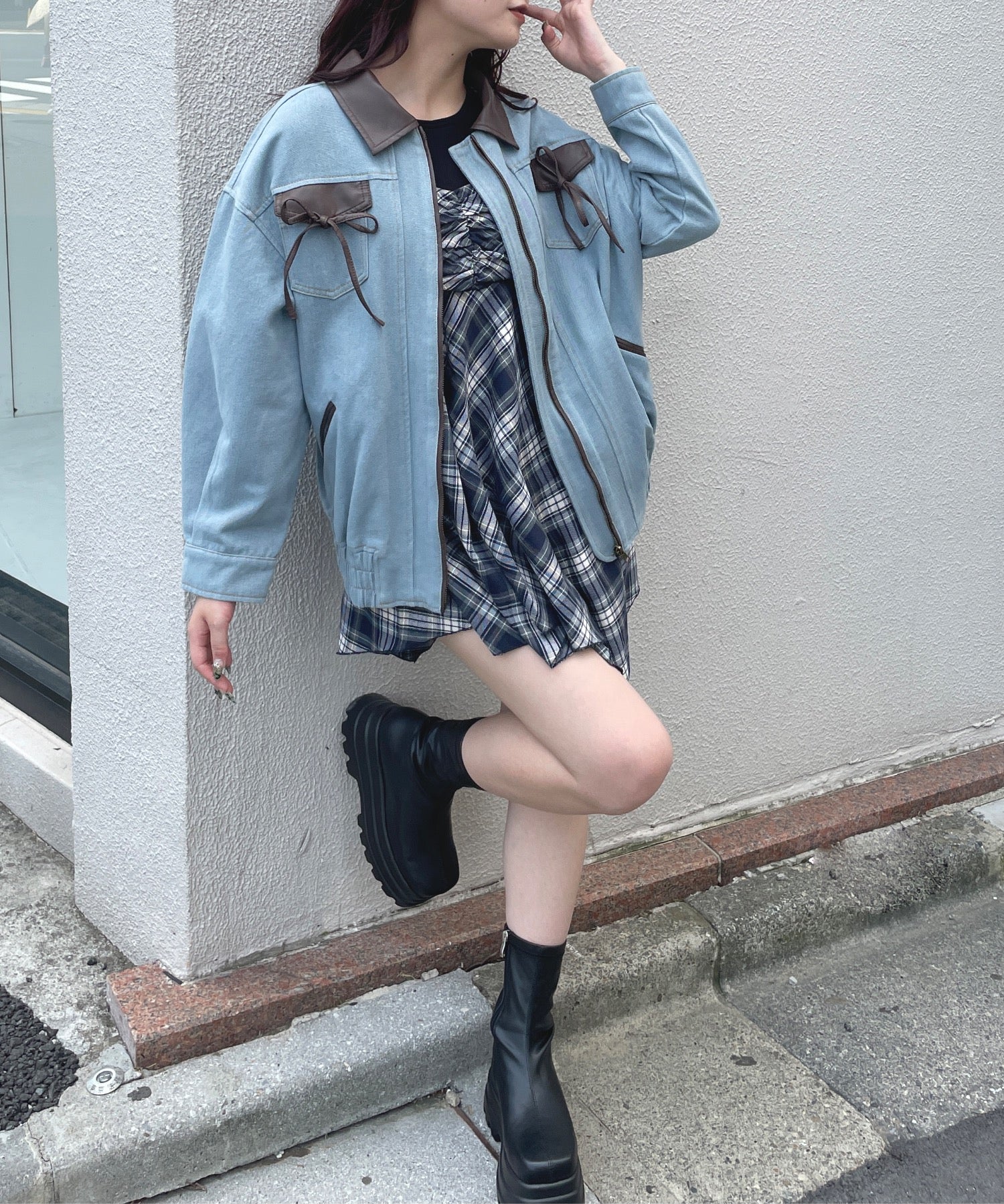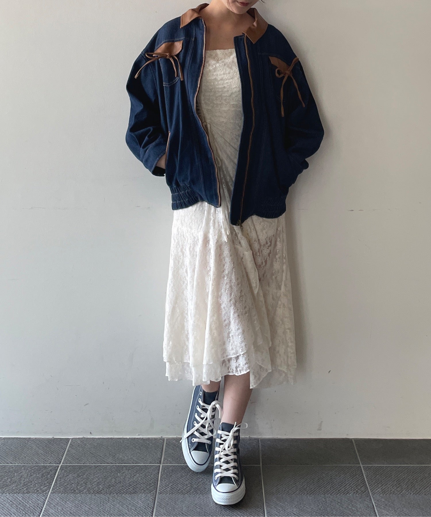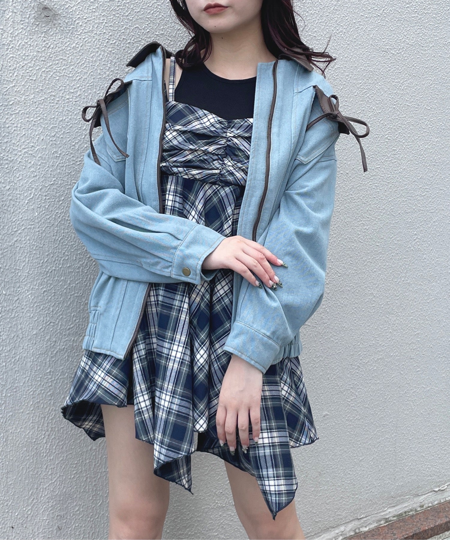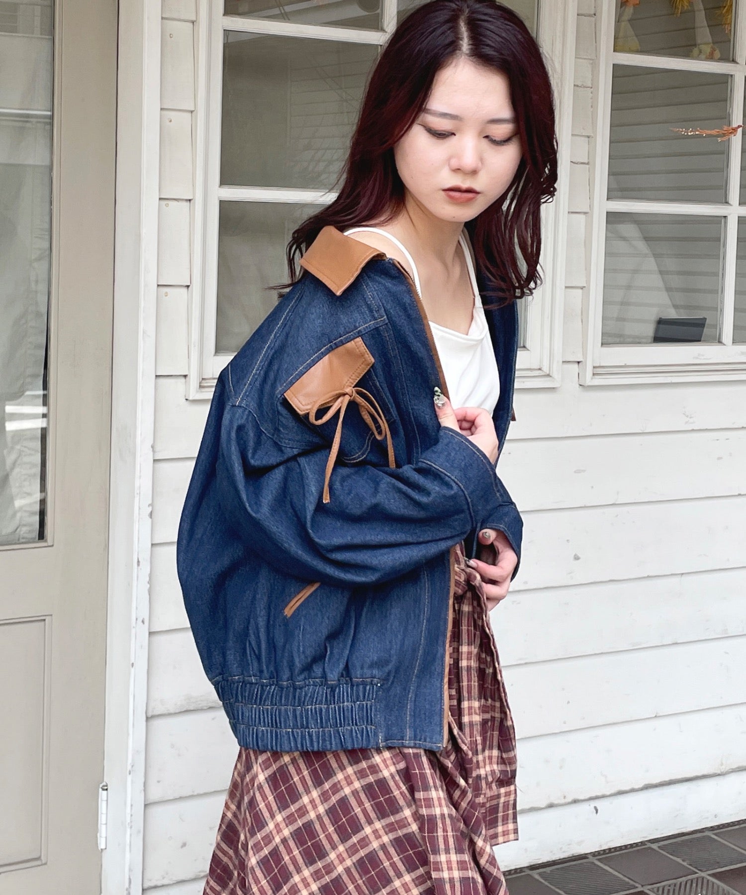 ・胸元のリボンがカジュアルなデニムにガーリーさをプラス♪