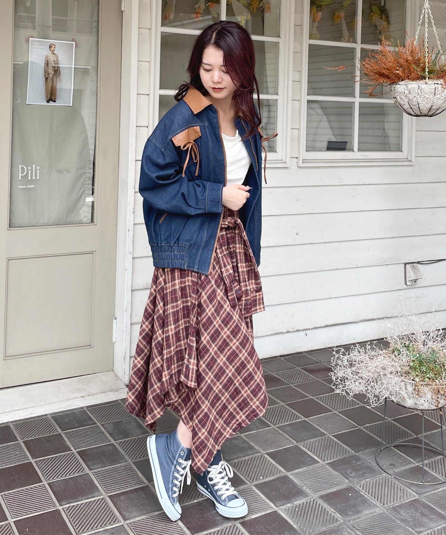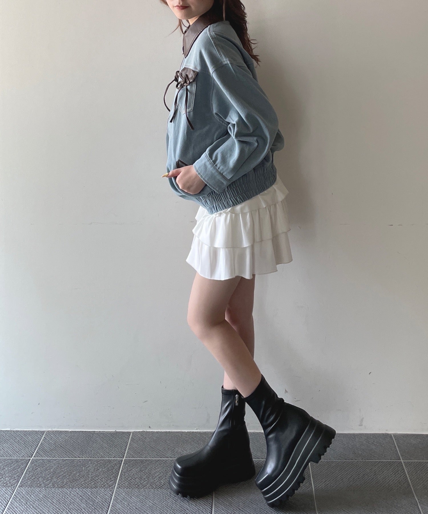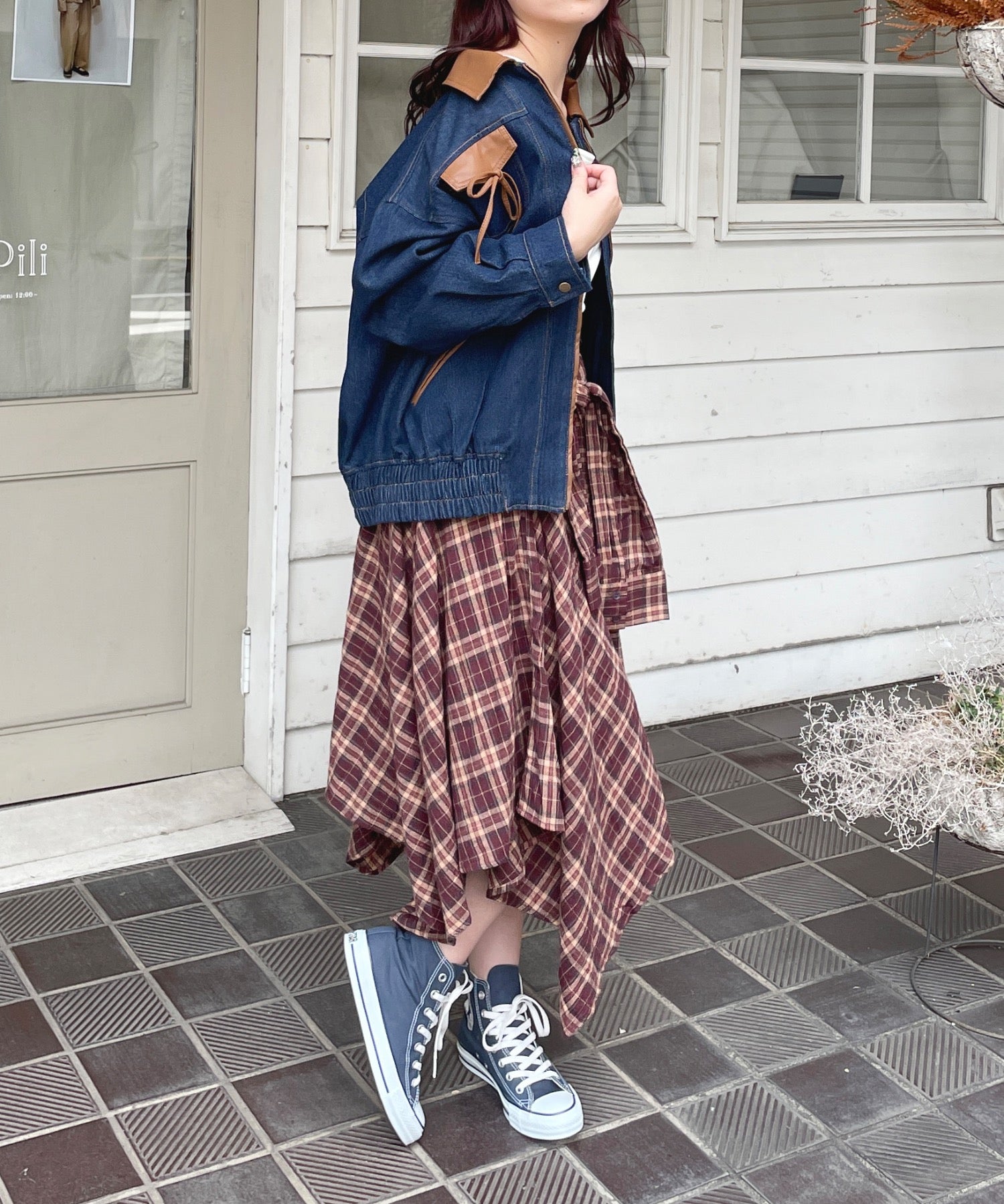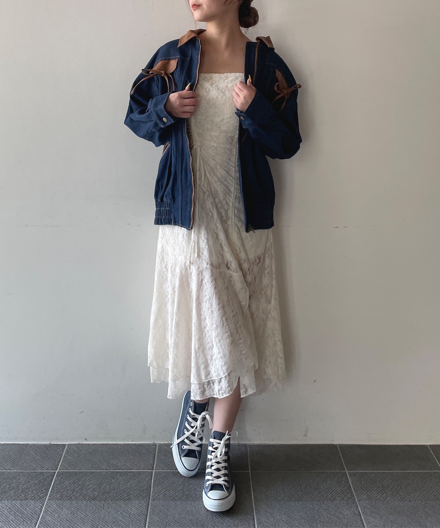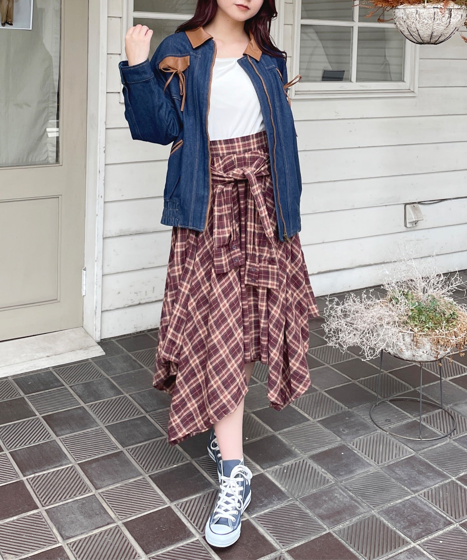 ・胸元のリボンがカジュアルなデニムにガーリーさをプラス♪