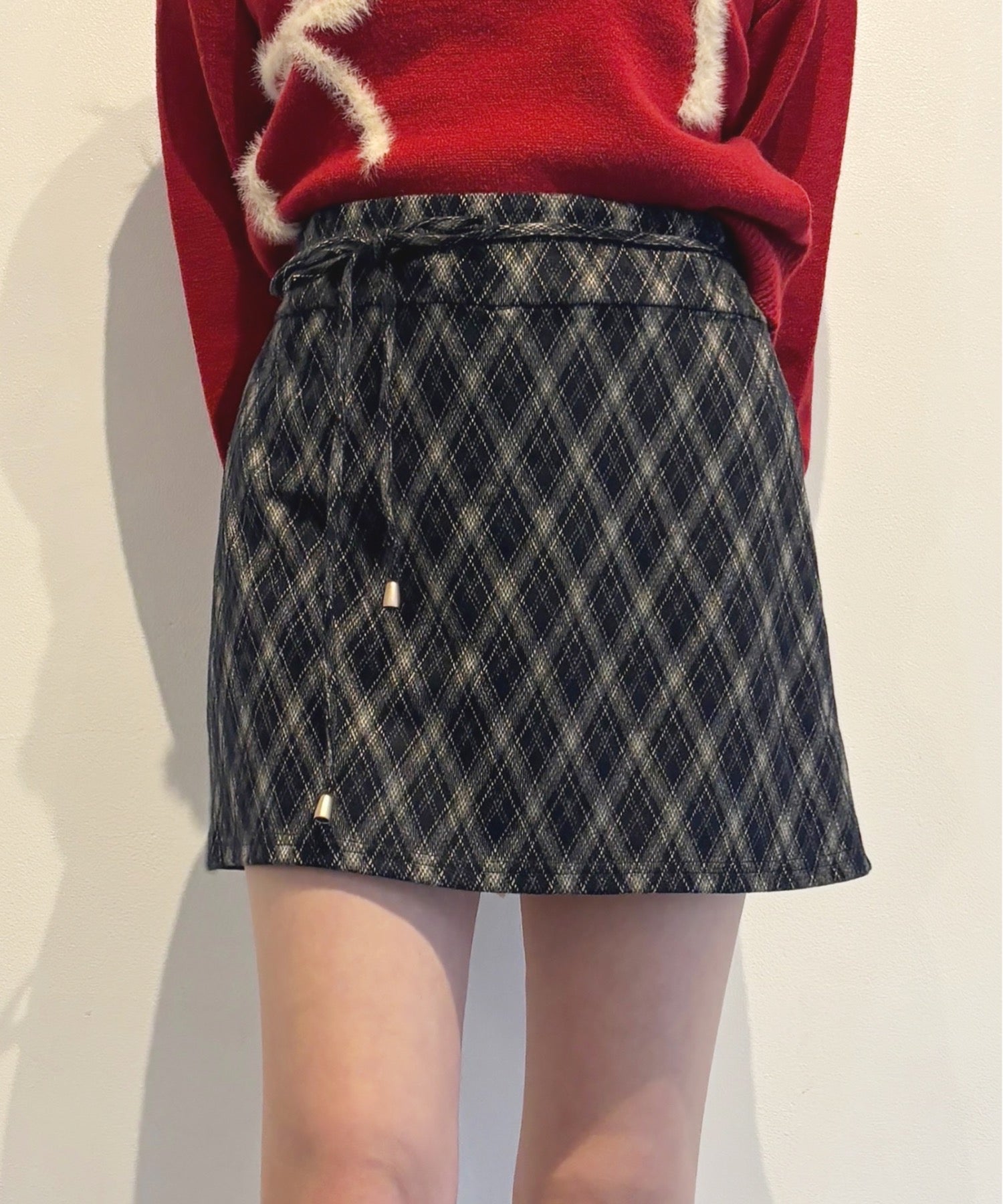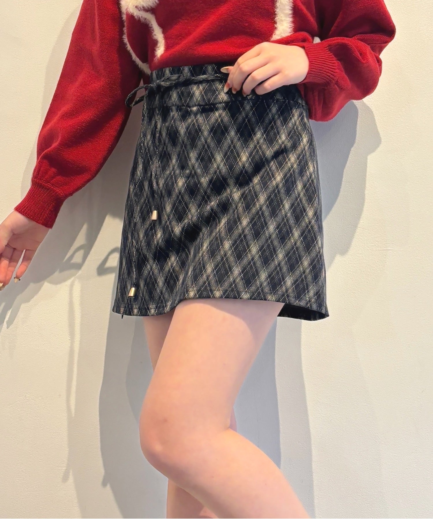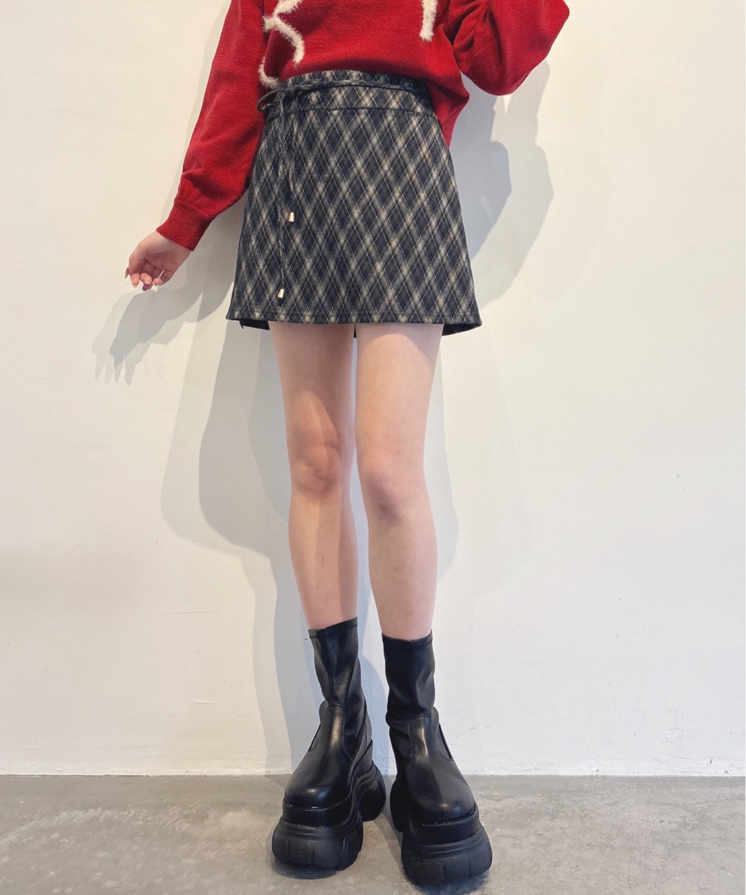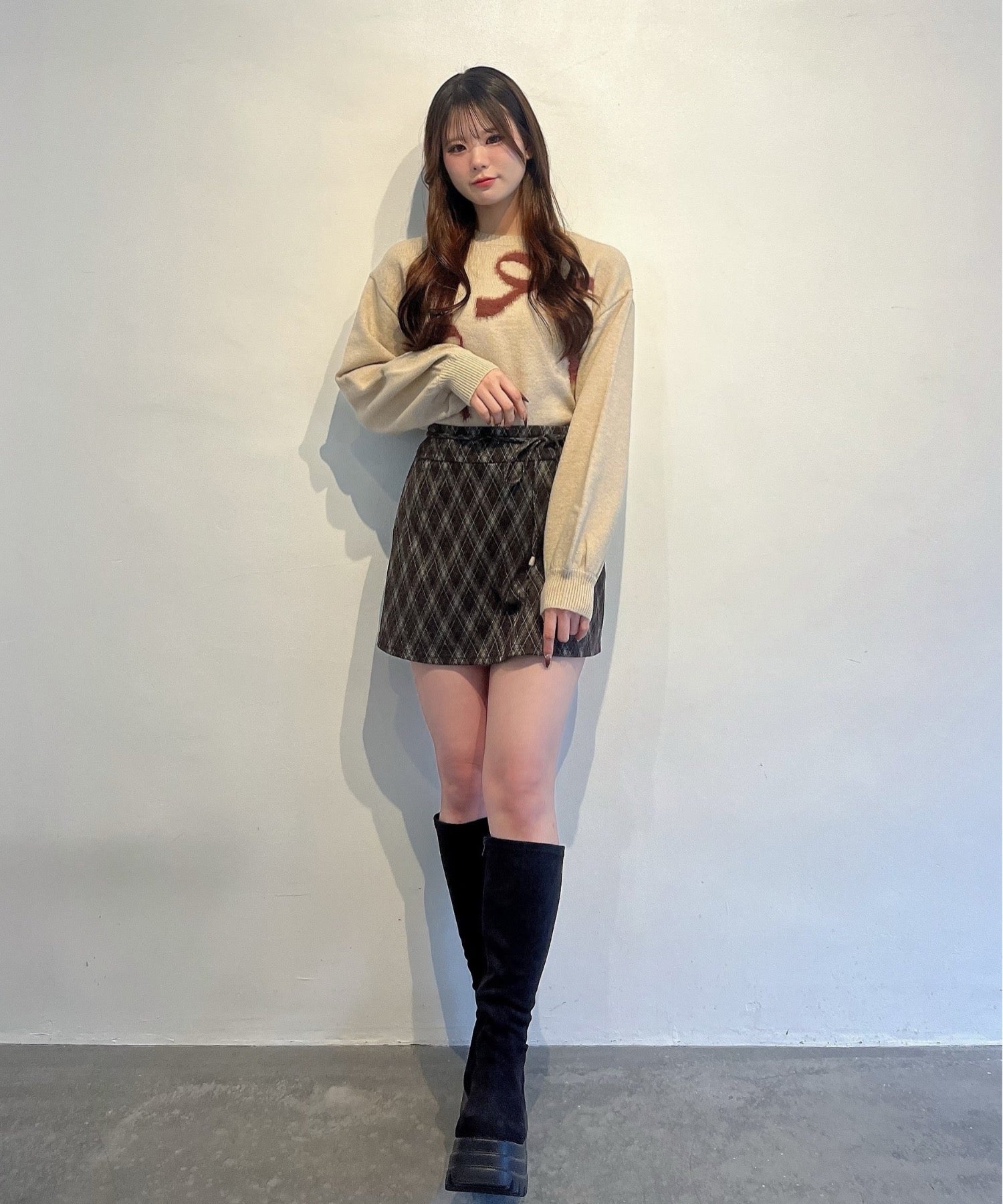 ・スカートのチェック柄が冬らしく、足元にタイツやブーツを合わせるのがおすすめ◎