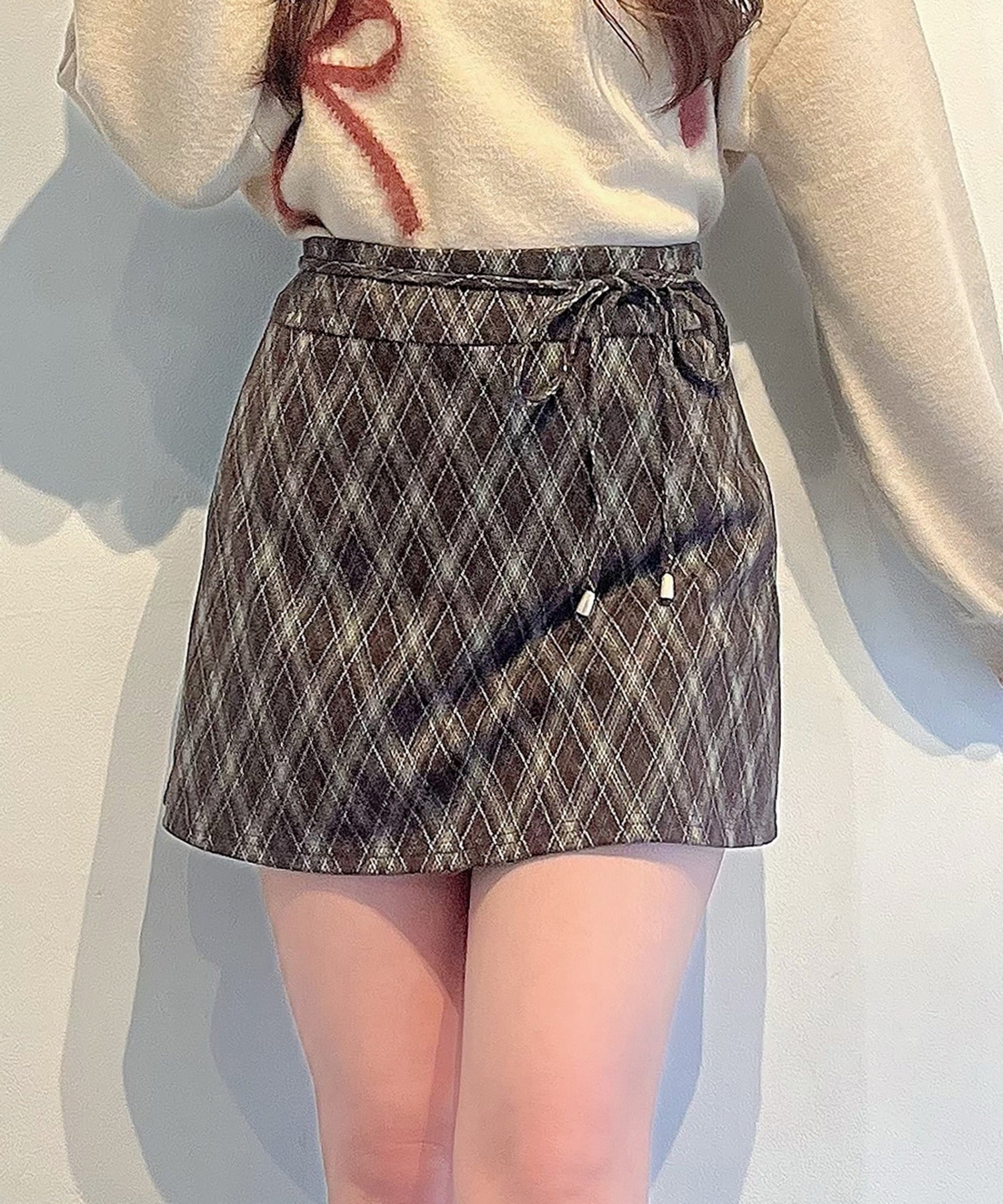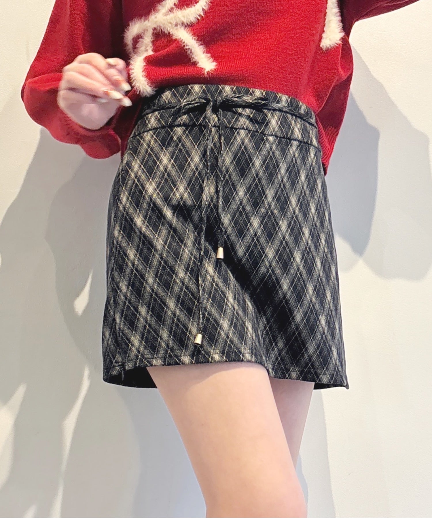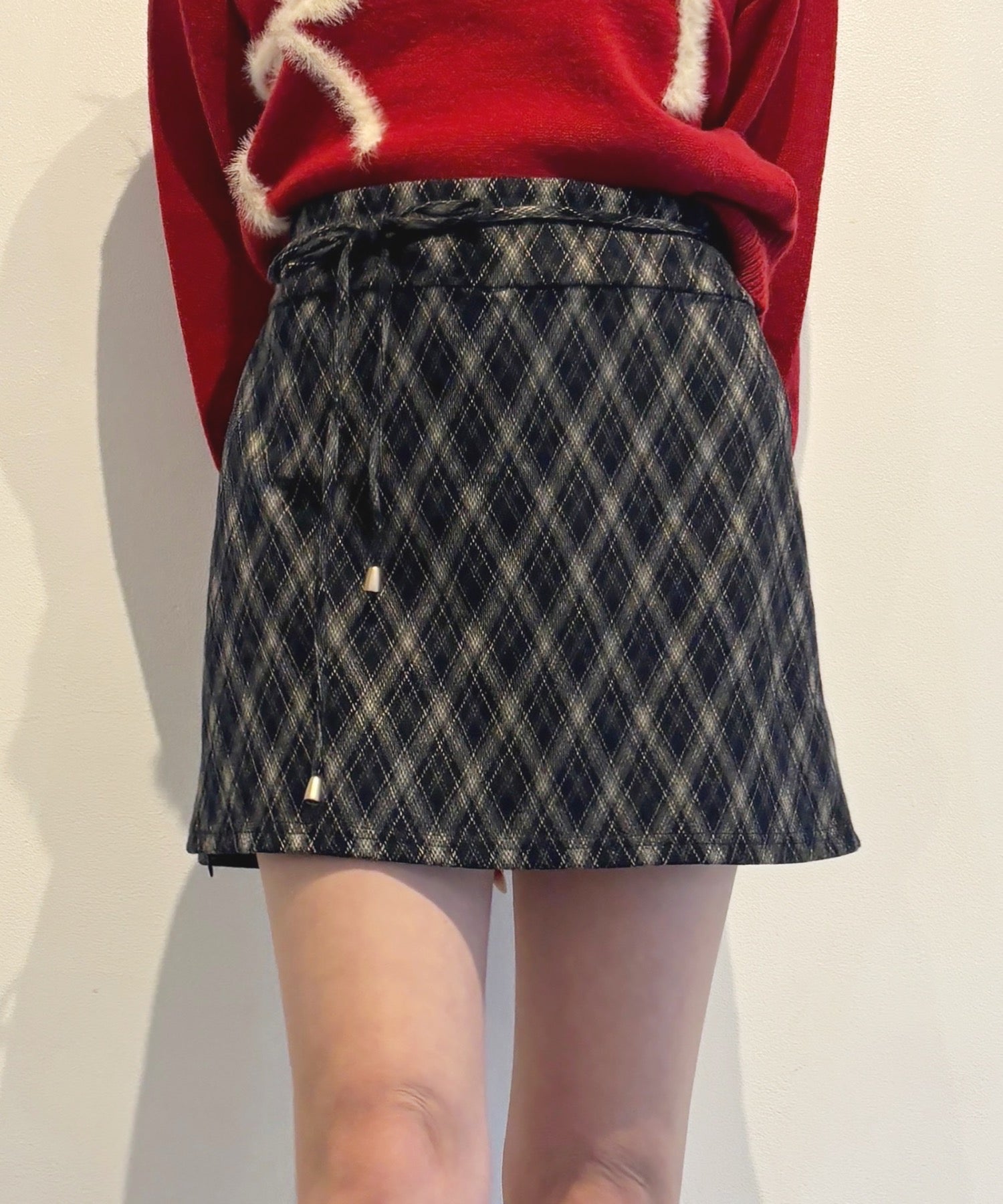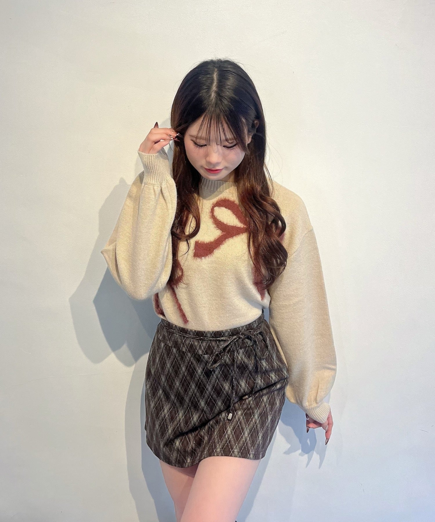 ・スカートのチェック柄が冬らしく、足元にタイツやブーツを合わせるのがおすすめ◎